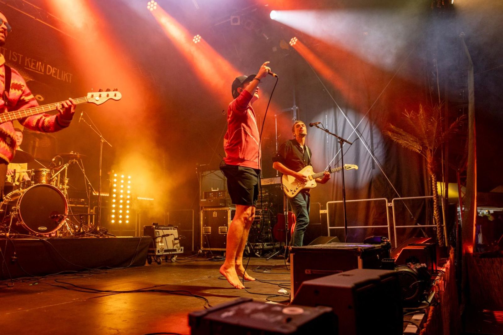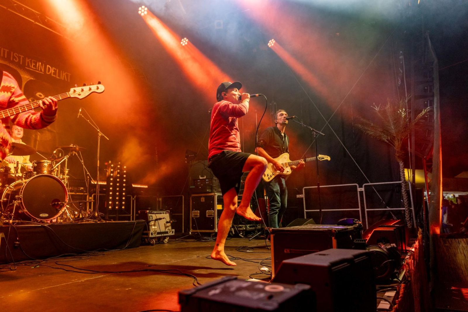 LIEDFETT, hier in ihrer Formation The Sensitives, sorgten zum Abschluss für pure Punkenergie. Lucas Uecker betrat barfuß die Bühne und demonstrierte zwischendurch seine beeindruckende Sprungkraft – das Publikum tobte, sang mit und ließ den Abend in ausgelassener Stimmung ausklingen.