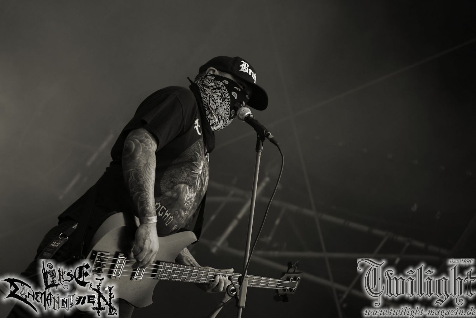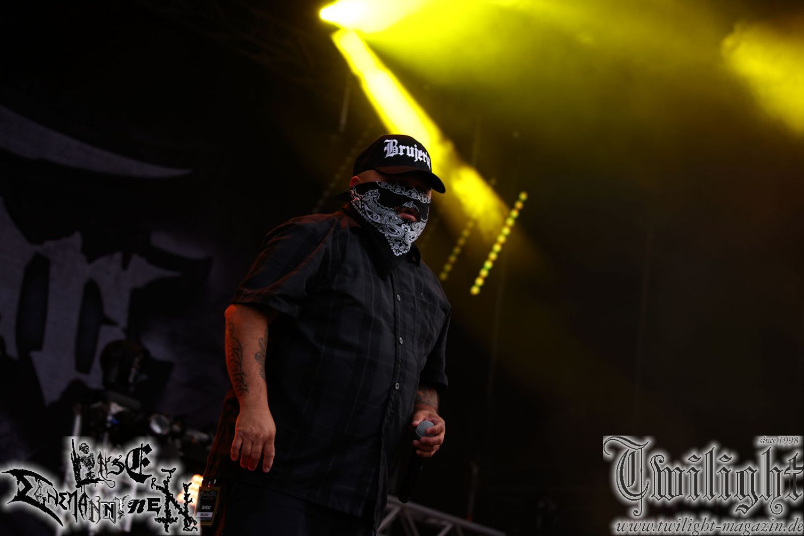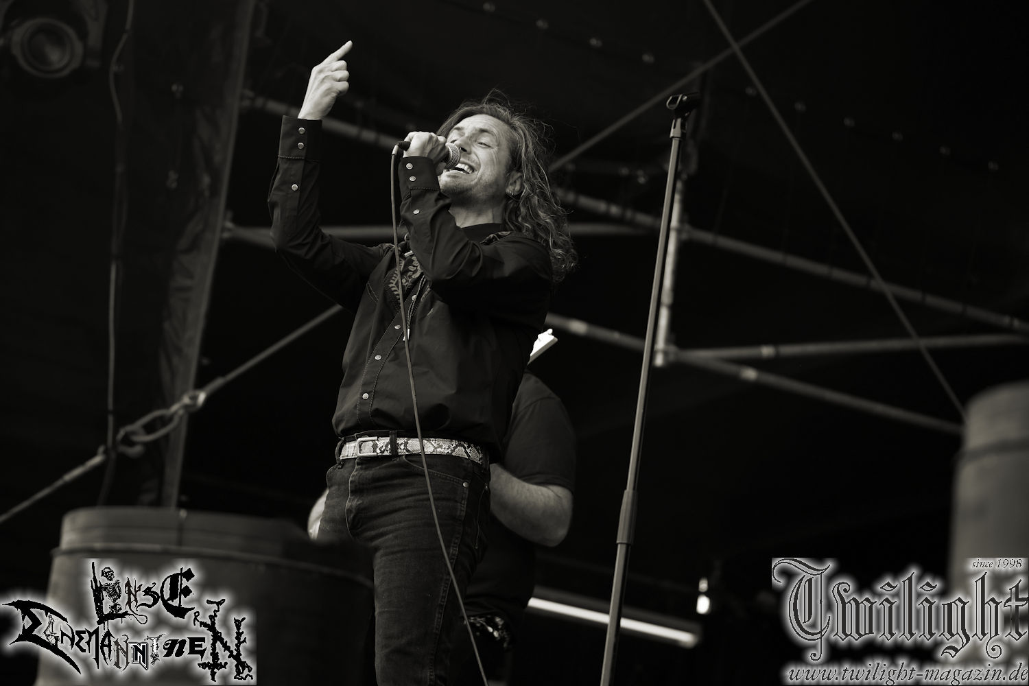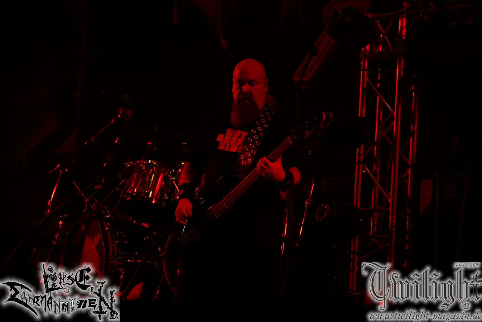 Nachdem ich mich schon die ganze Zeit tierisch darauf gefreut habe, ist es jetzt nun endlich soweit, denn die umwerfenden Night In Gales werden gleich im Zelt loslegen. Ich finde diese Melodic Death Metal - Institution ja wirklich einfach nur genial und ihr Sound ist für mich wunderbar, weshalb ich mich auch erneut mit frischem Bier in der ersten Reihe positioniert habe. Da muss ich einfach ganz vorne mit dabei sein und ich bin echt gespannt, welche Songs sie aus ihrem reichen Fundus wohl spielen werden, immerhin stehen ihnen nur 30 Minuten zur Verfügung. Mein Plan nicht ganz so betrunken zu sein, wie bei ihrem Gig zum 30. Geburtstag von Final Cry in Hannover, ist nicht so ganz aufgegangen, aber immer noch besser als das In Blackest Velvet, Night In Gales, Dew-Scented-Konzert 2001 in Salzgitter im Forellenhof, denn da kann ich mich nur noch teilweise an Dew-Scented erinnern. Egal, denn es geht endlich los und Christian (Gesang), Tobias (Bass), Adriano (Drums) und die Brüder Frank und Jens (beide Gitarre) betreten zu einem schönen Intro sichtlich motiviert die in blaues Licht und Nebel gehüllte sowie jeweils links und rechts von sehr cool aussehenden Sidedrops eingegrenzte Bühne mit dem grandiosen Bandlogo im Hintergrund und legen los. Und zwar mit „Dawnlight Garden“, dem Titelsongs ihres Albums von 2020. Knaller! Gepackt in einen wirklich sehr geilen und fetten Livesound macht sich schon beim ersten Song die große Stärke dieser Band sofort bemerkbar: Umwerfende, packende und emotional sehr mitreißende Melodien gepaart mit bestem Death Metal. Also die ursprüngliche Melo-Death-Schule, so wie ich sie liebe. Anfang der 2000er hatte sich die Band vom Sound her zwar etwas geöffnet, aber für sich festgestellt, dass nur die alte Lehre für sie Sinn macht (nachzulesen im famosen Mørkeskye – Anm. d. Verf.). Das stellen sie mit dem nun folgenden „The Spears Within“ von 2018 mächtig unter Beweis. Wie bereits erwähnt, hat die Band echt Bock, ist bewegungsfreudig und ordentlich am Bangen und Posen, dass es eine wahre Augenfreude ist. Hier wird nicht nur runtergezockt, sondern der eigene Sound erlebt und ausgelebt. Bei solch einer umwerfenden Musik, kann auch keiner unberührt bleiben und um mich herum sehe ich nur strahlende Gesichter und das Zelt ist auch so richtig gut gefüllt. Klasse, das freut mich für die Jungs wirklich sehr. Weiter geht es mit der Hymne „Into The Evergrey“ vom aktuellen Killeralbum „Shadowreaper“. Der Song ist echt sowas von geil, Leute. Als ich das erste Mal das Video sah und hörte, fühlte ich mich sofort in die 90er zurück versetzt, als ich als Teenager vor meiner Anlage saß und mich ergriffen dem Göteborg-Sound hingab. Das ist jetzt nicht anders und ich komme vor Freude gar nicht mehr aus dem Strahlen heraus. Danke dafür Jungs! Kollege Dunemann ist jetzt auch wieder mit dem Fotografieren fertig, hat sich zu mir nach vorne gesellt und mein Vornamensvetter ist ebenfalls anwesend und so feiern wir die Band jetzt gemeinsam ab. „Transition To Doom“ ist dafür auch wie gemacht. Im Rausch der Freude fordern Dunemann und ich den Klassiker „Razor“ und wir haben tatsächlich Glück und nicht nur wir sind entzückt, dass der Song jetzt kommt. Die Stimmung im Zelt kocht und das nicht nur wegen der Hitze. Und dem nicht genug, denn der nächste Klassiker wird uns um unsere Ohren gezimmert, nämlich „Autumn Water“ von „Towards The Twilight“. Wie schön und wenn Night In Gales schon in der alten Schatzkiste kramen, servieren sie uns dann auch noch „Sylphlike“! Ganz grooooßes Kino! Was für ein herrlich intensives und mitreißendes Konzert. Aber auch dieses geht leider irgendwann zu Ende und wird mit einem Klassiker beendet. Aber kein eigener, denn es gibt Iron Maiden ,mit ihrem gleichnamigen Song auf die Ohren und so gehen alle nochmal ordentlich ab und verlassen mehr als zufrieden das Zelt. Danke für dieses tolle Konzert Night In Gales! Ich bin zutiefst zufrieden. Und falls Night In Gales bei euch bisher unter dem Radar liefen und ihr Fans von mitreißenden feurigen, intensiven und von Herzblut angetriebenen Melodic Death Metal der alten Schule seid, ist diese Band für euch Pflicht!