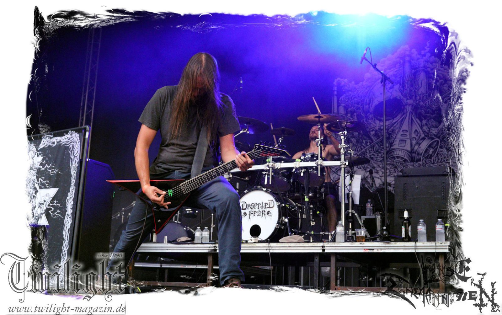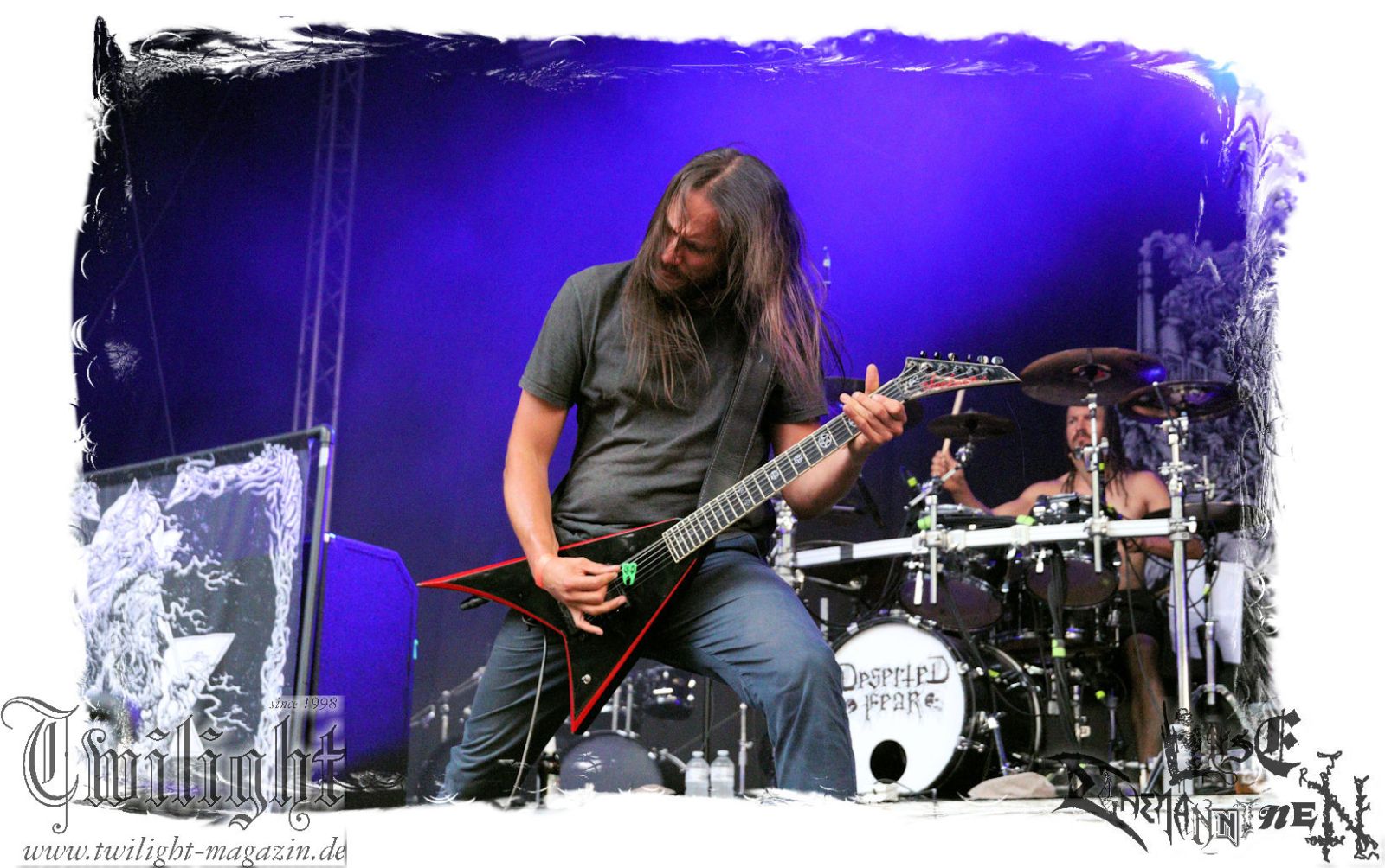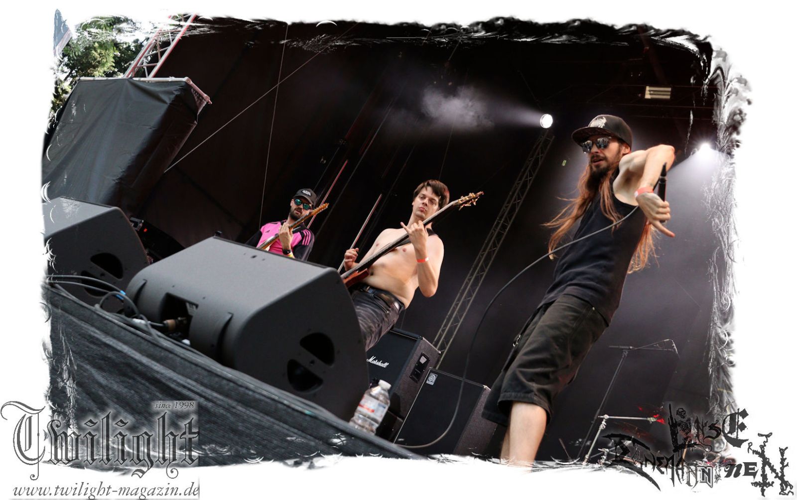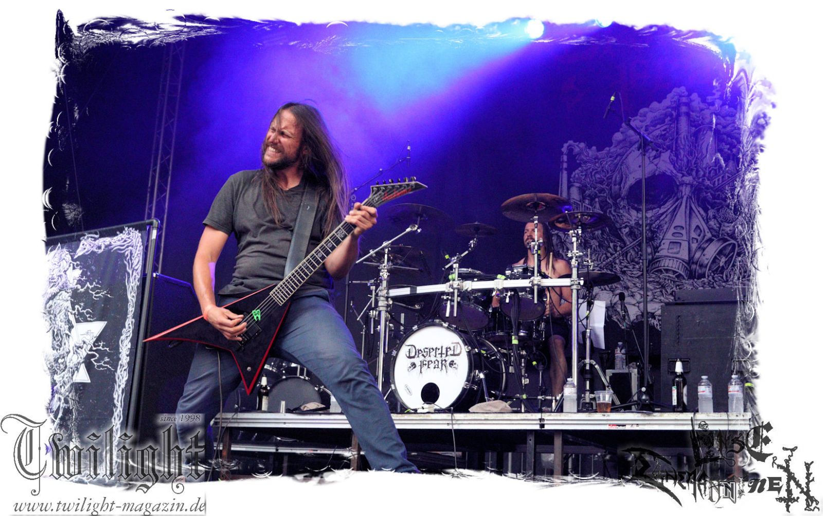 Von Berlin geht es nun gen Thüringen. Eisenbergs Finest bzw. DESERTED FEAR verwandeln die präzise Steilvorlage aus der Hauptstadt mit Leichtigkeit und aller Souveränität. Was soll ich über diese Band noch schreiben. Ich kenne niemanden mit einem solchen Status, der Death Metal mit einer solchen Herzlichkeit, soviel Power und auch nach fünf Alben mit soviel unverbrauchter Frische auf der Bühne zelebriert. Die relativ frühe Entscheidung in der Karriere, die Band zwar professionell aber nicht hauptberuflich zu betreiben, dürfte ein nicht unwesentlicher Faktor dafür sein, dass dem Trio um Fabian, Simon und Manuel die Sympathien des Publikums nur so zufliegen. Basser John soll hier natürlich nicht außen vor bleiben, der sich wie seine Vorgänger perfekt integriert hat. Die Band harmoniert perfekt und liefert ein kraftvolles Death Metal – Gewitter in der Abendsonne ab, das mit dem obligatorischen "Bury Your Dead" vom Debut "My Empire" seinen Höhepunkt findet. Jungs, bleibt wie Ihr seid und bewahrt Euch diese Unbeschwertheit und Spielfreude! Wir sehen uns in Braunschweig!!!
