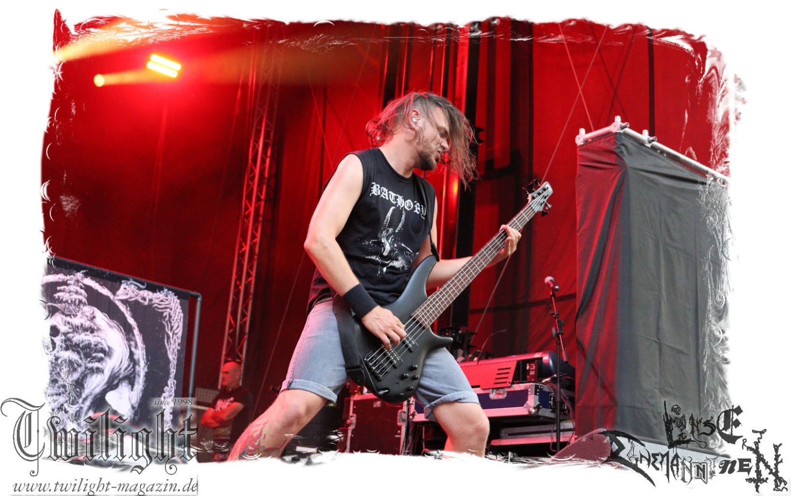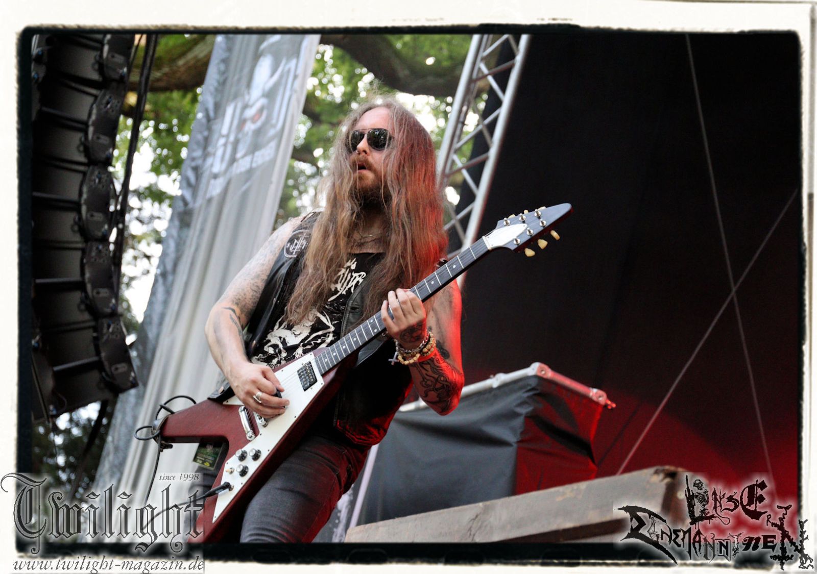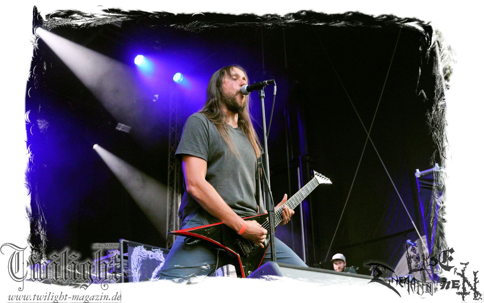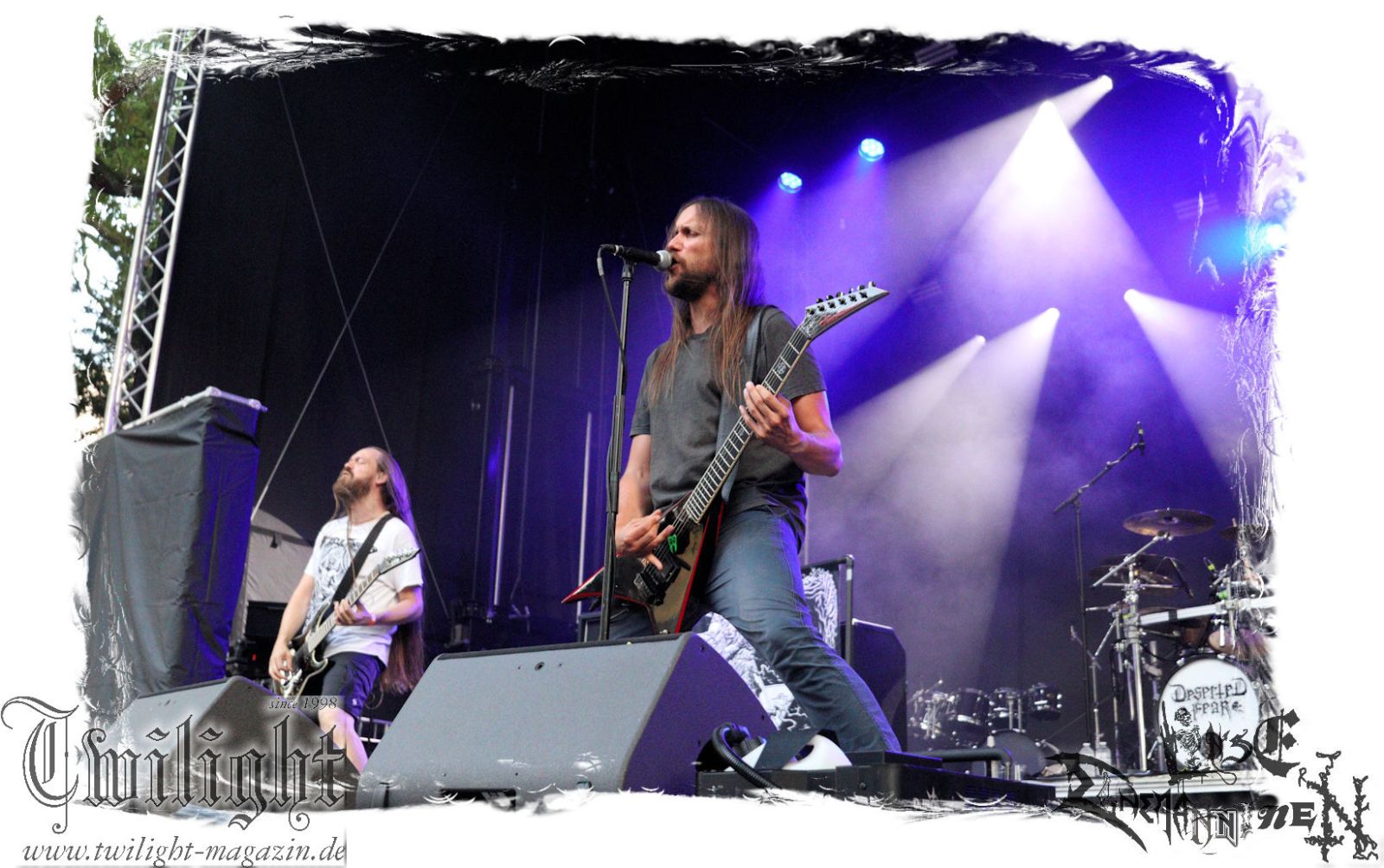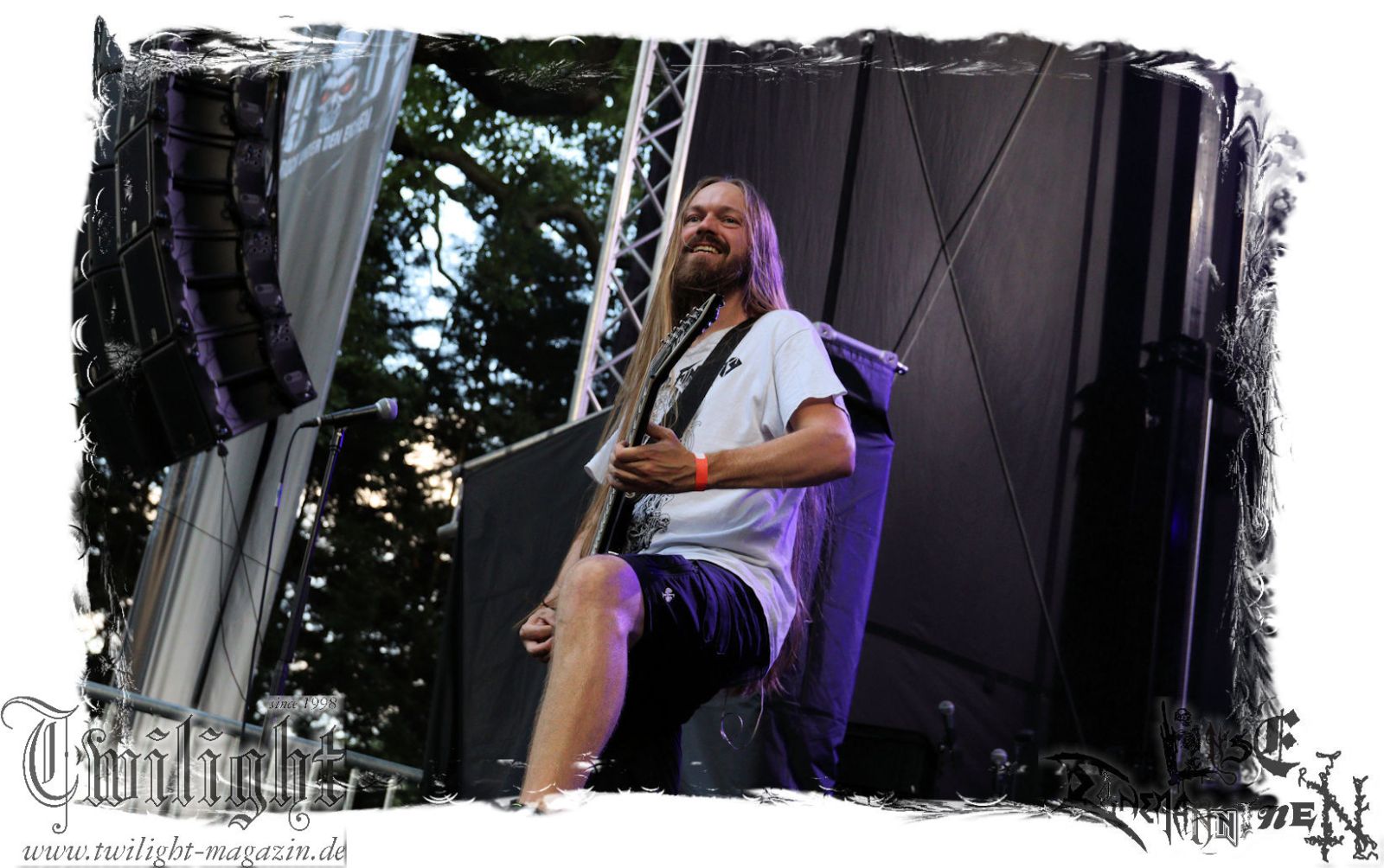 Von Berlin geht es nun gen Thüringen. Eisenbergs Finest bzw. DESERTED FEAR verwandeln die präzise Steilvorlage aus der Hauptstadt mit Leichtigkeit und aller Souveränität. Was soll ich über diese Band noch schreiben. Ich kenne niemanden mit einem solchen Status, der Death Metal mit einer solchen Herzlichkeit, soviel Power und auch nach fünf Alben mit soviel unverbrauchter Frische auf der Bühne zelebriert. Die relativ frühe Entscheidung in der Karriere, die Band zwar professionell aber nicht hauptberuflich zu betreiben, dürfte ein nicht unwesentlicher Faktor dafür sein, dass dem Trio um Fabian, Simon und Manuel die Sympathien des Publikums nur so zufliegen. Basser John soll hier natürlich nicht außen vor bleiben, der sich wie seine Vorgänger perfekt integriert hat. Die Band harmoniert perfekt und liefert ein kraftvolles Death Metal – Gewitter in der Abendsonne ab, das mit dem obligatorischen "Bury Your Dead" vom Debut "My Empire" seinen Höhepunkt findet. Jungs, bleibt wie Ihr seid und bewahrt Euch diese Unbeschwertheit und Spielfreude! Wir sehen uns in Braunschweig!!!