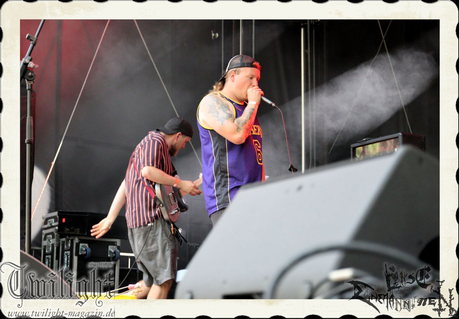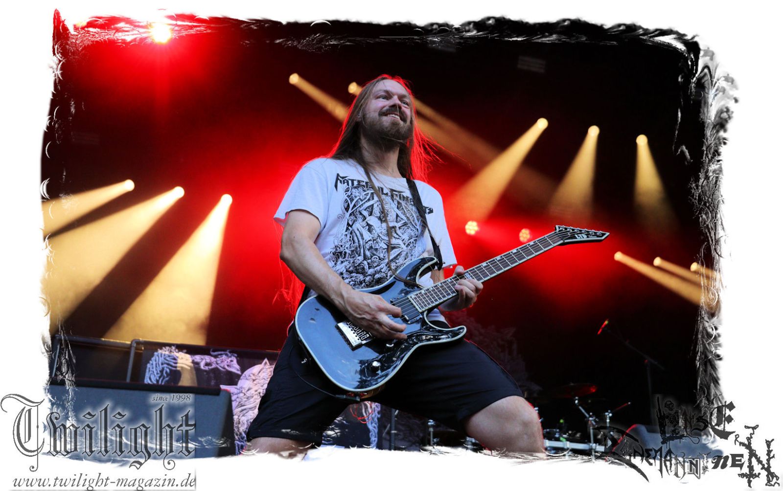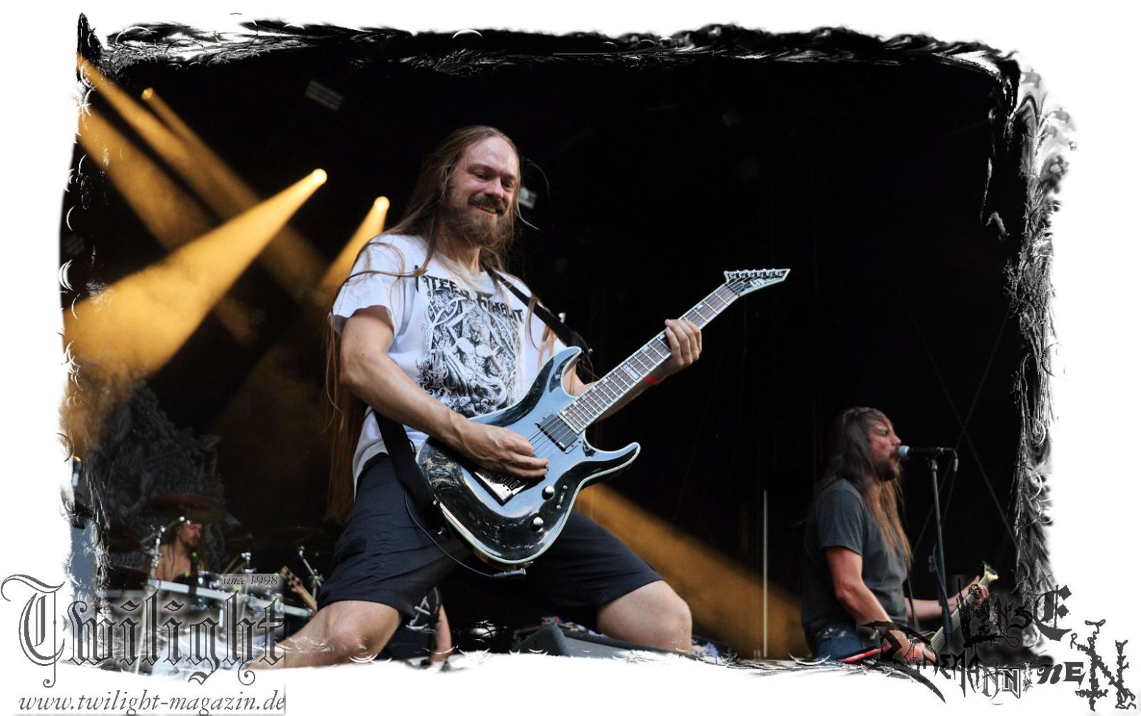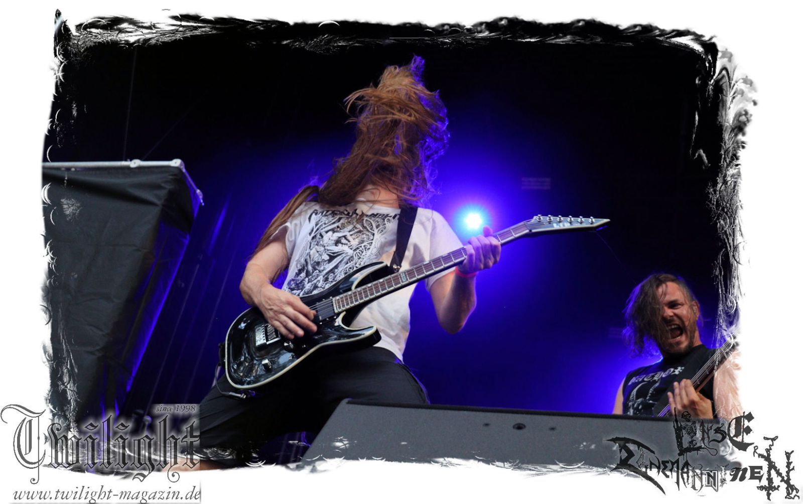 Von Berlin geht es nun gen Thüringen. Eisenbergs Finest bzw. DESERTED FEAR verwandeln die präzise Steilvorlage aus der Hauptstadt mit Leichtigkeit und aller Souveränität. Was soll ich über diese Band noch schreiben. Ich kenne niemanden mit einem solchen Status, der Death Metal mit einer solchen Herzlichkeit, soviel Power und auch nach fünf Alben mit soviel unverbrauchter Frische auf der Bühne zelebriert. Die relativ frühe Entscheidung in der Karriere, die Band zwar professionell aber nicht hauptberuflich zu betreiben, dürfte ein nicht unwesentlicher Faktor dafür sein, dass dem Trio um Fabian, Simon und Manuel die Sympathien des Publikums nur so zufliegen. Basser John soll hier natürlich nicht außen vor bleiben, der sich wie seine Vorgänger perfekt integriert hat. Die Band harmoniert perfekt und liefert ein kraftvolles Death Metal – Gewitter in der Abendsonne ab, das mit dem obligatorischen "Bury Your Dead" vom Debut "My Empire" seinen Höhepunkt findet. Jungs, bleibt wie Ihr seid und bewahrt Euch diese Unbeschwertheit und Spielfreude! Wir sehen uns in Braunschweig!!!