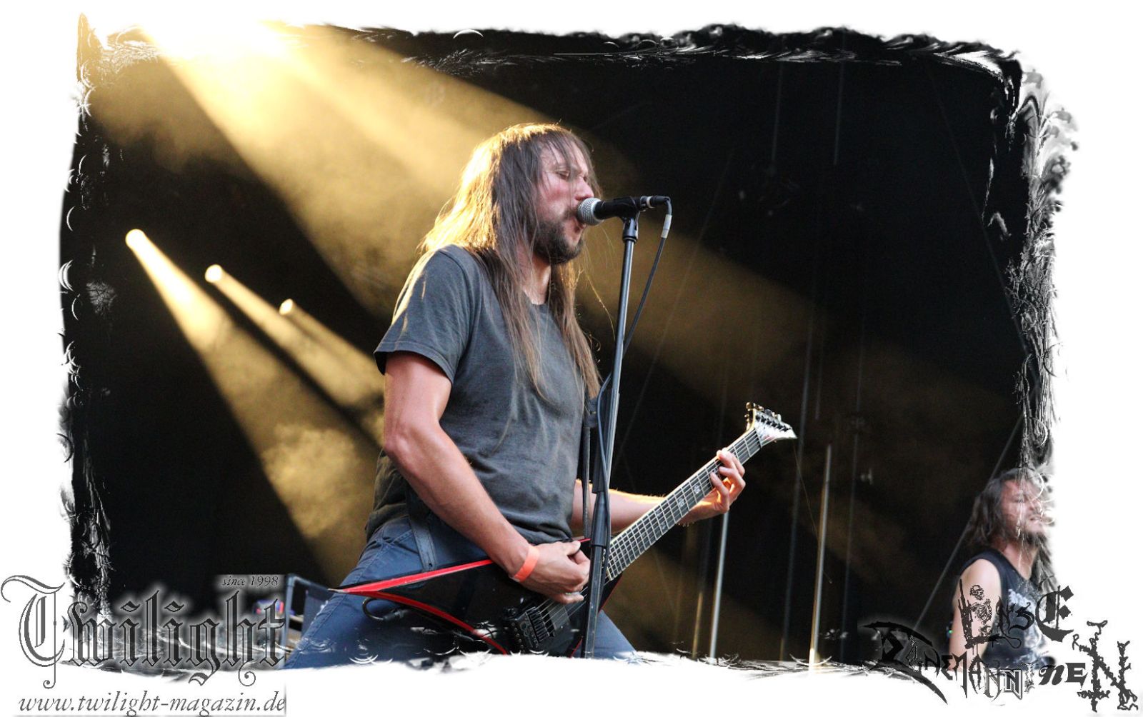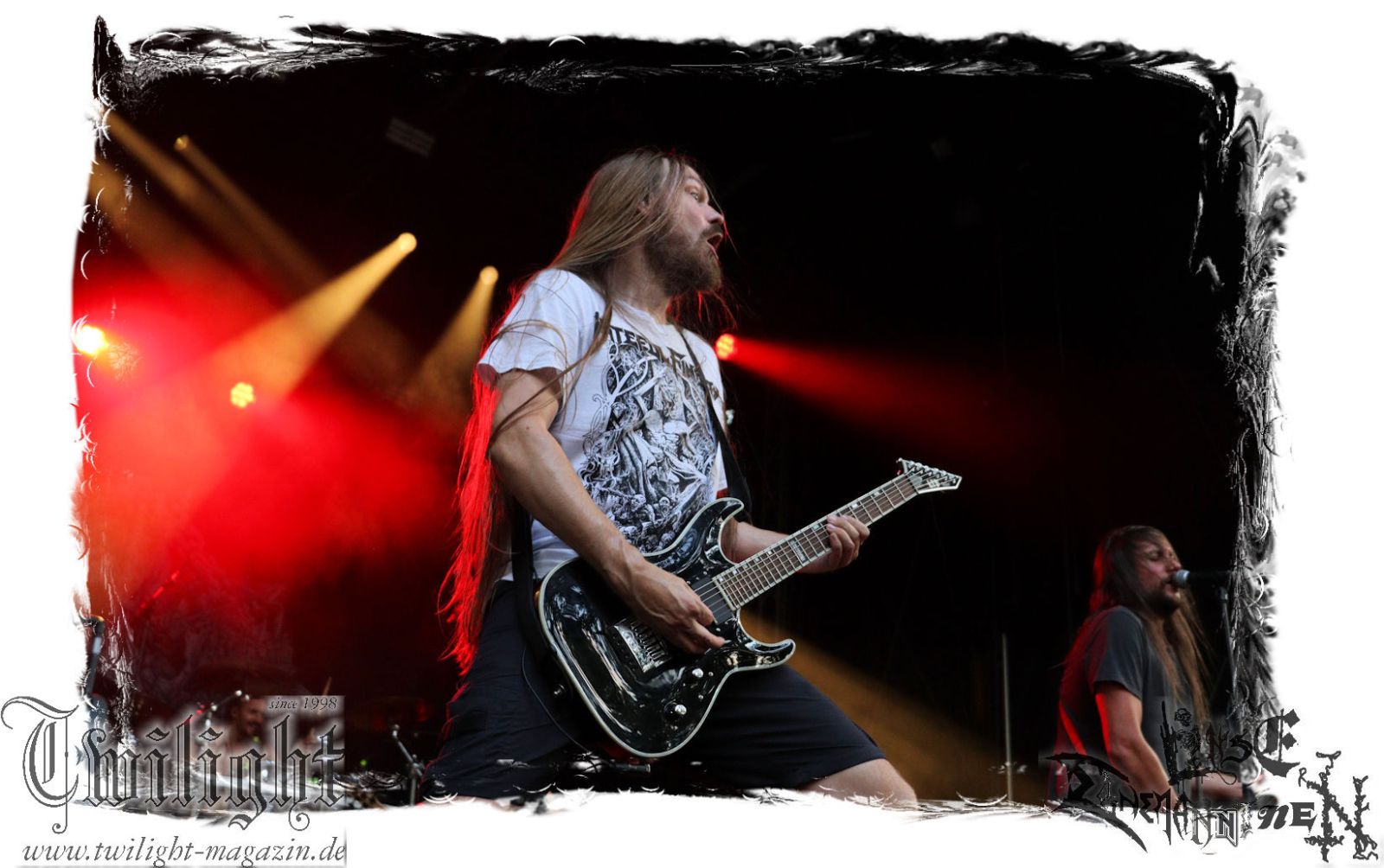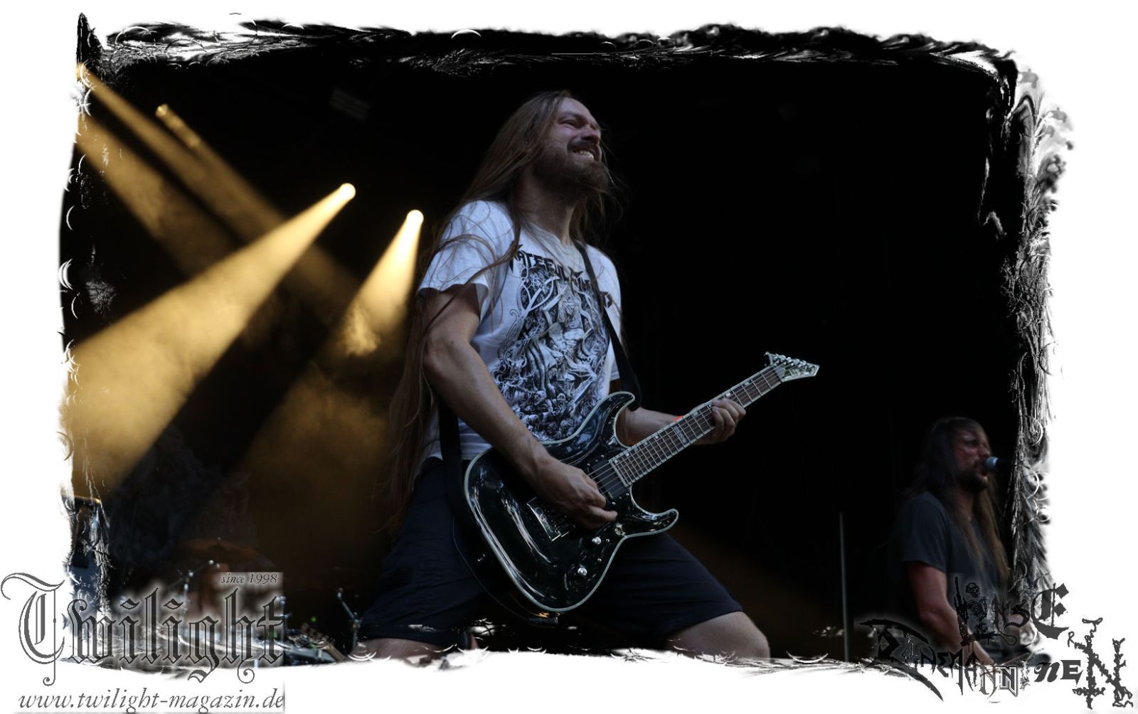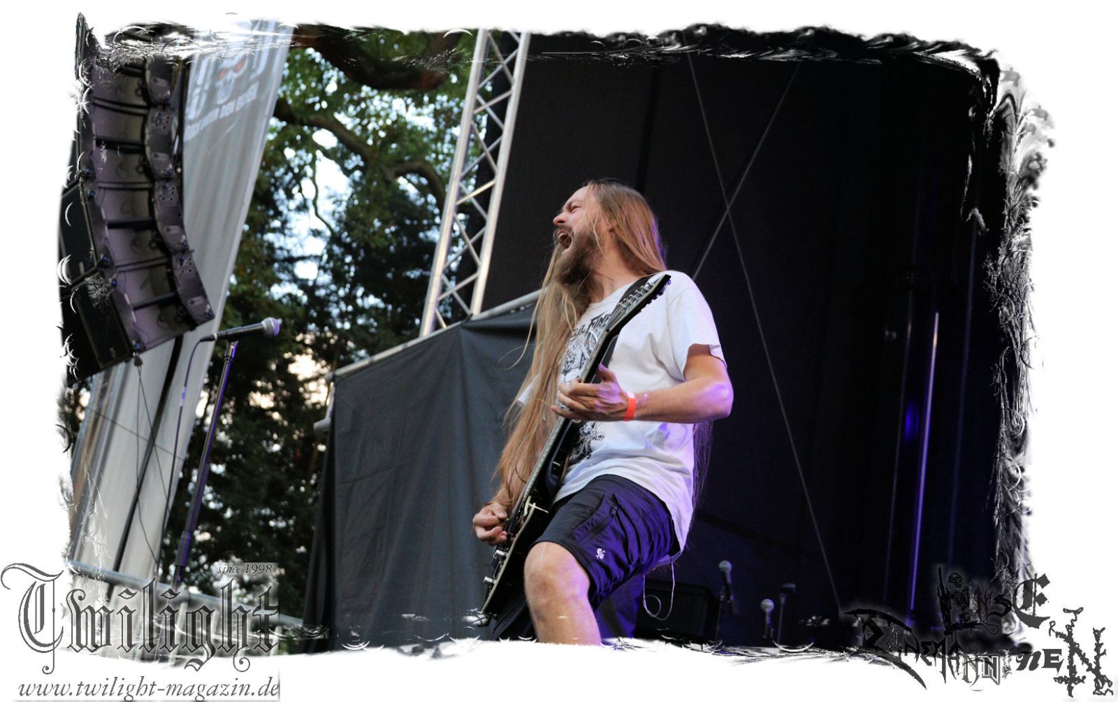 Was danach zum Finale des Abends auf der Bühne passiert lässt sich schlicht und ergreifend mit einem einzigen Wort zusammenfassen: EPISCH!!! Was man bereits auf dem Ultima Ratio – Fest im Herbst erahnen durfte findet am heutigen Abend in der Headliner-Show auf dem ROCK UNTER DEN EICHEN für mich eine eindrucksvolle Bestätigung: Primordial sind live derzeit unbestritten auf dem Zenit ihres Schaffens angelangt. Nemtheanga, Ciáran, Pól und Simon brennen ein derart intensives Feuerwerk ab. Die Live-Alben "All Empires Fall" und "Gods To The Godless" sind Meilensteine aber nichts im Verlgeich zu dem, was die Band inzwischen auf die Bühne zu bringen in der Lage ist. Da hat zweifelsfrei "How It Ends", welches im letzten Jahr veröffentlicht wurde auch seinen Anteil, von dem der Titeltrack und "Victory Has 1000 Fathers, Defeat Is An Orphan" zelebriert werden. Der Einstieg erfolgt mit "As Rome Burns", den krönenden Abschluss bildet "Empire Falls". Der Übersong "To Hell Or The Hangman" darf natürlich nicht fehlen, ebensowenig die Klassiker "The Coffin Ships" sowie "No Grave Deep Enough". Primordial machen immer wieder auf´s Neue sprachlos. Möge ihnen dieser Spirit und diese Intensität niemals ausgehen.