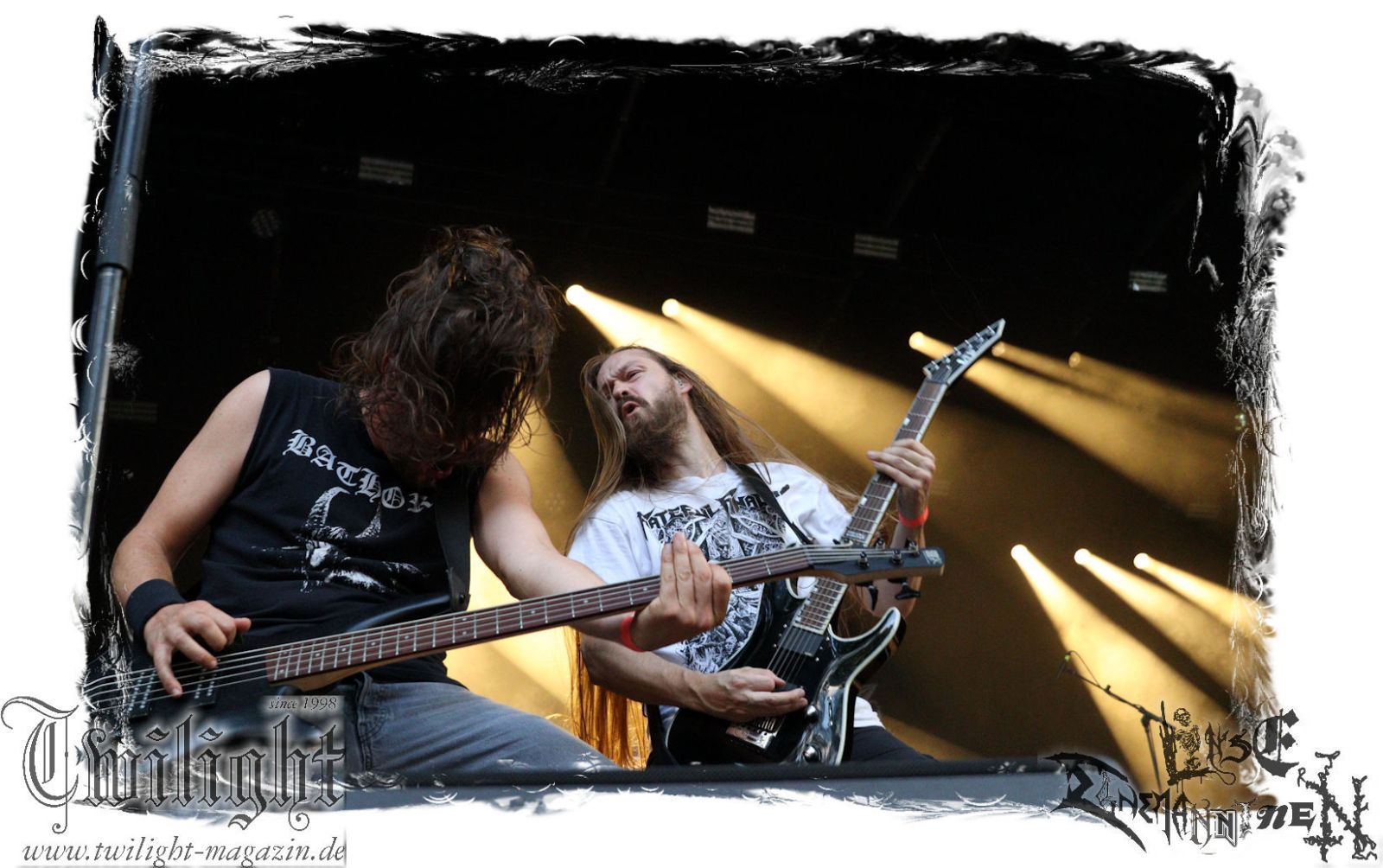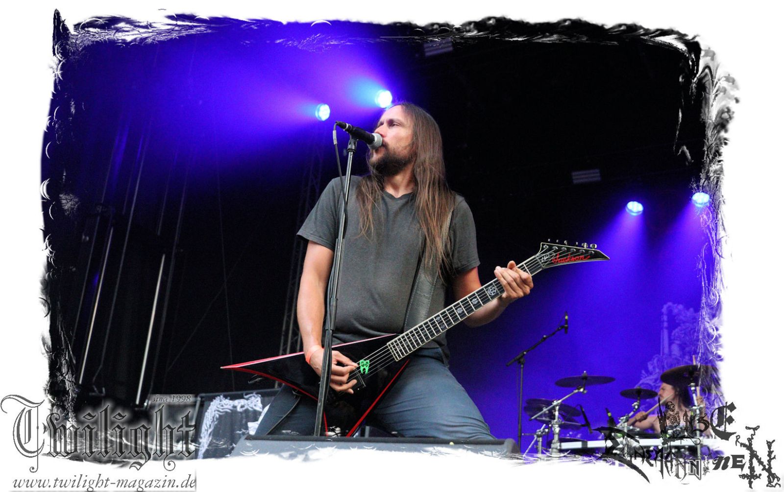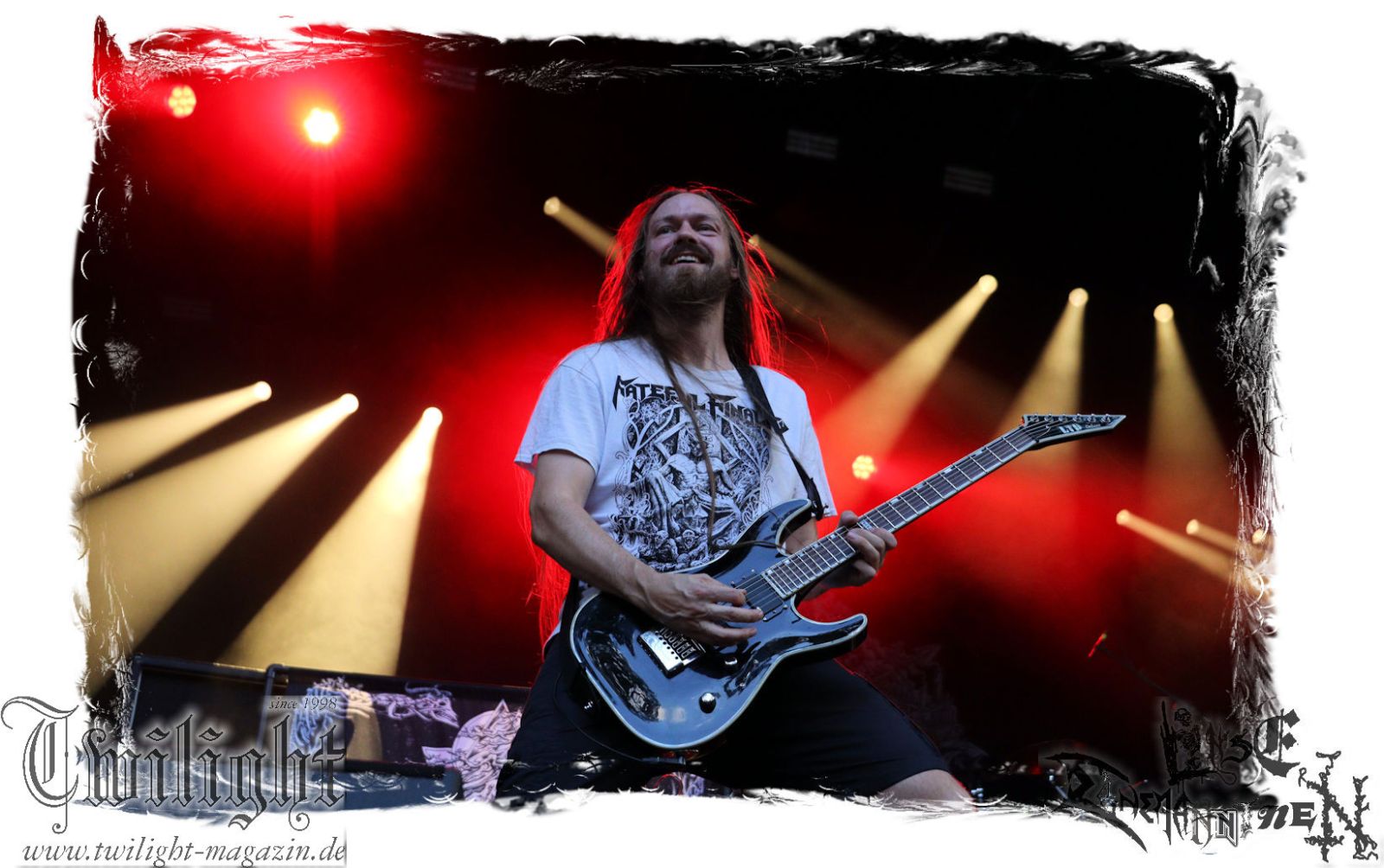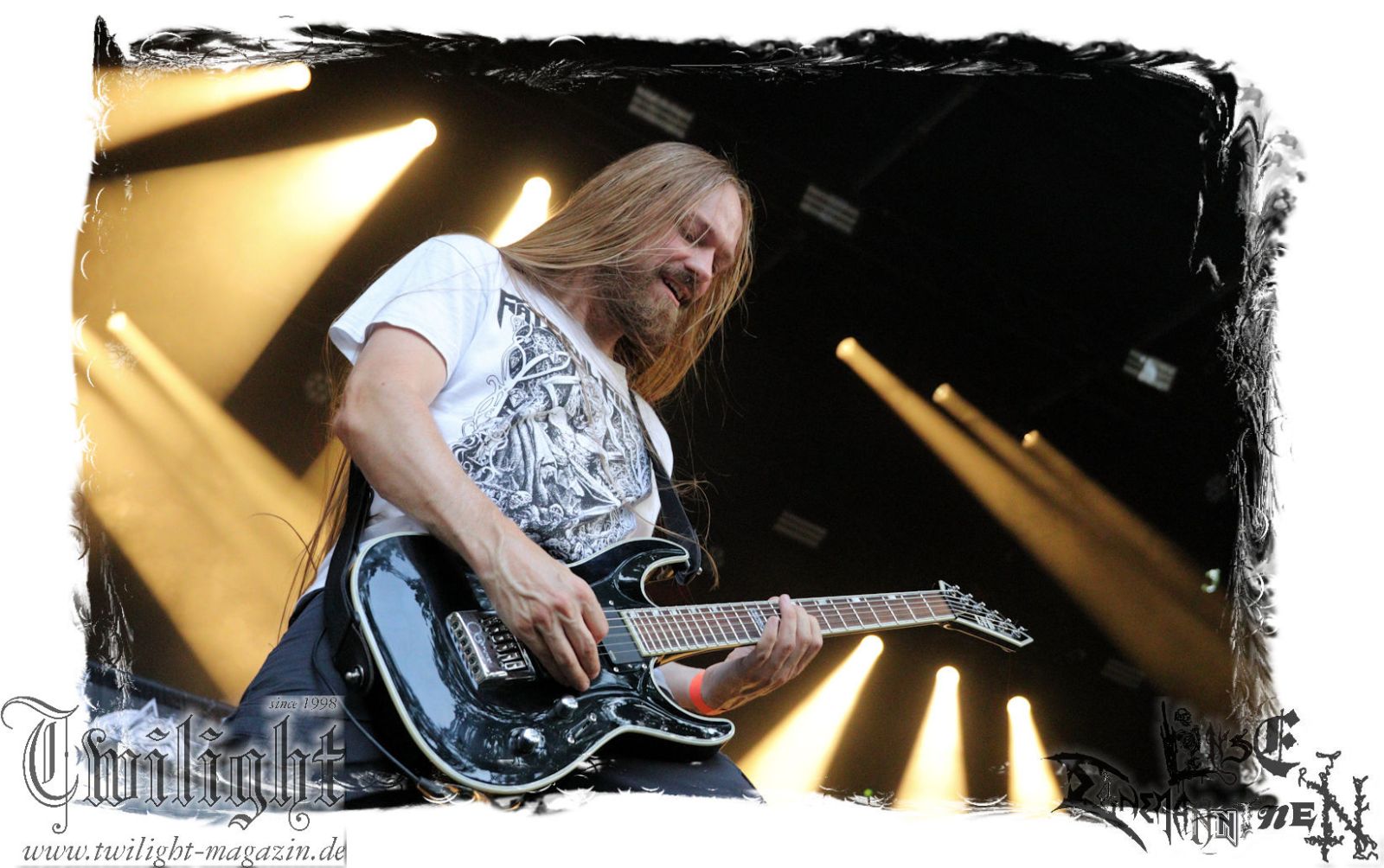 Was danach zum Finale des Abends auf der Bühne passiert lässt sich schlicht und ergreifend mit einem einzigen Wort zusammenfassen: EPISCH!!! Was man bereits auf dem Ultima Ratio – Fest im Herbst erahnen durfte findet am heutigen Abend in der Headliner-Show auf dem ROCK UNTER DEN EICHEN für mich eine eindrucksvolle Bestätigung: Primordial sind live derzeit unbestritten auf dem Zenit ihres Schaffens angelangt. Nemtheanga, Ciáran, Pól und Simon brennen ein derart intensives Feuerwerk ab. Die Live-Alben "All Empires Fall" und "Gods To The Godless" sind Meilensteine aber nichts im Verlgeich zu dem, was die Band inzwischen auf die Bühne zu bringen in der Lage ist. Da hat zweifelsfrei "How It Ends", welches im letzten Jahr veröffentlicht wurde auch seinen Anteil, von dem der Titeltrack und "Victory Has 1000 Fathers, Defeat Is An Orphan" zelebriert werden. Der Einstieg erfolgt mit "As Rome Burns", den krönenden Abschluss bildet "Empire Falls". Der Übersong "To Hell Or The Hangman" darf natürlich nicht fehlen, ebensowenig die Klassiker "The Coffin Ships" sowie "No Grave Deep Enough". Primordial machen immer wieder auf´s Neue sprachlos. Möge ihnen dieser Spirit und diese Intensität niemals ausgehen.