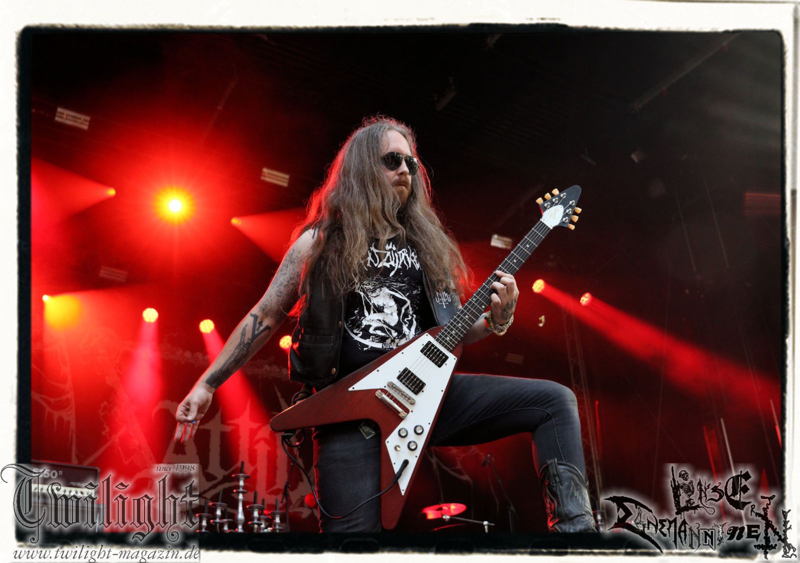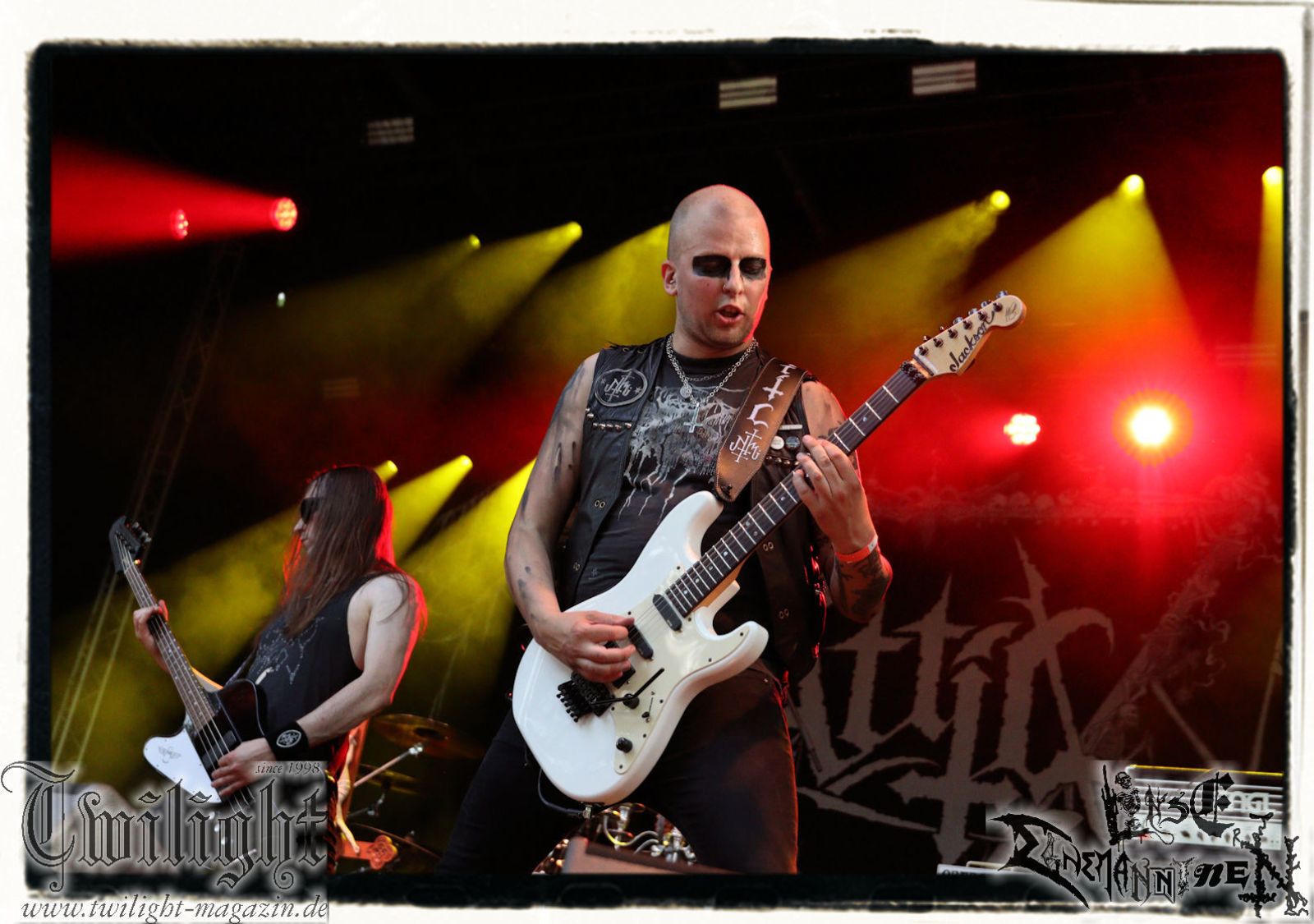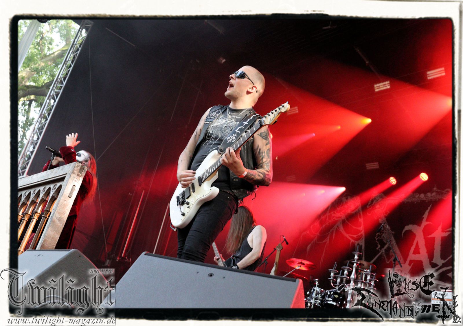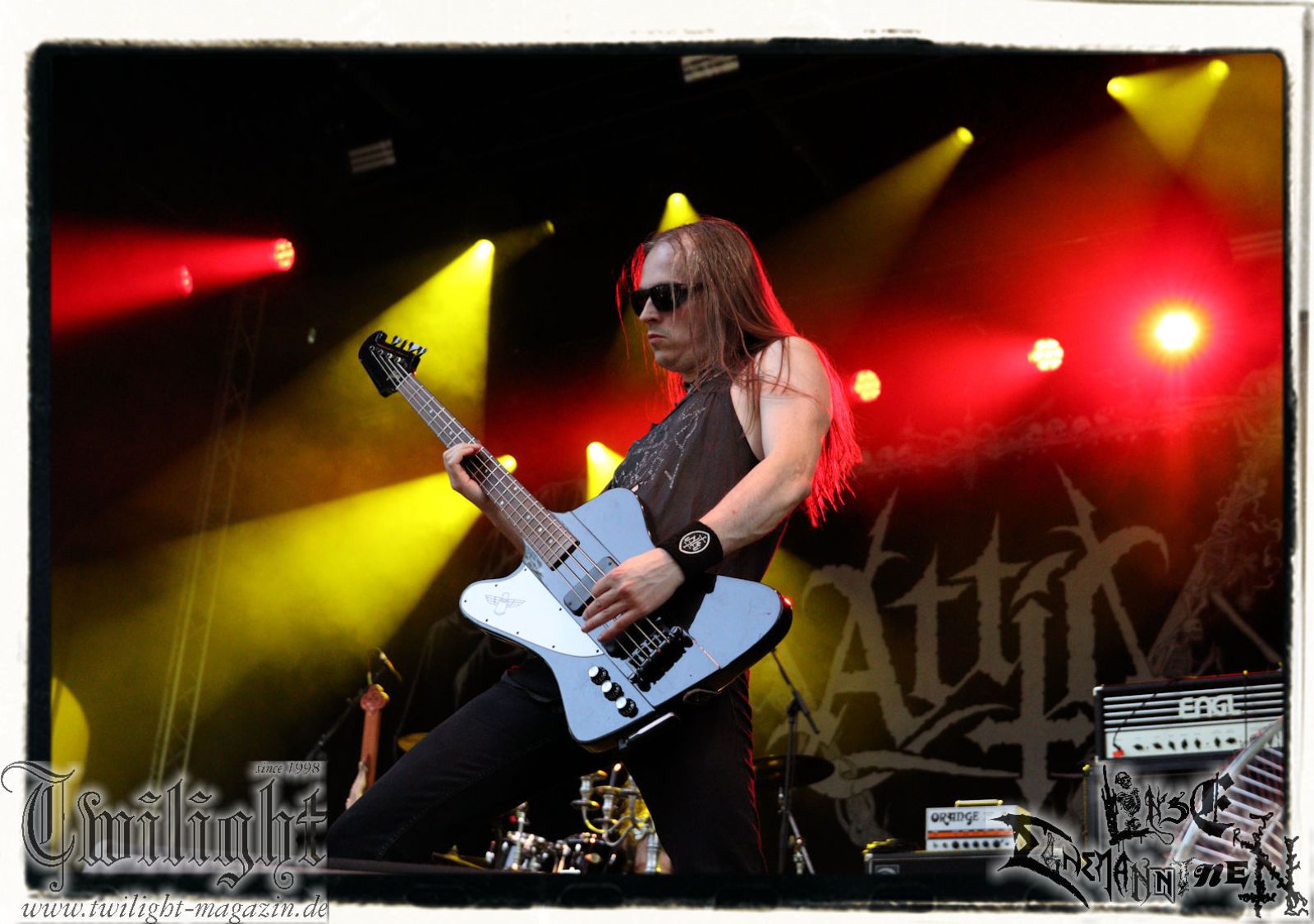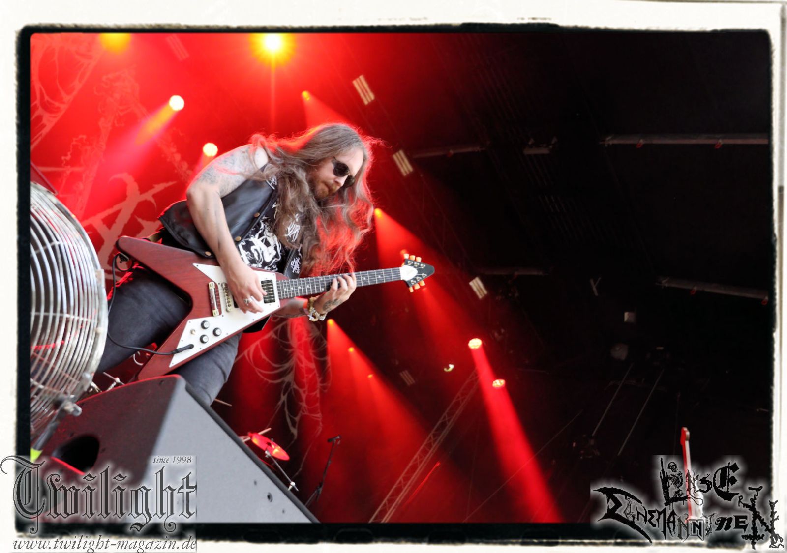 Auf der Hauptbühne geht´s zwischenzeitlich ans Eingemachte. Mich treibt allerdings schon seit dem Nachmittag die Frage um, ob die selbsternannte "Panzerdivision Marduk" selbigen vor dem Gig auch genutzt hat, um auf dem ehemaligen russischen Armeestützpunkt und heutigen Offroad-Park kurz vor Bertingen die eigene Fahrtauglichkeit zu prüfen. Diverse Kapellen kommen ja regelmäßig mit Motorrädern auf die Bühne, warum nicht mal ein Panzer, allerdings möchte ich Sabaton jetzt nicht auf noch blödere Ideen bringen. Die Schweden um Morgan Håkansson starten nostalgisch mit "On Darkened Wings" vom "Those Of The Unlight"-Klassiker und die Fußtruppen vor der Bühne zeigen sich sofort ergeben. Marduk hinterlassen Song für Song nichts als verbrannte Erde. Die aktuellen Werke wie "Memento Mori" und "Viktoria" werden ebenso berücksichtigt, wobei ich Marduk immer dann am überzeugendsten finde und fand, wenn sie sich nicht dem bloßem Geprügel und der puren Raserei hingegeben, sondern auf Atmosphäre gesetzt haben. Daher bleiben neben dem hoffnungsvollen Opener vor allem "Wartheland" vom großartigen "Frontschwein"-Album und wiederum der Klassiker "Wolfes" nachhaltig in Erinnerung. Und ganz nebenbei fehlt den Schweden irgendwie doch live die zweite Gitarre. Aber beeindruckend ist der Gig allemal. Außerdem bietet er Gelegenheit vor der Bühne nochmal so richtig die Sau raus zu lassen.