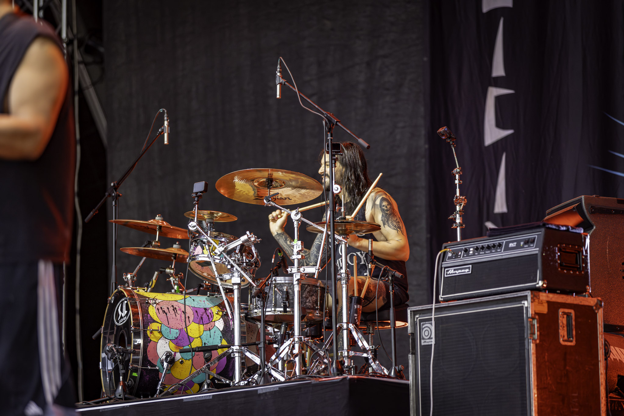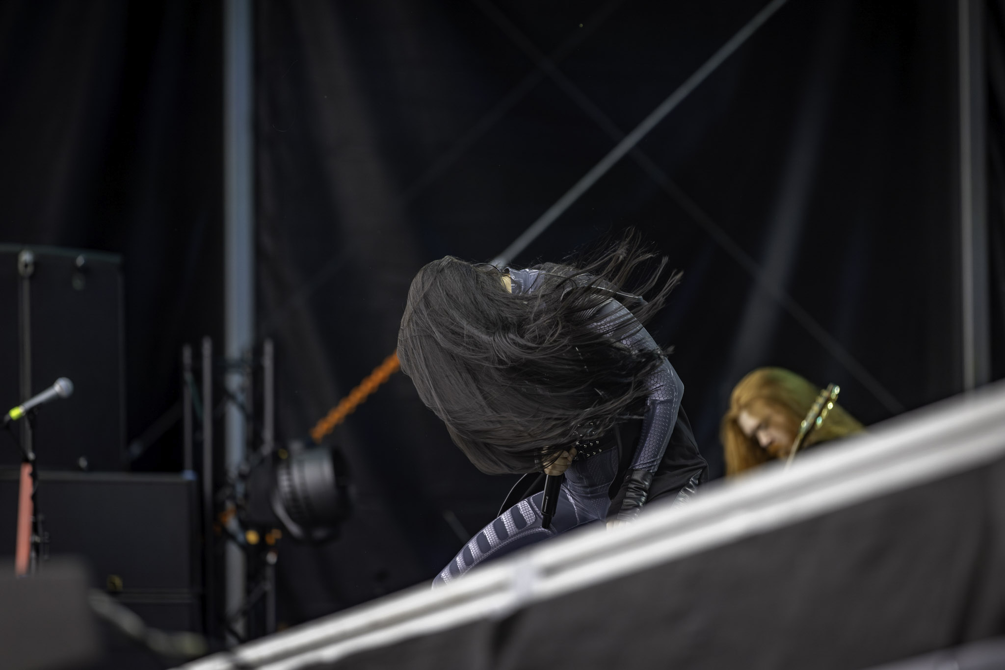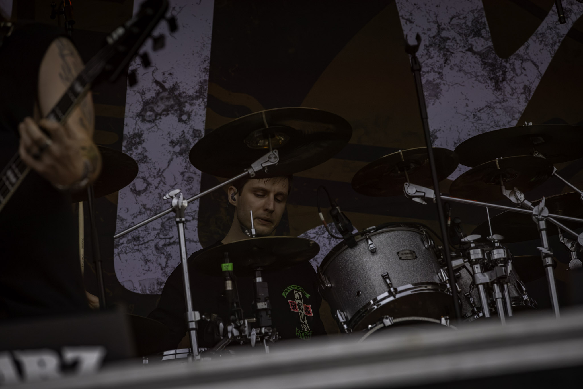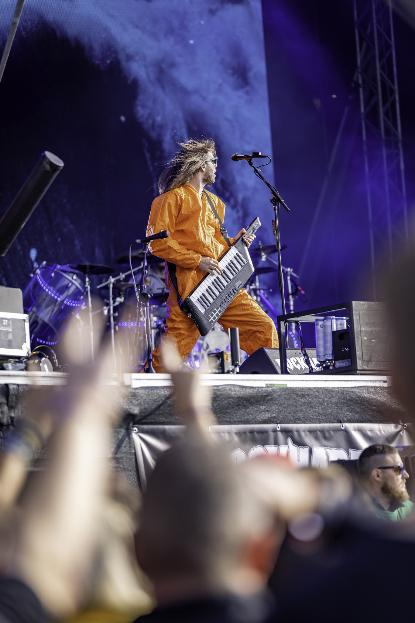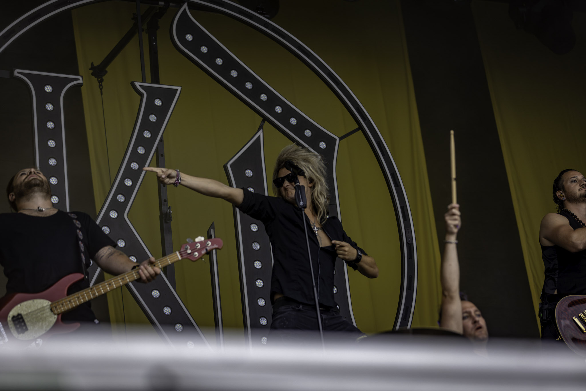 Der Mittwoch hatte gemäß Runningorder schon einiges zu bieten, sodass der musikalische Reigen um 17:35 Uhr mit Mammoth WVH auf der Rockstage startete. Ein seltsamer Bandname, unter dem sich niemand etwas vorstellen würde, wäre da nicht die Zusatzinformation „WVH“, die für Wolfgang Van Halen steht. Der Sohn des legendären Gitarren-Gottes Eddie Van Halen, der nun an Gitarre und Gesang mit seiner eigenen Band unterwegs ist und super erdigen HardRock spielt. Jedes Mal wenn Wolfgang Van Halen ein Solo spielt tobt die Menge, da es unverkennbar ist, wer sein Lehrer war.