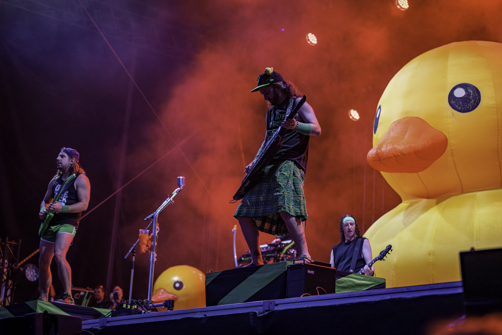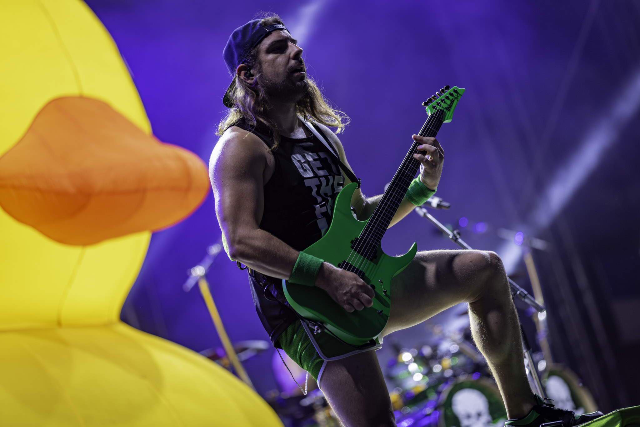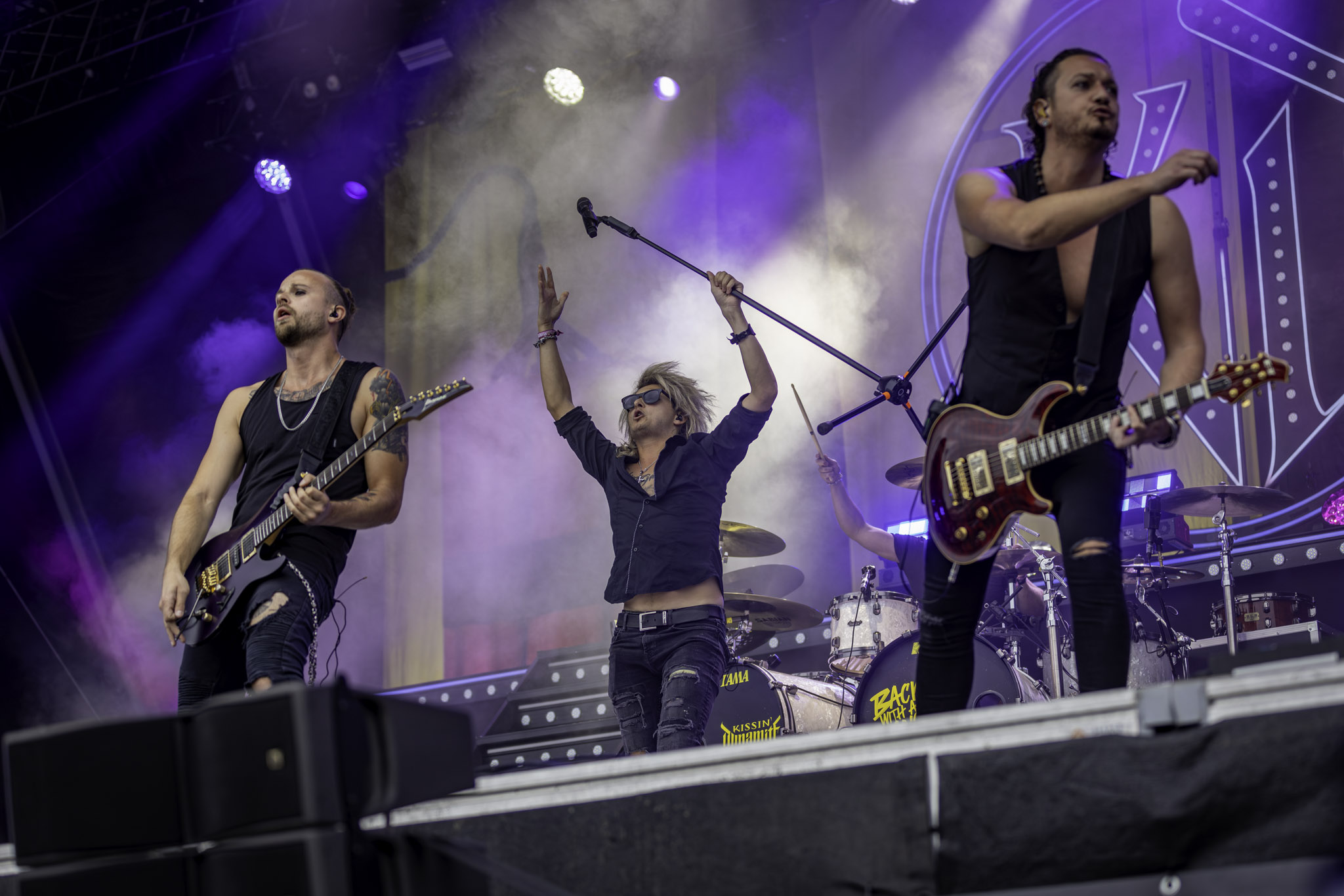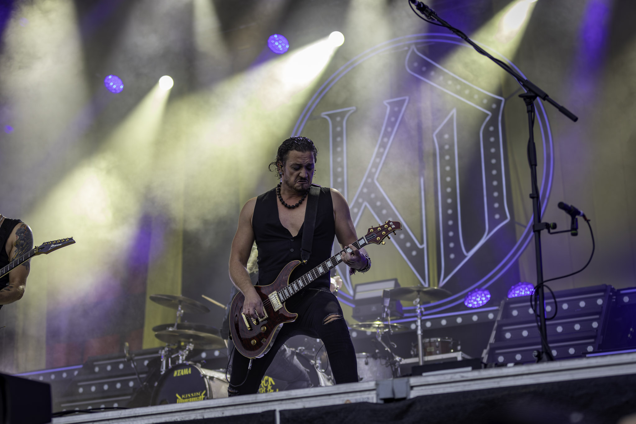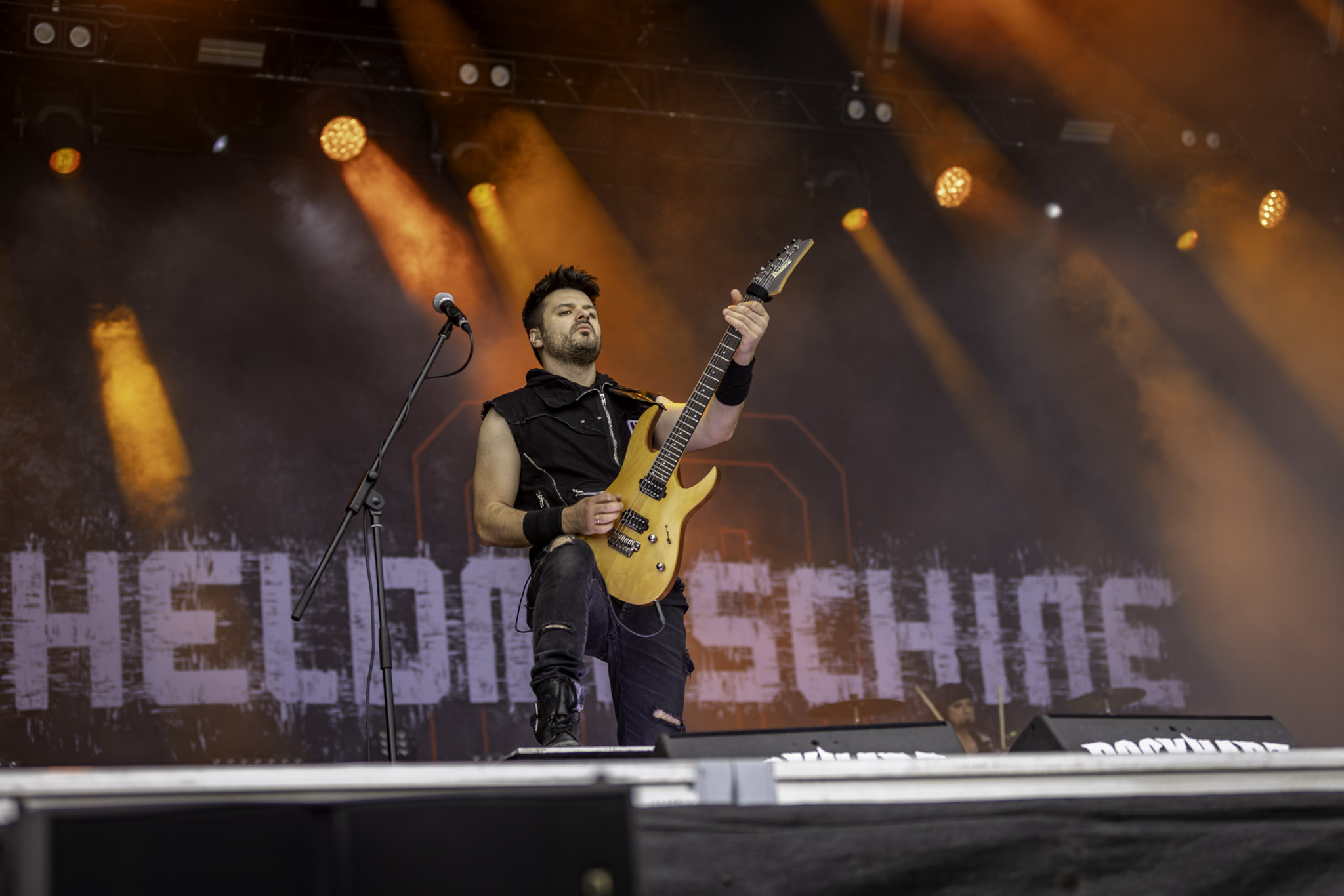 Der Mittwoch hatte gemäß Runningorder schon einiges zu bieten, sodass der musikalische Reigen um 17:35 Uhr mit Mammoth WVH auf der Rockstage startete. Ein seltsamer Bandname, unter dem sich niemand etwas vorstellen würde, wäre da nicht die Zusatzinformation „WVH“, die für Wolfgang Van Halen steht. Der Sohn des legendären Gitarren-Gottes Eddie Van Halen, der nun an Gitarre und Gesang mit seiner eigenen Band unterwegs ist und super erdigen HardRock spielt. Jedes Mal wenn Wolfgang Van Halen ein Solo spielt tobt die Menge, da es unverkennbar ist, wer sein Lehrer war.