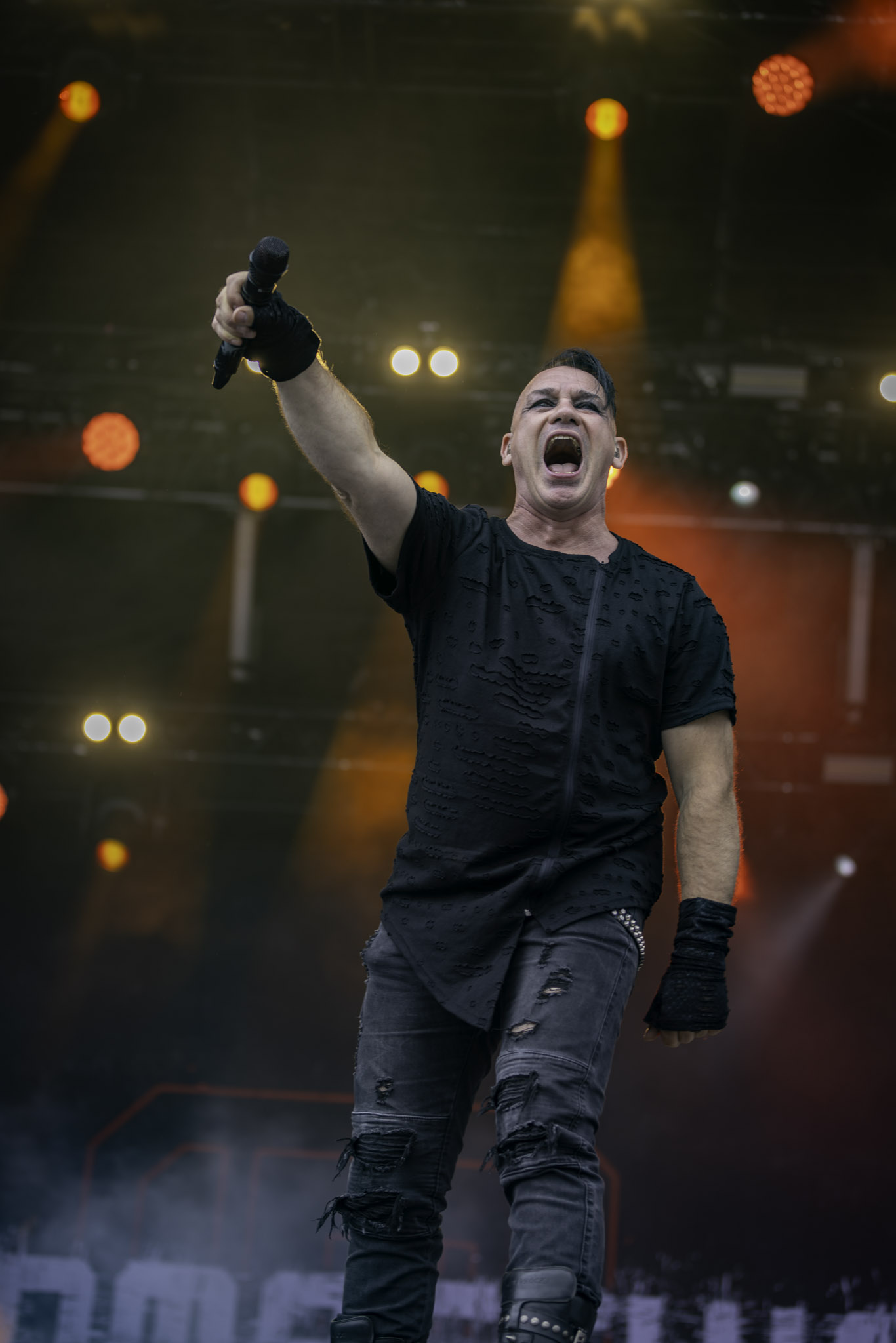 Nach einer kurzen Pause ging es dann mit OOMPH! weiter. Für die meisten Metalheads dürfte dieser Auftritt mit Daniel Schulz eine Premiere sein. „Der Schulz“, bzw. der Ex-Frontmann von Unzucht hatte ja noch nicht allzu viele Gelegenheiten, seine Qualitäten einem solch breitgefächerten Publikum in dieser Band zu präsentieren. Aber wer den sympathischen Sänger kennt, musste sich keine Sorgen machen, dass er sich in seiner neuen Umgebung perfekt zurecht finden würde und wie immer das Publikum mitzieht. Die Songs wurden auch super performt, sodass Herr Schulz seinem Vorgänger Dero in nichts nachstand.