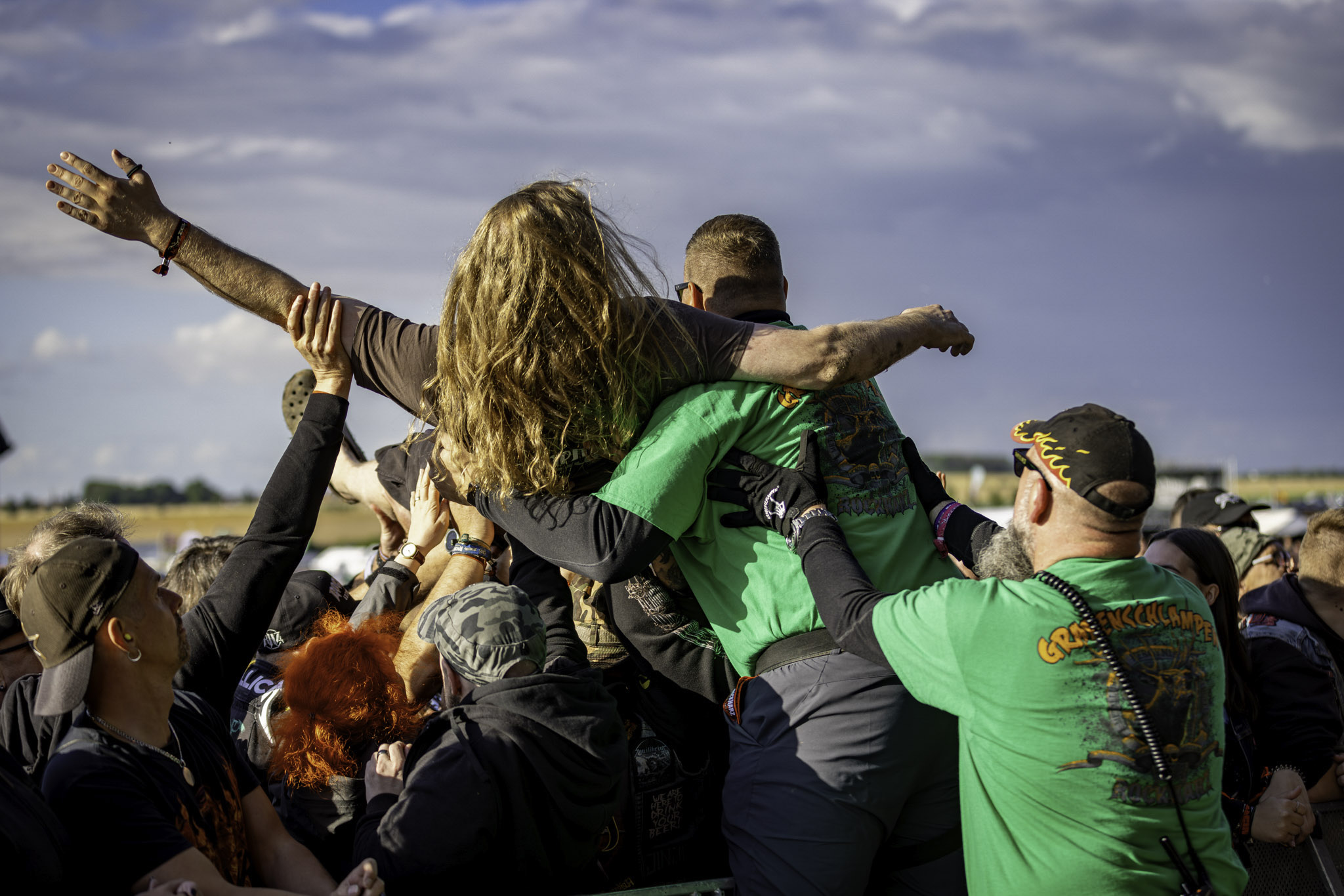 hat es ebenfalls geschafft, seit mittlerweile über 50 Jahren durchgehend musikalisch aktiv zu bleiben. Und wie bei vielen anderen Bands, scheint auch er die musikalischen Rechte zu besitzen, immer noch alte Accept Songs spielen zu dürfen. Und mal ganz ehrlich: wer will schon „neues Material“ von einem Urgestein des Heavy Metal hören? Ob zu „Metal Heart“, Princess Of The Dawn“, „Fast As A Shark“ oder „Balls To The Wall“, Udos´ Stimme passt immer noch wie damals und die Meute gröhlt alles mit. Auch schön zu sehen, dass aus alten Accept-Zeiten Basser Peter Baltes zurückgekehrt ist und mit Drummer Sven Dirkschneider (dem Sohn von Udo Dirkschneider, der auch schon fast 10 Jahre dabei ist) für den nötigen Wumms sorgt.