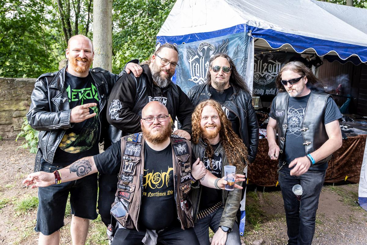 Die Eröffnungsband für den Freitag sollte eigentlich die Band Nordic Raid sein, aber die musste frühzeitig absagen. Dafür ist recht spontan die norddeutsche Band Thjodrorir eingesprungen. Über eine gute Portion Pagan-Metal als Vorspeise beschwere ich mich nie und sie haben als erste Band einen guten Auftritt hingelegt. Musikalisch bieten sie ein solides, kräftiges Stück Musik und sie haben sich merkbar alle Mühe gegeben. So können sie bereits die ersten Zuschauer vor der Bühne mit Leichtigkeit in Bewegung setzen und mit ihnen interagieren, was die gute Bühnenpräsenz und Erfahrung des Frontmann beweist. Zu meinem Glück durfte ich den Drummer der Band vorzeitig kennen lernen und habe erfahren das dieser Auftritt auch sein erster Auftritt mit der Band ist. Er ist wirklich aufgeregt, aber dafür hat er seinen Einsatz mit Bravour erledigt. Das nenne ich einen schönen Anfang am Freitag.
