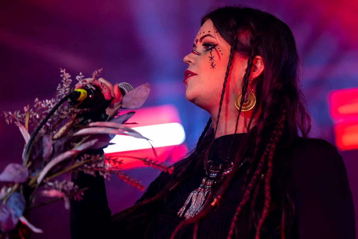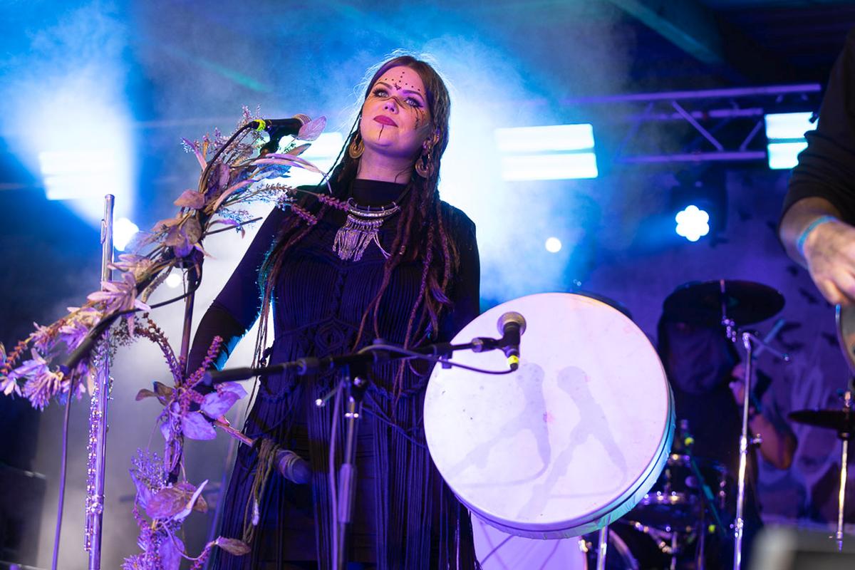 Mit dem nächsten Act wird es mystisch. Vermilia ist ein Soloprojekt einer finnischen Künstlerin, die rauen, harten Pagan-Metal mit gefühlvollem, teilweise melancholischem Gesang kombiniert. Diese Kombination finde ich sehr spannend und die Stimme von Vermilia hat mich sofort in den Bann gezogen. Ihre Stimme ist nicht nur ein Kontrast zu der eigenen Musik, sondern auch ein starker Kontrast zu dem Gesang der vorigen Bands. Mit ihrem Bühnenoutfit, den Blumen am Mikrofon und der Gesichtsbemalung hatte ich immer den Eindruck von einer Hexe, die nur für uns aus den finnischen Wäldern emporgiestegen ist.