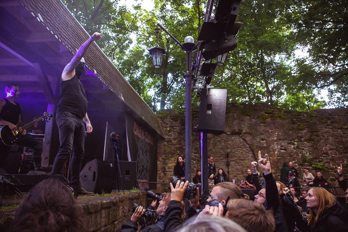 Nach der heutigen Pagan-Keule wird es jetzt wieder etwas ruhiger und geerdeter mit Äera. Die Band holt die Zuhörer mit ihrer Musik zurück auf den Boden der Tatsache und direkt in den dichten Wald, der rund um die Burg wuchert. Ähnlich wie Can Bardd bietet Äera eine Musik mit Tiefgang, nur finde ich, die Musik hat ein paar harte Black Metal-Kanten mehr im Klang. Das tut der Musik auch sehr gut und gibt ihr eine gute Abwechslung, auch innerhalb der überlangen Stücke. Ein guter Auftakt für das eher ruhigere Mittelfeld am Freitag.