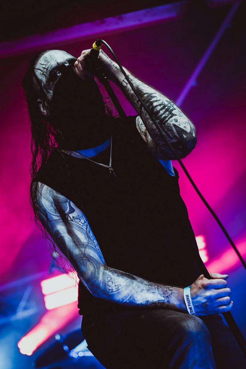 Danach wird es richtig, richtig finster mit Boötes Viod. Die Band habe ich im vorigen Jahr auf dem Wolfszeit Festival kennengelernt und dort habe ihren kalten, fast klinischen Black Metal schätzen gelernt. Letztes Jahr hat mir ihr Bühnen-Outfit, schwarz in schwarz vermummt, echt gefallen und dieses Jahr gab es ein kleines Upgrade in Form von weißen Aplikationen. Der Frontmann hingegen darf Knochen auf dem Kopf und um seinen Hals tragen. Modisch sind die Jungs von Boötes Void und da vergisst man gerne mal, welchen Effekt das Äußere einer Band auf den Gesamteindruck hat. Musikalisch waren sie wiedermal sehr gut undich empfehle sie gerne weiter.
