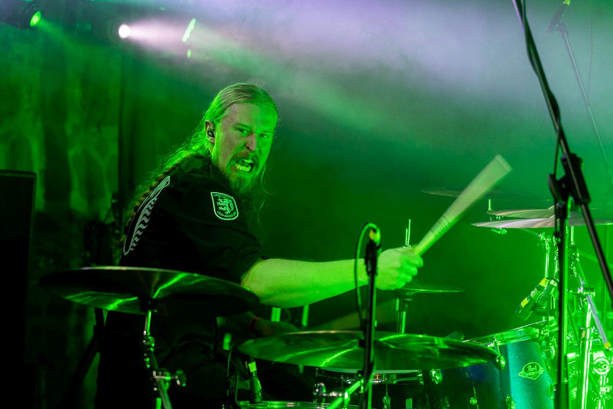 Ebenfalls aus dem hohen Norden, genauer aus Schweden, reisen die Vikinger von Manegarn zum Dark Troll Festival. Im Gepäck haben sie ihre neuste Scheibe, die für mich zu den besten Alben dieses Jahres gehört. Dementsprechend bin ich schon den ganzen Tag gespannt auf ihren Auftritt. Als Vorbereitung gibt es einen warmen Met und dann ab direkt vor die Bühne. Die Fans scharren schon ungeduldig mit den Hufen und eine Spannung liegt in der Luft, welche sich mit Erscheinen der Band schlagartig entladen hat. Der Auftritt beginnt mit ihrem neuen Song Stridsgalten und die Crowd explodiert vor Bewegung. Der Moshpit zündet und ich selbst kann es mir nicht nehmen lassen, einige Runden mit zu machen. Ich durfte bei der Band auch meine erste Runde Crowdsurfing auf diesem Festival betreiben, was zwar eine kurzes, aber schönes Erlebnis war. Ein gelungener Headliner für den zweiten Tag, aber nicht die letzte Band.