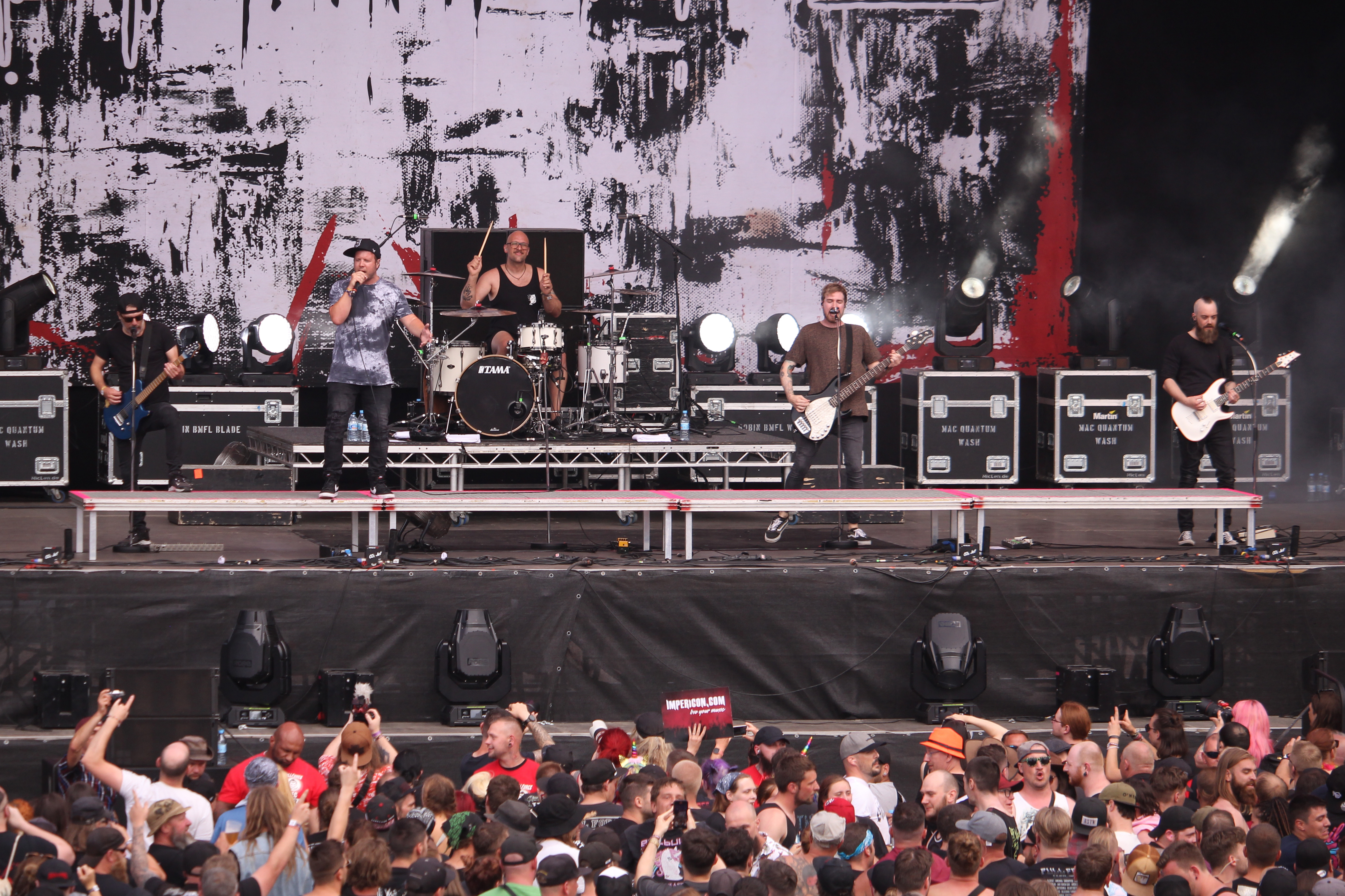 Zum Abschluss des Familienfestes in der Eisenstadt nahmen Heaven Shall Burn nochmal alles auseinander. Die Dauergäste auf dem Acker haben die letzten Jahre ebenfalls extrem gelitten und sich daher sichtlich gefreut, endlich wieder auf dem Full Force spielen zu können. Die Manege vor der Mainstage war übervoll, übermotiviert und übertrieben angefixt. Gefühlt gab es das ganze Konzert hindurch riesige Circle Pits und immer wieder Wall of Deaths, während die Jungs aus Thüringen Hit an Hit raus schallerten. Insgesamt wieder fetter Sound, geile Pyros und ein angemessener Auftritt. HSB und Full Force passen halt zusammen wie Arsch auf Eimer! Punkt.