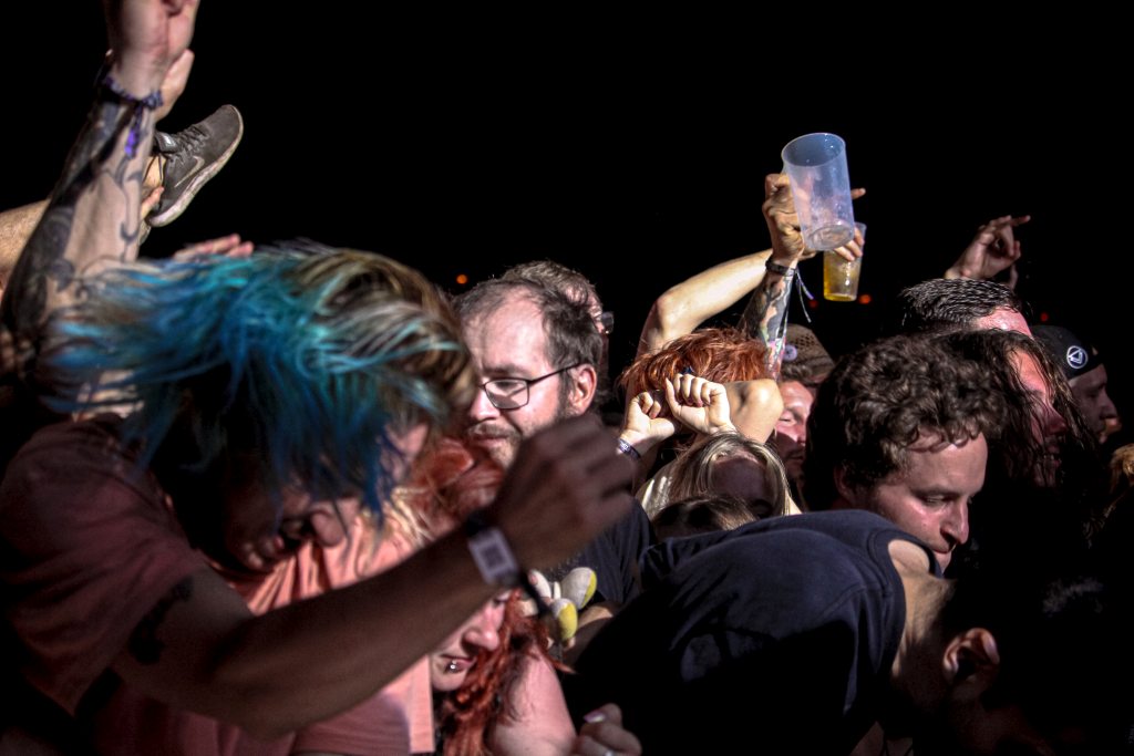Zum Glück konnte anschließend jegliche Irritation an der Mad Max wieder abgetanzt werden – bei Stick To Your Guns! Das Publikum nahm es dankend an und erschien zahlreich. Die Amis aus Orange County bauten mächtig Druck auf und ließen diesen rücksichtslos auf die feiernde Meute niederprasseln. Insgesamt unglaublich fetter Sound, heftiger Auftritt und geile Stimmung.