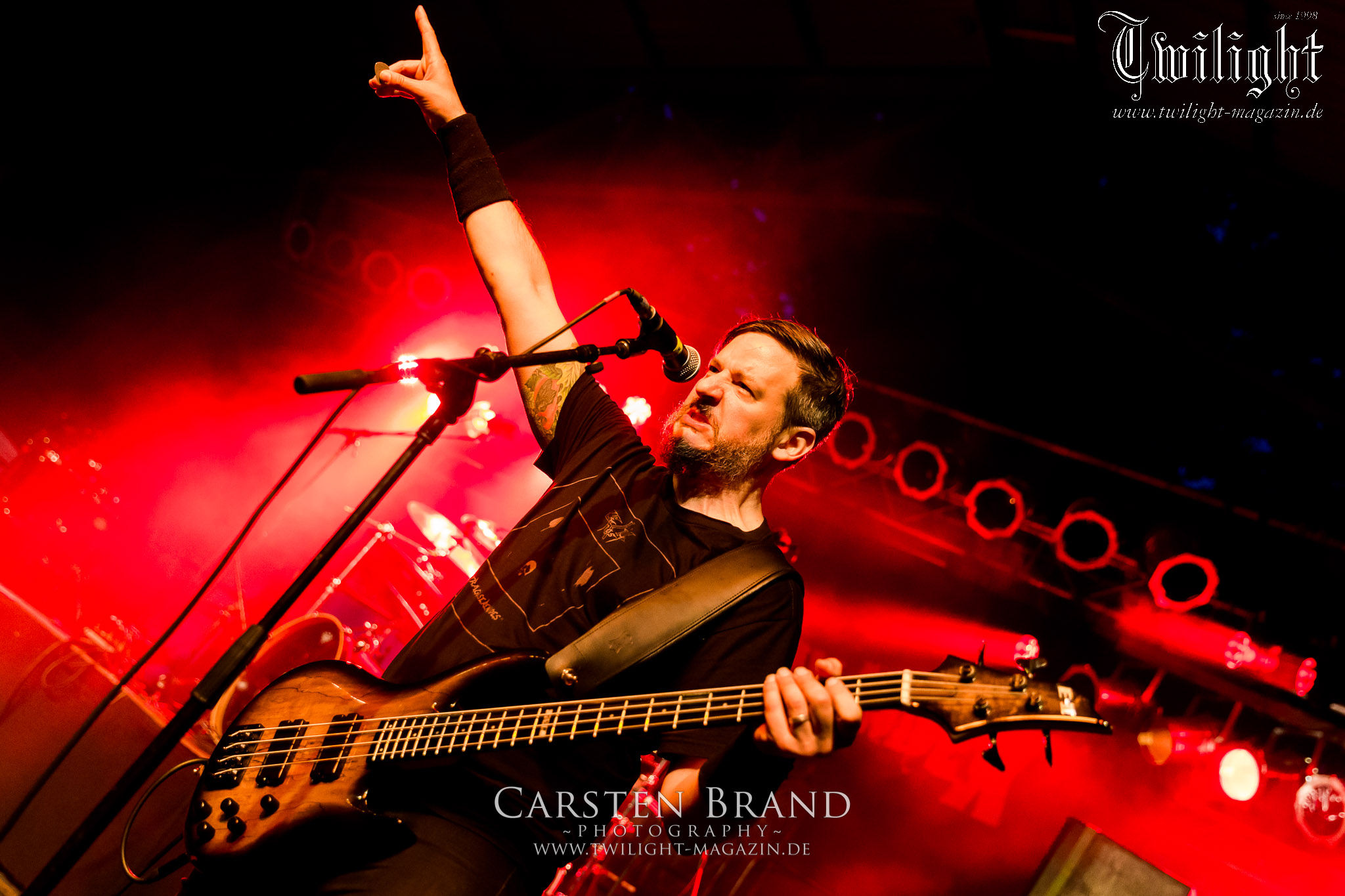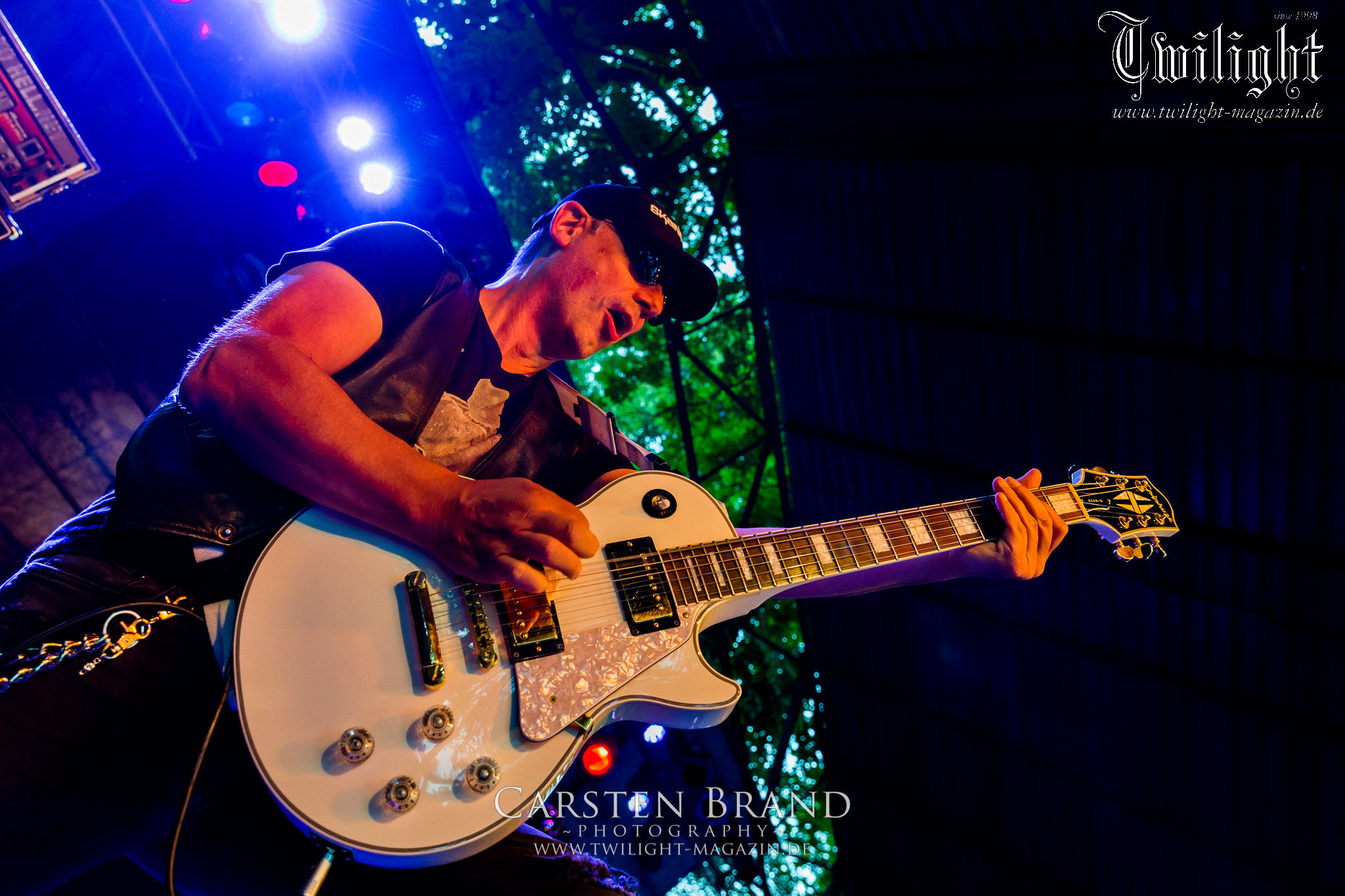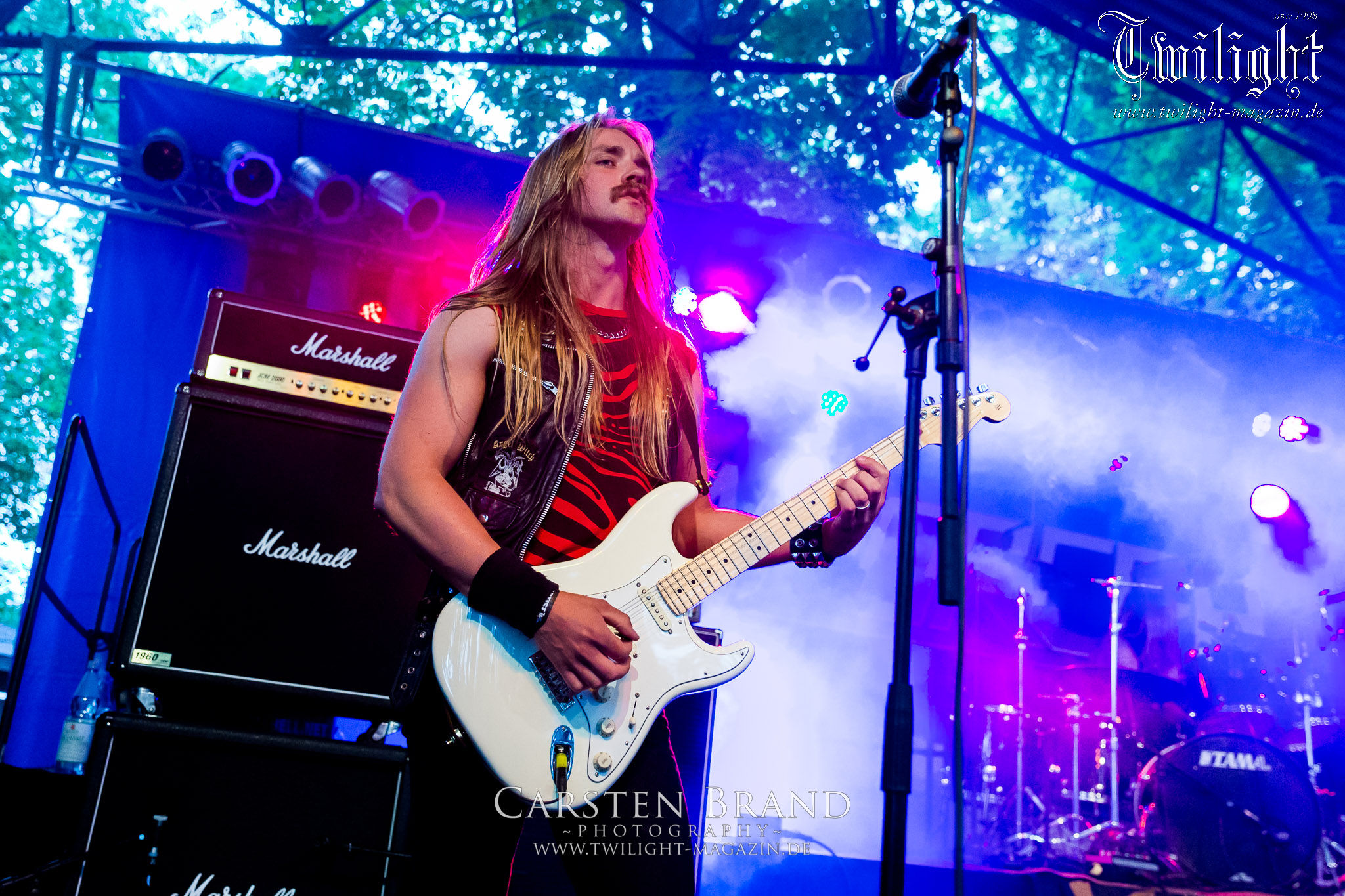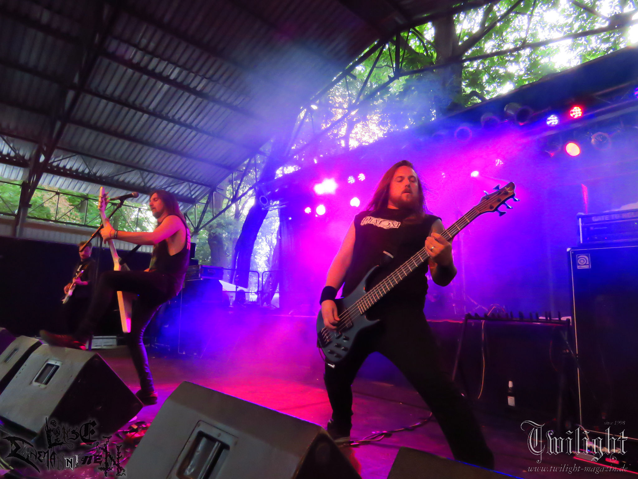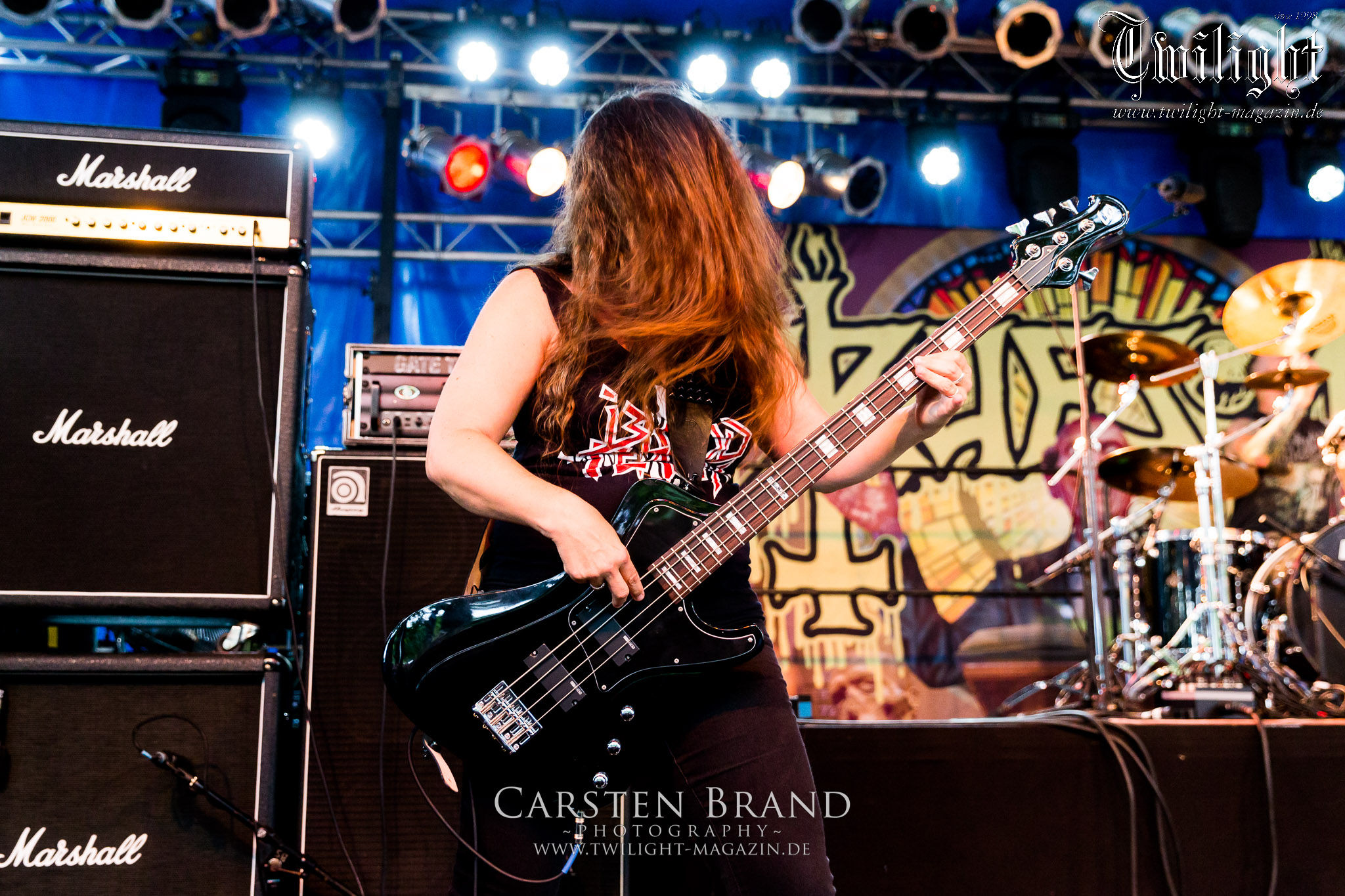 Zeit und Spielplan sind mittlerweile voran geschritten und schließlich wird auf der Hauptbühne mit Dark Sky Choir der Betrieb planmäßig wieder aufgenommen. Was an der einen Stelle für Klarheit sorgt, bedeutet im Zelt Ungewissheit und wirft immer wieder Fragen auf, da eigentlich nur klar ist, dass die Auftritte von SYLVANE und CRYPTS OF DESPAIR in die Timeline der Zeltbühne eingeschoben werden sollen, wobei Wandar wohl ihren Headliner-Status behalten sollen. Eine konkrete, aktualisierte Running Order wird aber weder online veröffentlicht und auch ein Aushang findet sich nirgends. Und das lässt verständlicherweise bei jenen, die sich vor allem auf die Gigs im Zelt gefreut hatten ordentlich Unmut und Ärger aufkommen. Ich nehme es sportlich und konzentriere mich auf die Hauptbühne. Ich bin nicht unbedingt glühender Verehrer von US-Heavy Metal aber DARK SKY CHOIR wissen mich live durchaus mit ihrer Frische, den technischen Finessen und einer ambitionierten Performance zu überzeugen. Die Mucke der Amis klingt modern, heavy und ist dabei teilweise sogar sehr straight und fast tanzbar. Ein leichter Thrash-Einschlag führt zu einer härtetechnischen Aufwertung, genauso wie das Organ von Brian Allen, der nicht nur klare Töne aus seiner Kehle holt, sondern dabei auch herrlich rauh klingen kann. Die Fähigkeiten der Instrumentalfraktion und das Zusammenspiel sind beeindruckend. Über Entertainer-Qualitäten verfügen alle Mitglieder. Eine Scheibe werde ich mir wohl nicht ins Regal stellen aber der Auftritt ist am Ende sehr viel mehr als nur eine Horizonterweiterung.