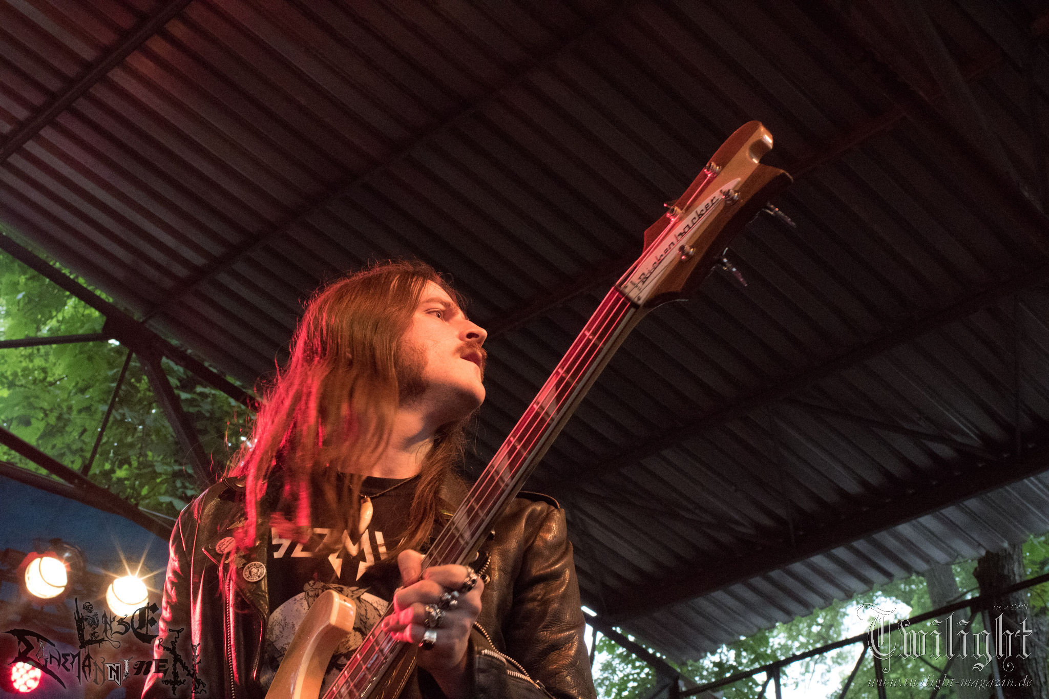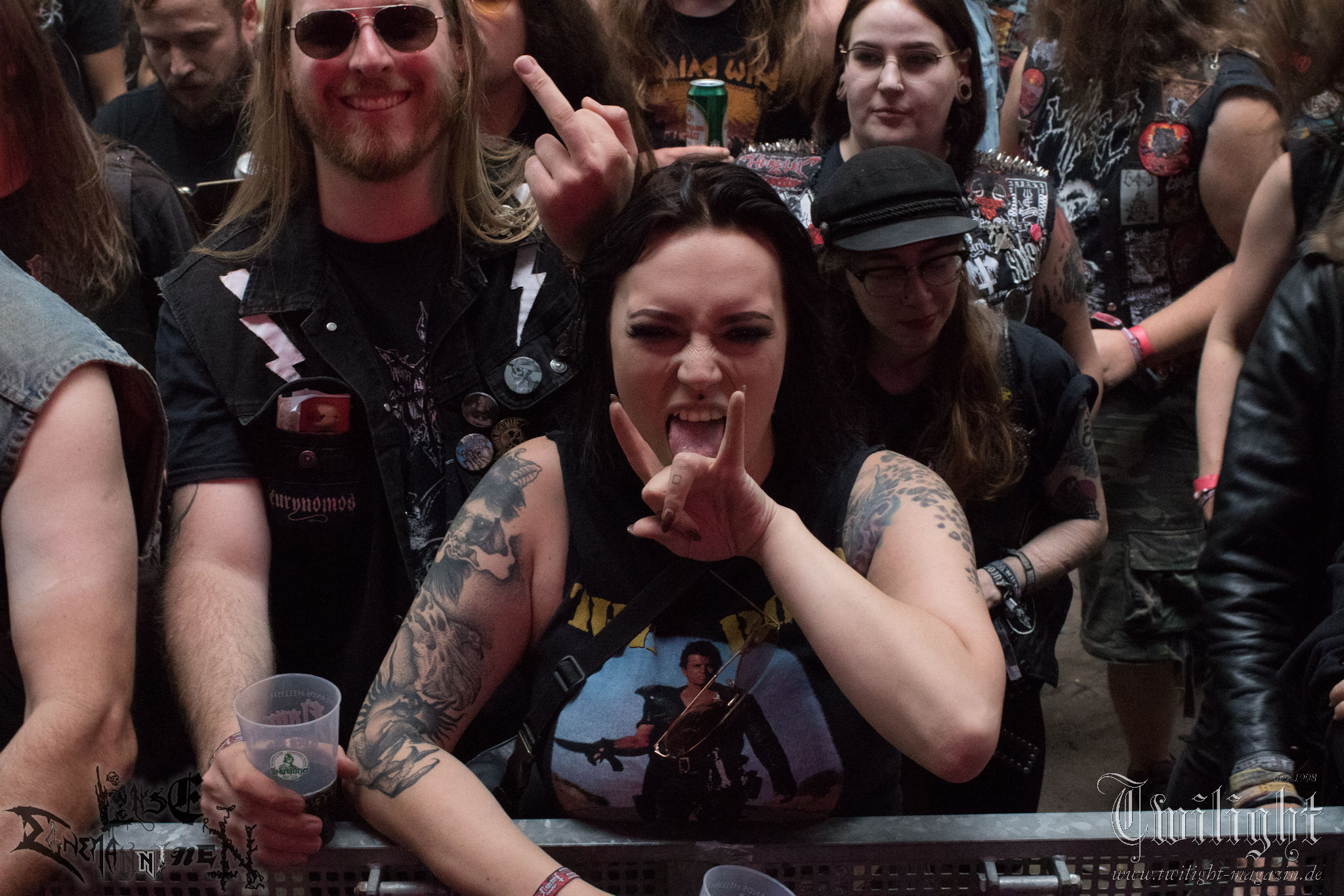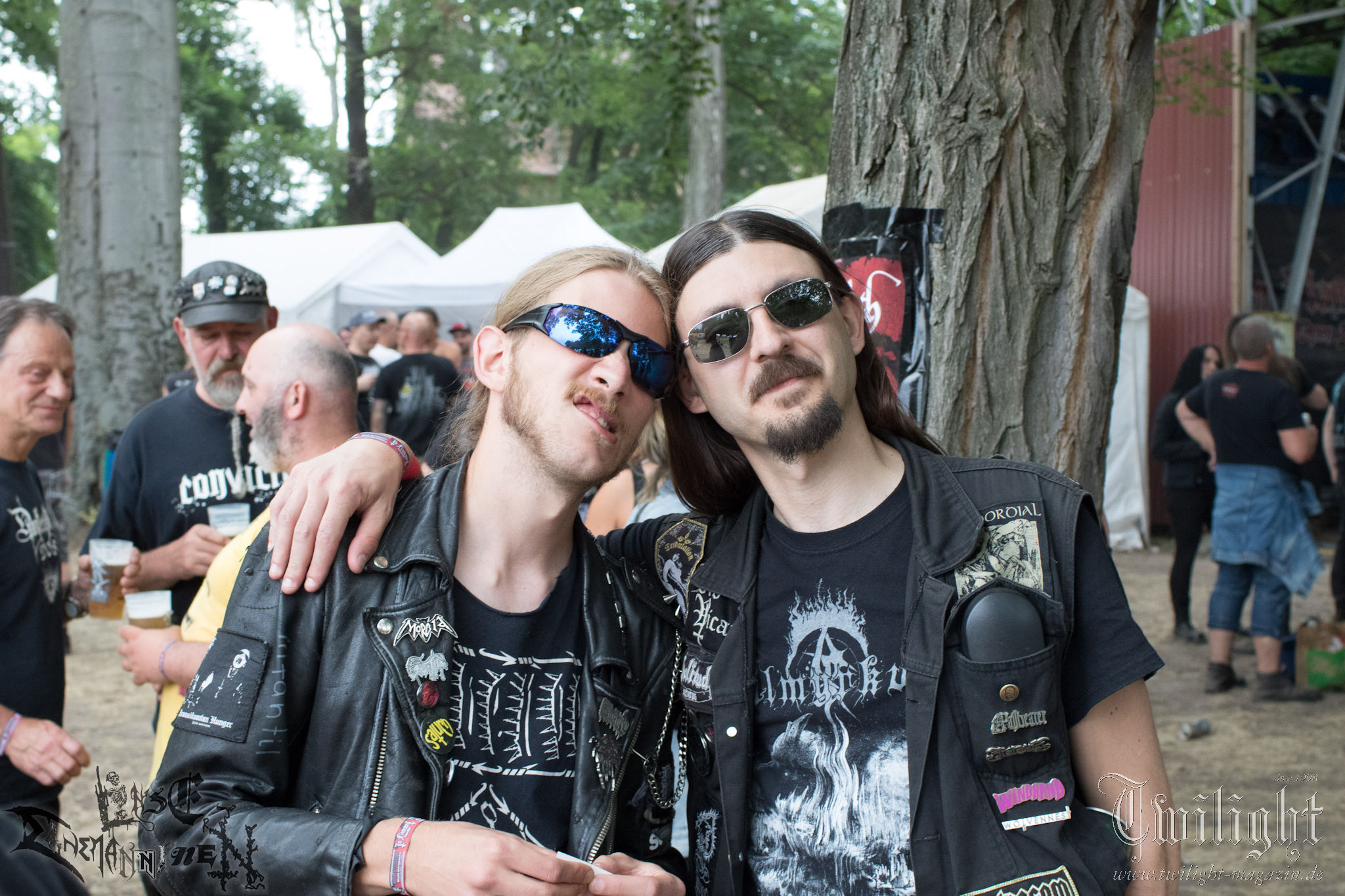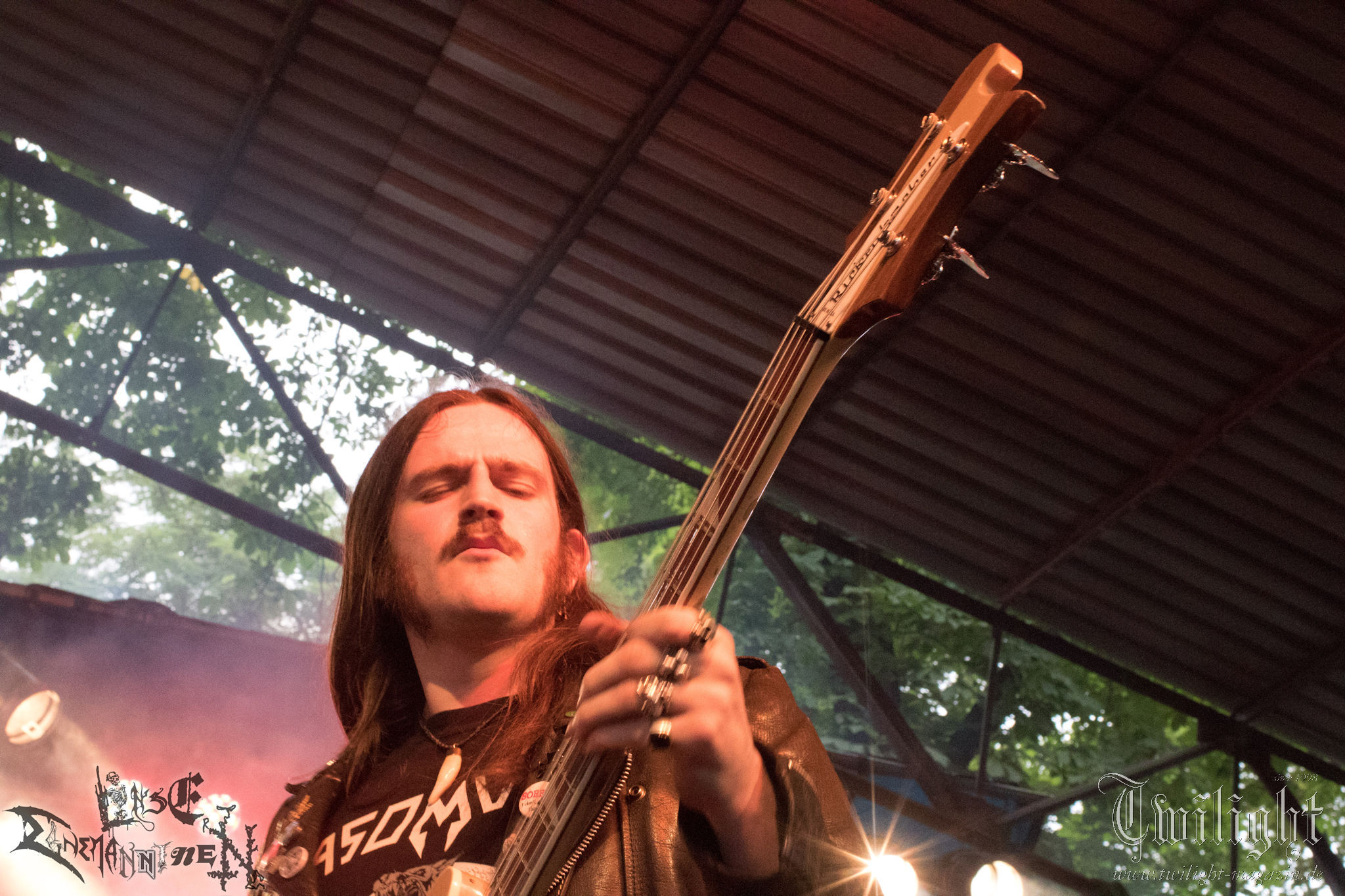 Die deutschen Death-Grind- und Underground-Urgesteine heißen die Besucher am frühen Abend mit einer ordentlichen Soundbreitseite der alten, technischen Todesmetall-Schule willkommen. Wie im letzten Jahr wird die Gartenparty auf der Hauptbühne und nicht im Zelt eröffnet, was nicht zuletzt am erneut gewachsenen Besucherinteresse liegt. WIEGEDOOD lassen danach wohl die meisten Black Metal - Herzen höher schlagen. Die Belgier, die mittlerweile bei Century Media unter gekommen sind liefern eine Lehrstunde in Sachen Nihilismus und musikalisch primitiver, schnörkelloser wie schlichter Raserei. Nicht erst seit dem Party.San Open Air 2017, bei dem ASOMVEL einen kongenialen Set zum Frühschoppen hinlegten, sind die Briten mehr als ein Geheimtipp. Nicht nur in optischer Hinsicht sind Asomvel das Trio, dass das Erbe von Lemmy & Co. mit Würde und Respekt angetreten hat, obwohl es die Band mittlerweile auch schon eine halbe Ewigkeit gibt. Das Trio ist Röck & Röll pur und weiß nicht nur mit dem Material das aktuellen Albums "World Shaker" in bester Motörhead-Manier zu überzeugen. Für mich DER Gig des Donnerstags und einer der herausragendsten des Festivals. Hoffentlich legen die Briten bald mal eine Tour nach.