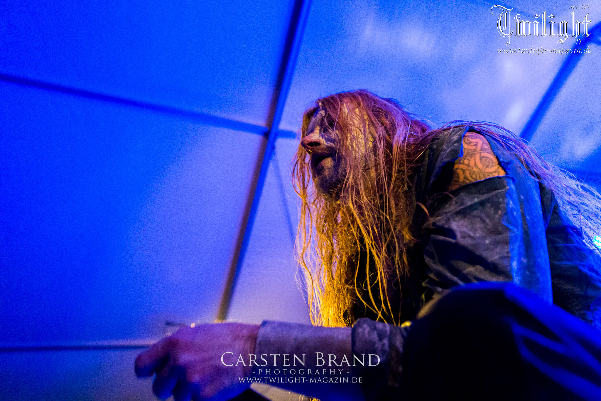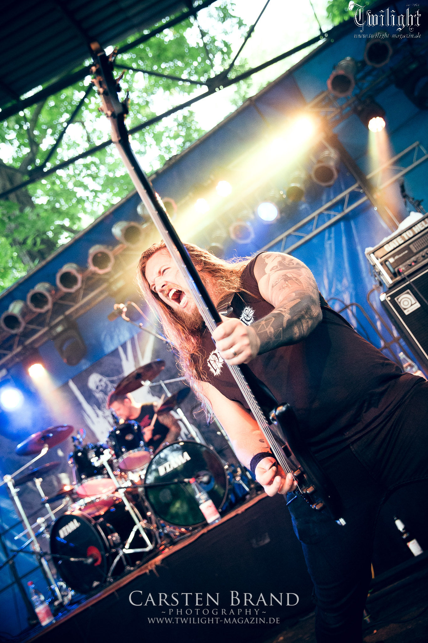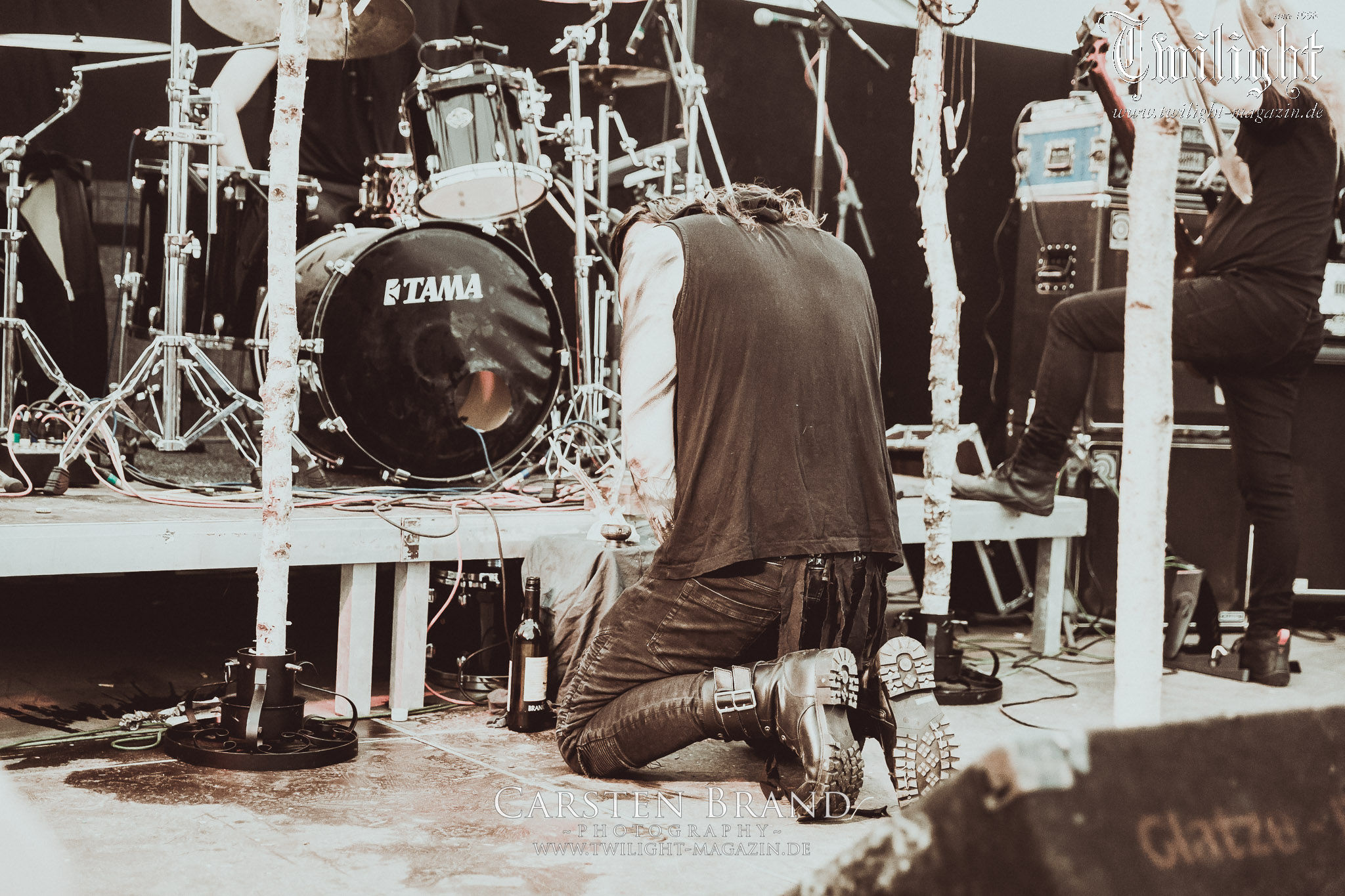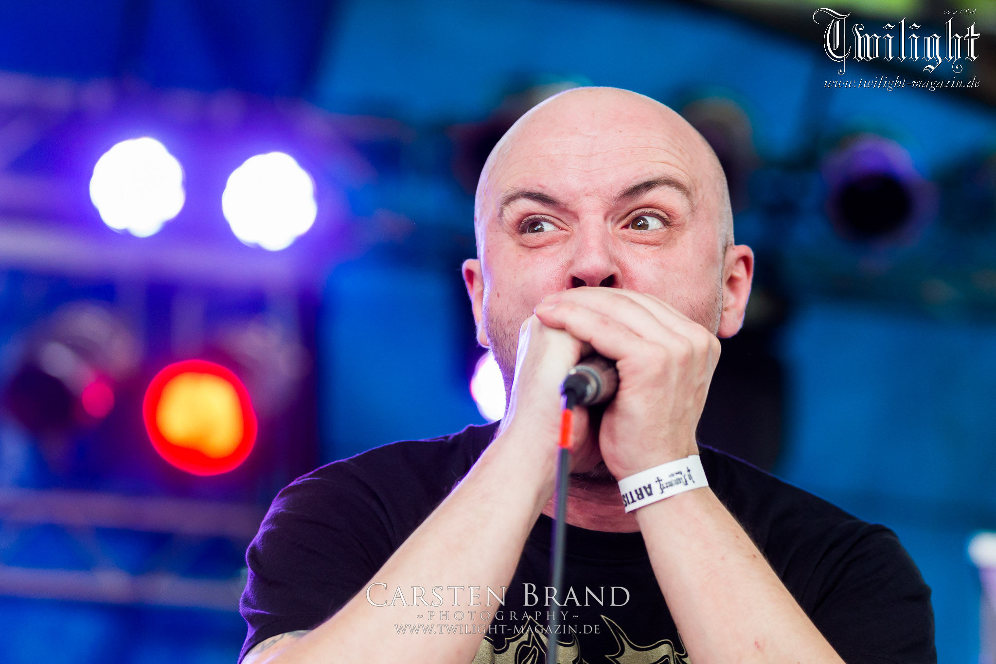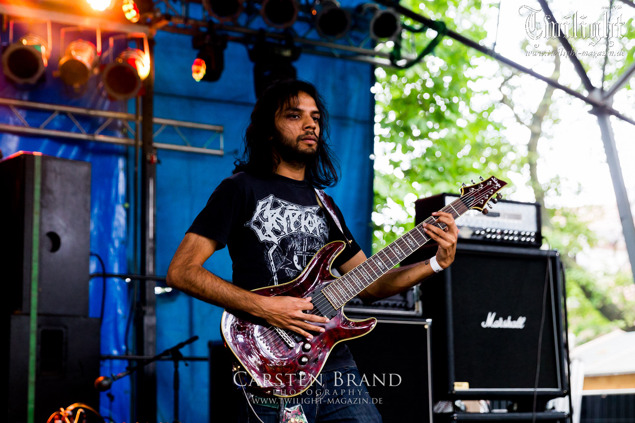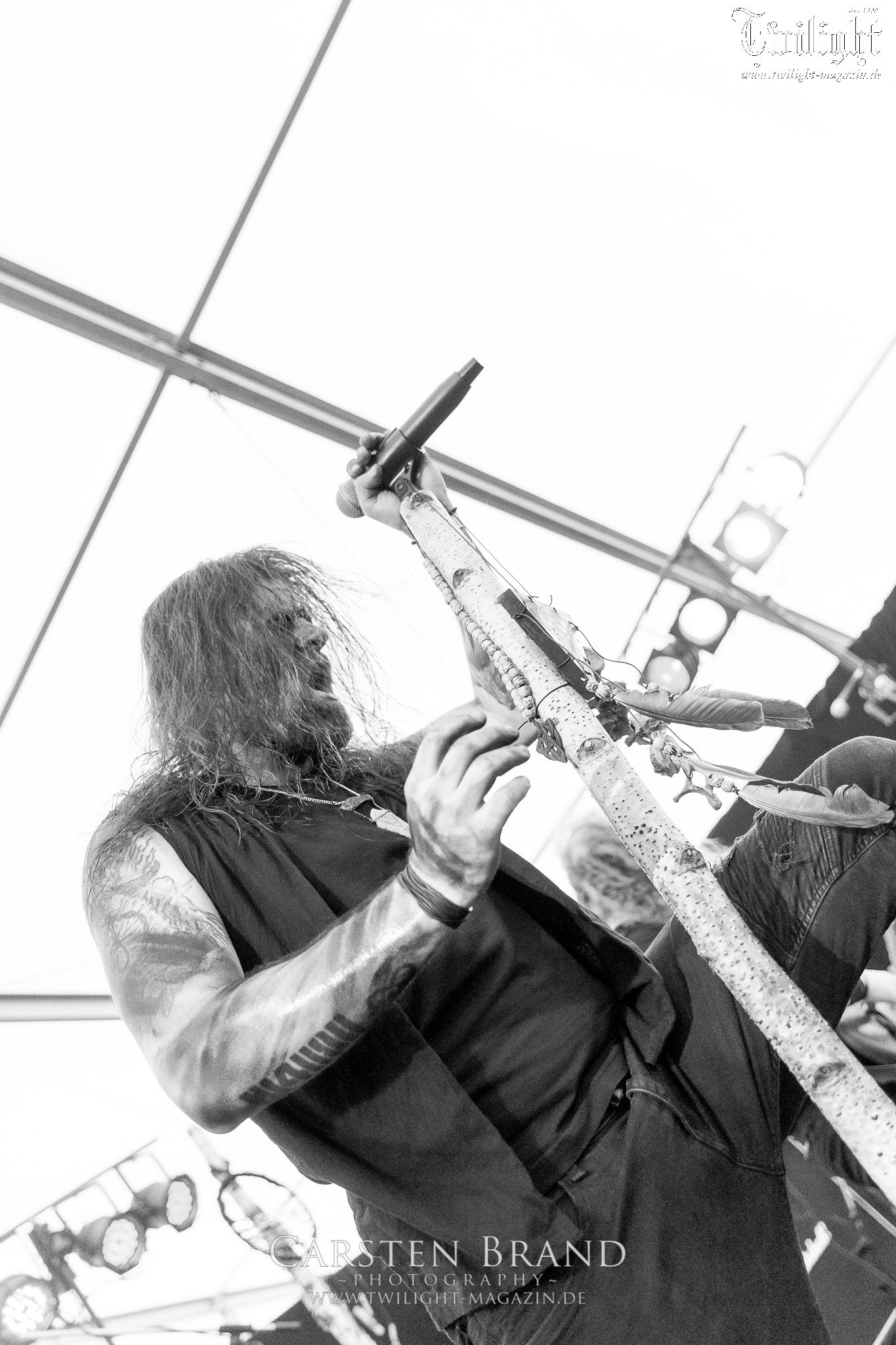 Nach Frühstück und Dusche steht bei mir noch ein Interview mit den Jungs von Atomwinter an, welches ihr später noch im Twilight zu lesen bekommt. Anschließend schaffe ich es gerade noch rechtzeitig vor die Hauptbühne, wo GUTSLIT mit knochentrockener Brutalo-Keule das Festival-Finale einleuten. Die morgendlichen Sportmuffel kreiseln ihre Meter ausgelassen im Circle-Pit runter und gehen somit dem klassischen metallischen Frühsport nach. Abgesehen davon, dass mich die technisch versierten Gutslit rein musikalisch zwar stilistisch nicht umhauen, nehme ich aber die Erkenntnis mit, das ambitionierter Death-Grind selbst in Indien gespielt wird.