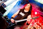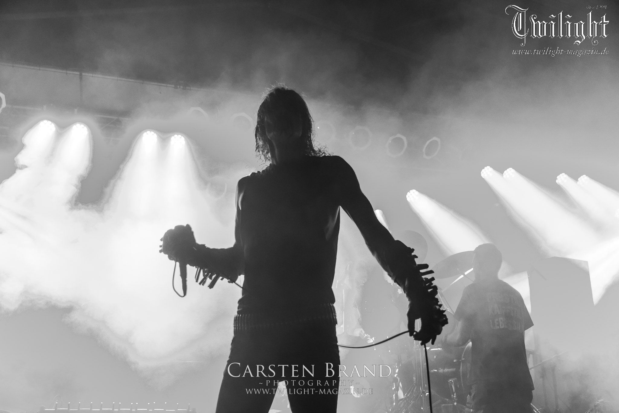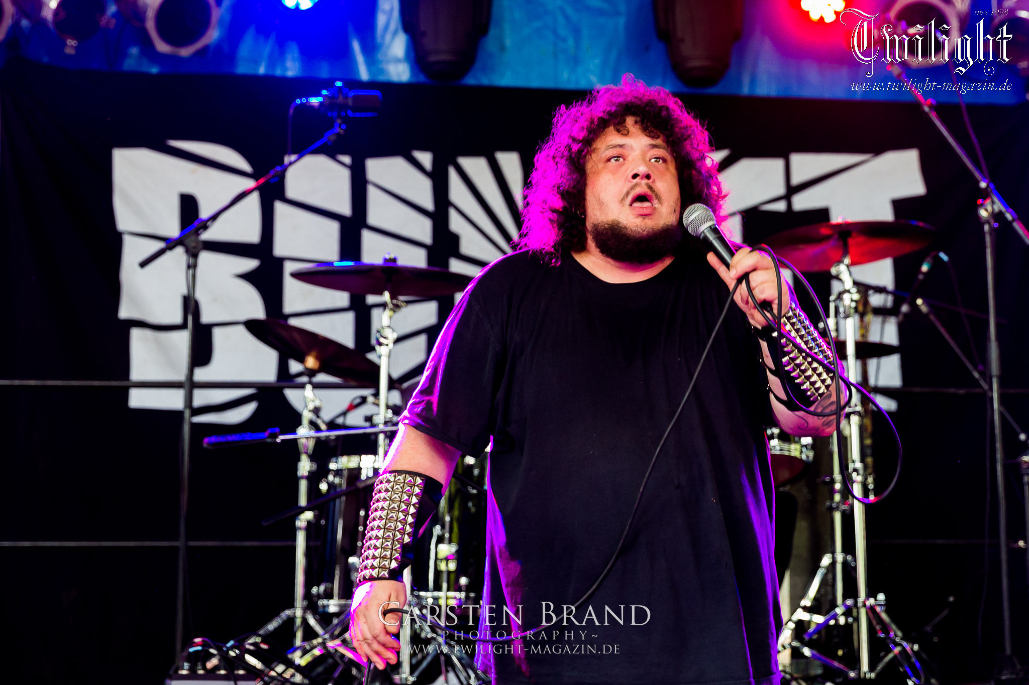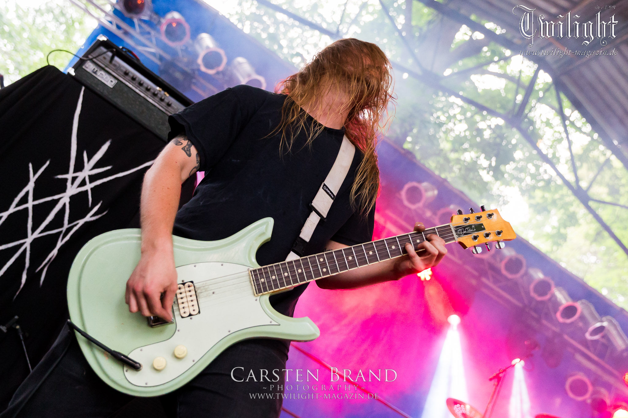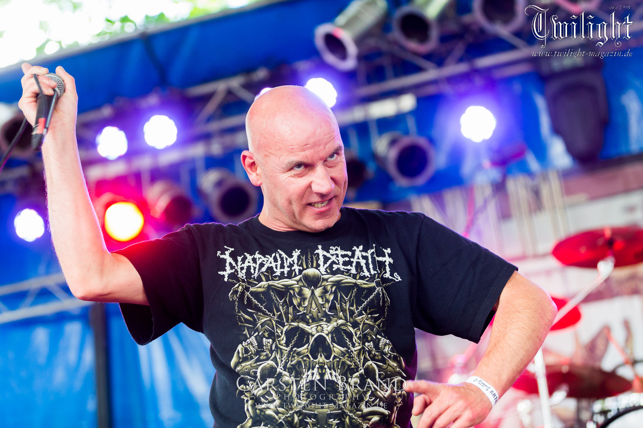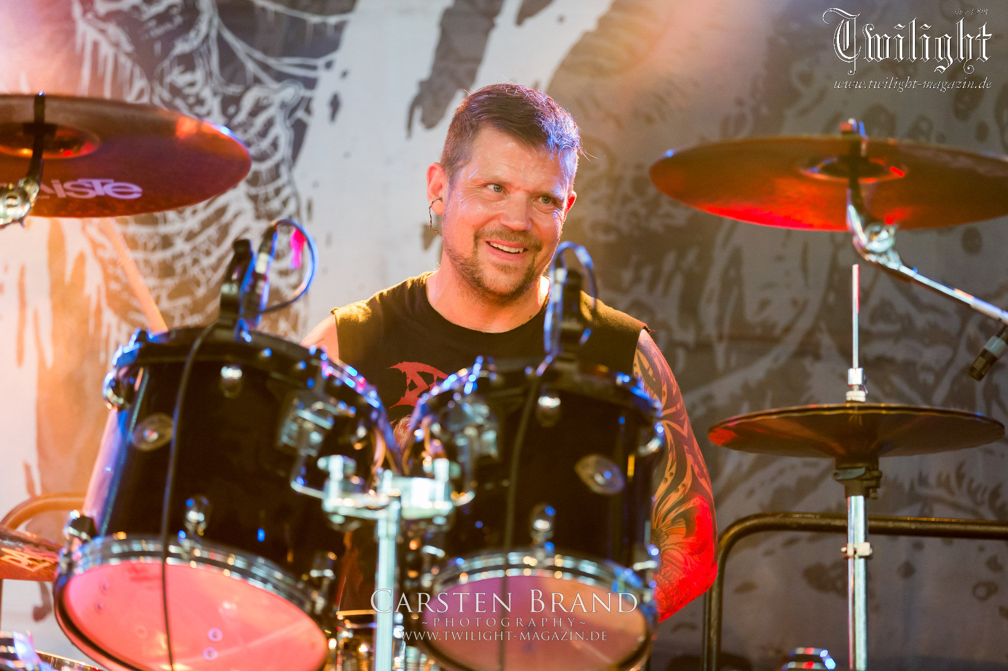 Nach Frühstück und Dusche steht bei mir noch ein Interview mit den Jungs von Atomwinter an, welches ihr später noch im Twilight zu lesen bekommt. Anschließend schaffe ich es gerade noch rechtzeitig vor die Hauptbühne, wo GUTSLIT mit knochentrockener Brutalo-Keule das Festival-Finale einleuten. Die morgendlichen Sportmuffel kreiseln ihre Meter ausgelassen im Circle-Pit runter und gehen somit dem klassischen metallischen Frühsport nach. Abgesehen davon, dass mich die technisch versierten Gutslit rein musikalisch zwar stilistisch nicht umhauen, nehme ich aber die Erkenntnis mit, das ambitionierter Death-Grind selbst in Indien gespielt wird.