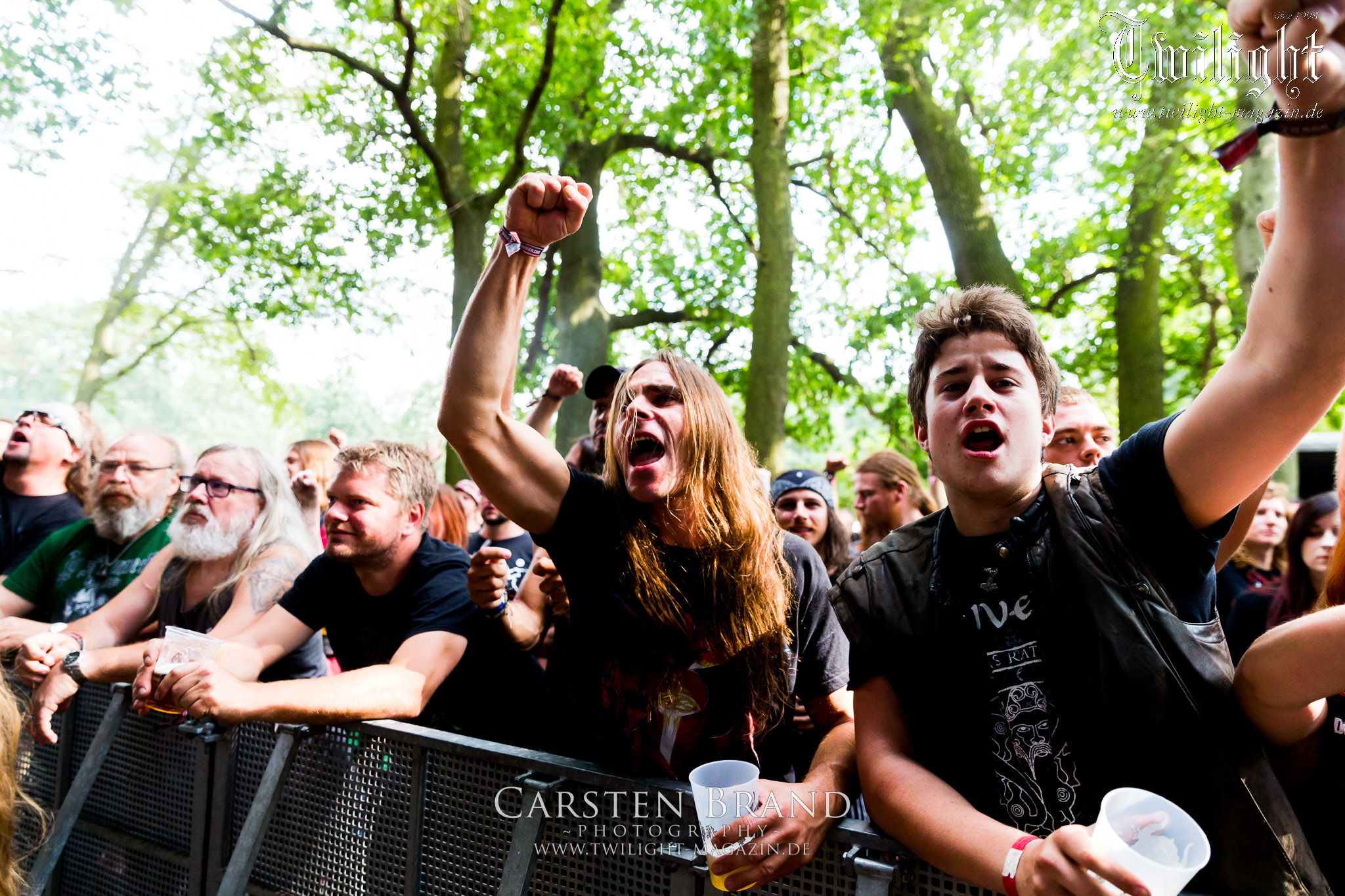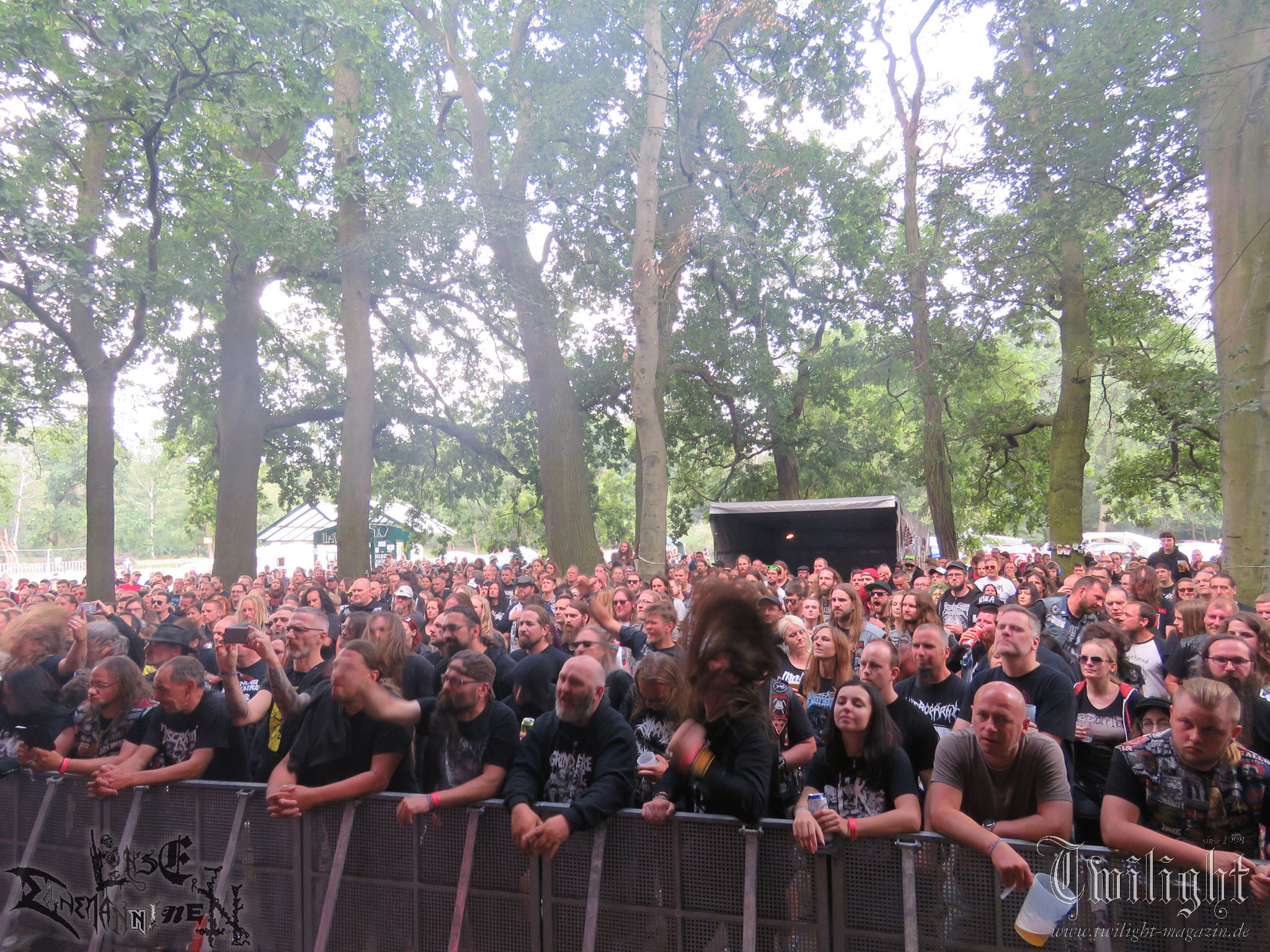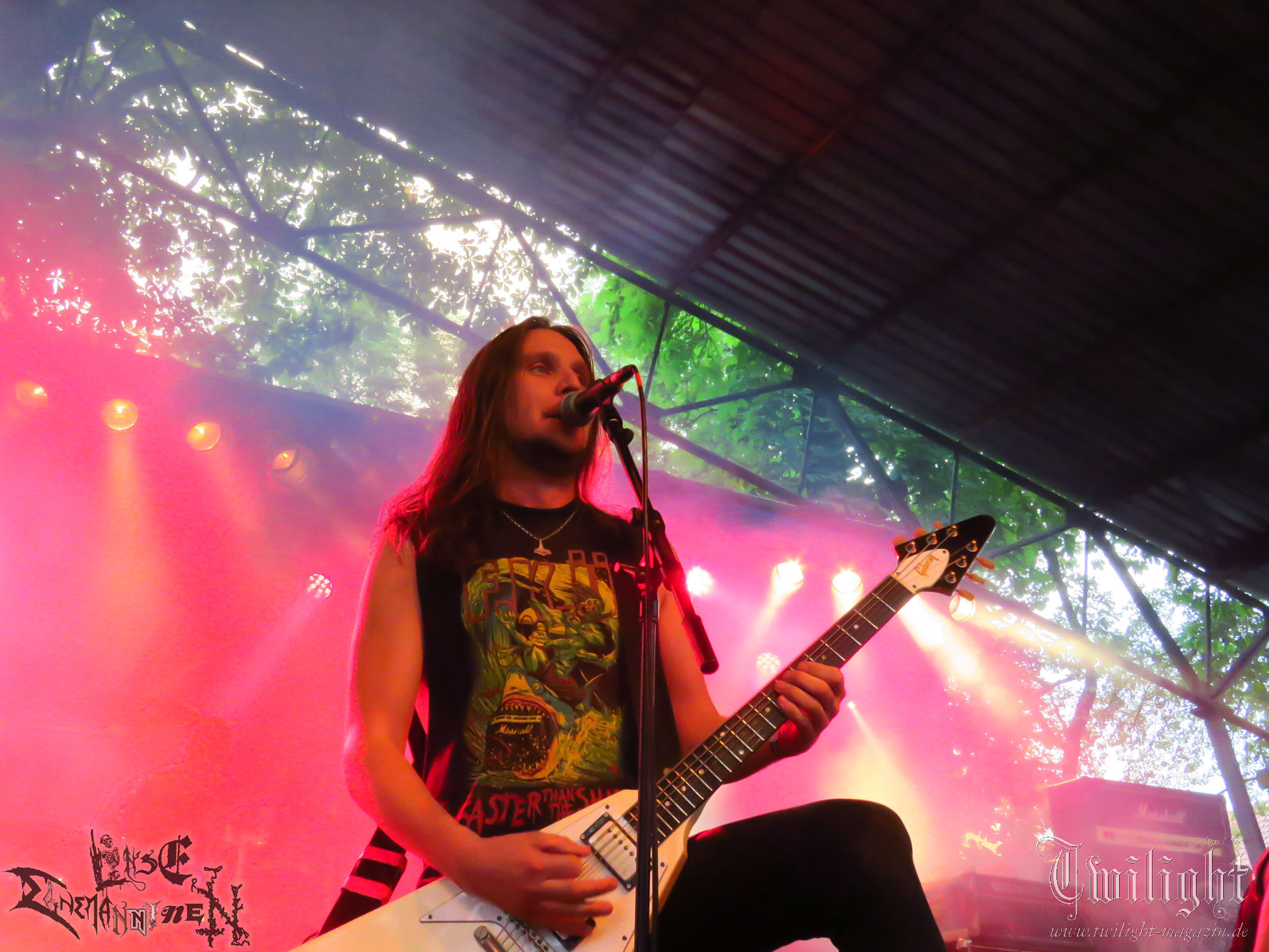 Mit UNLEASHED folgt der letzte Vertreter des schwedischen Hauptbühnen-Kartells an diesem Abend. Johnny Hedlund und Co. ziehen zwar eine beeindruckende, eines Headliners würdige Schaar unter die Bäume vor der Bühne. Allerdings gibt es anlässlich des 30jährigen Bühnenjubileums eine Standard-Setlist, wo eine spezielle Klassiker-Show Unleashed an diesem Abend sicher besser zu Gesicht gestanden hätte. Wirklich schlecht ist das natürlich nicht, dennoch ist das Dargebotene auch für Unleashed-Verhältnisse eher semi statt mega und insofern enttäuschend.