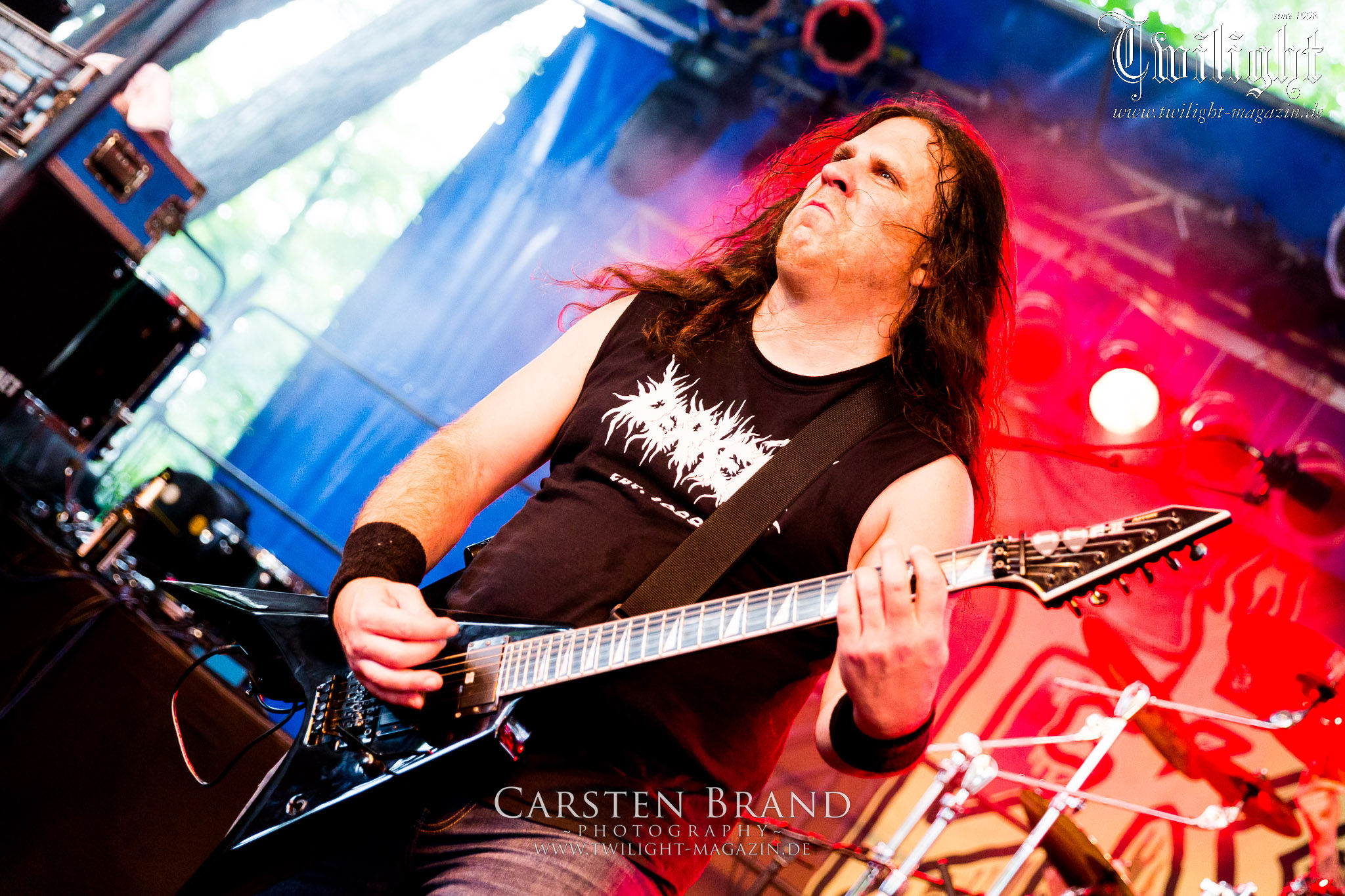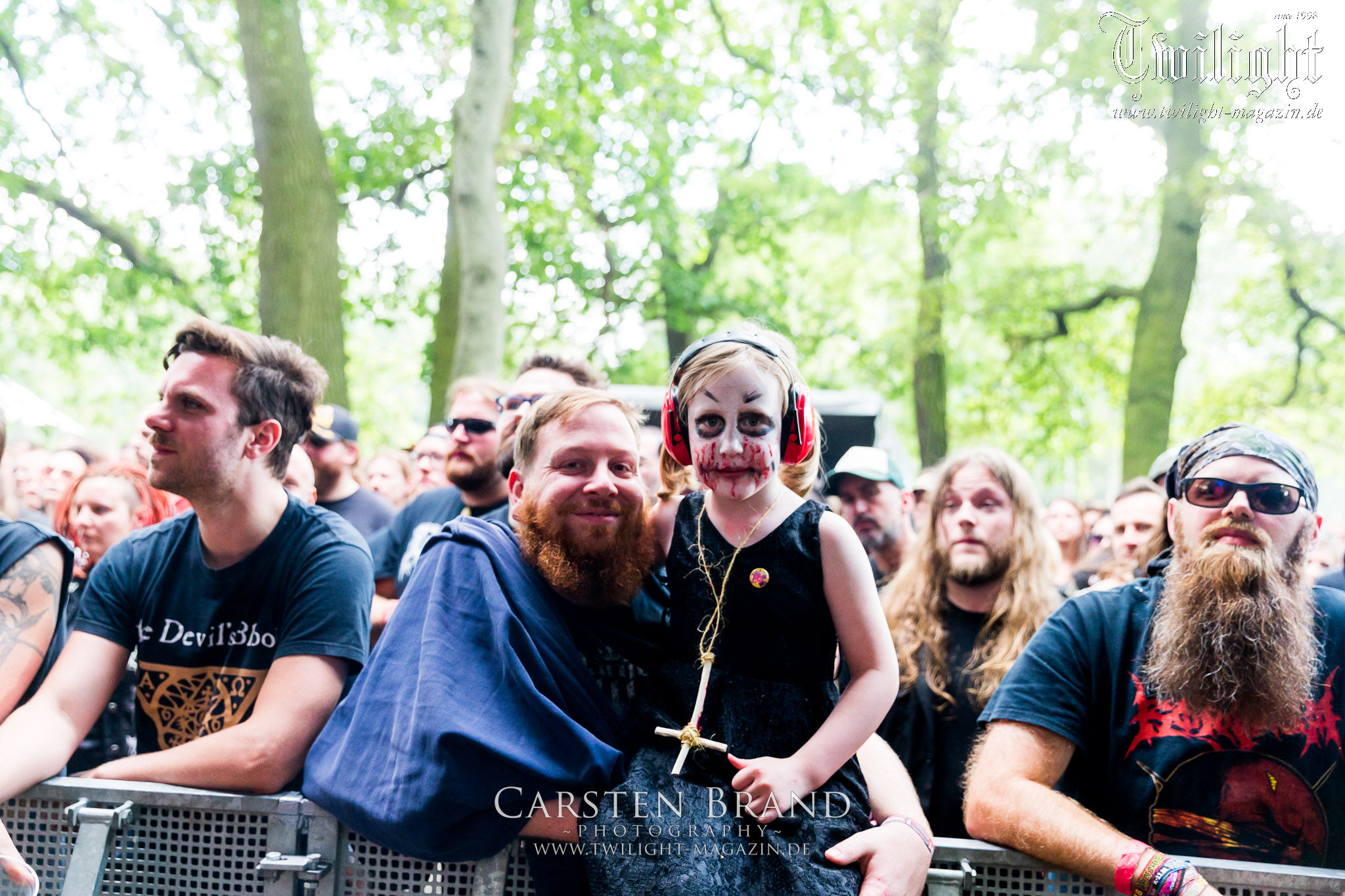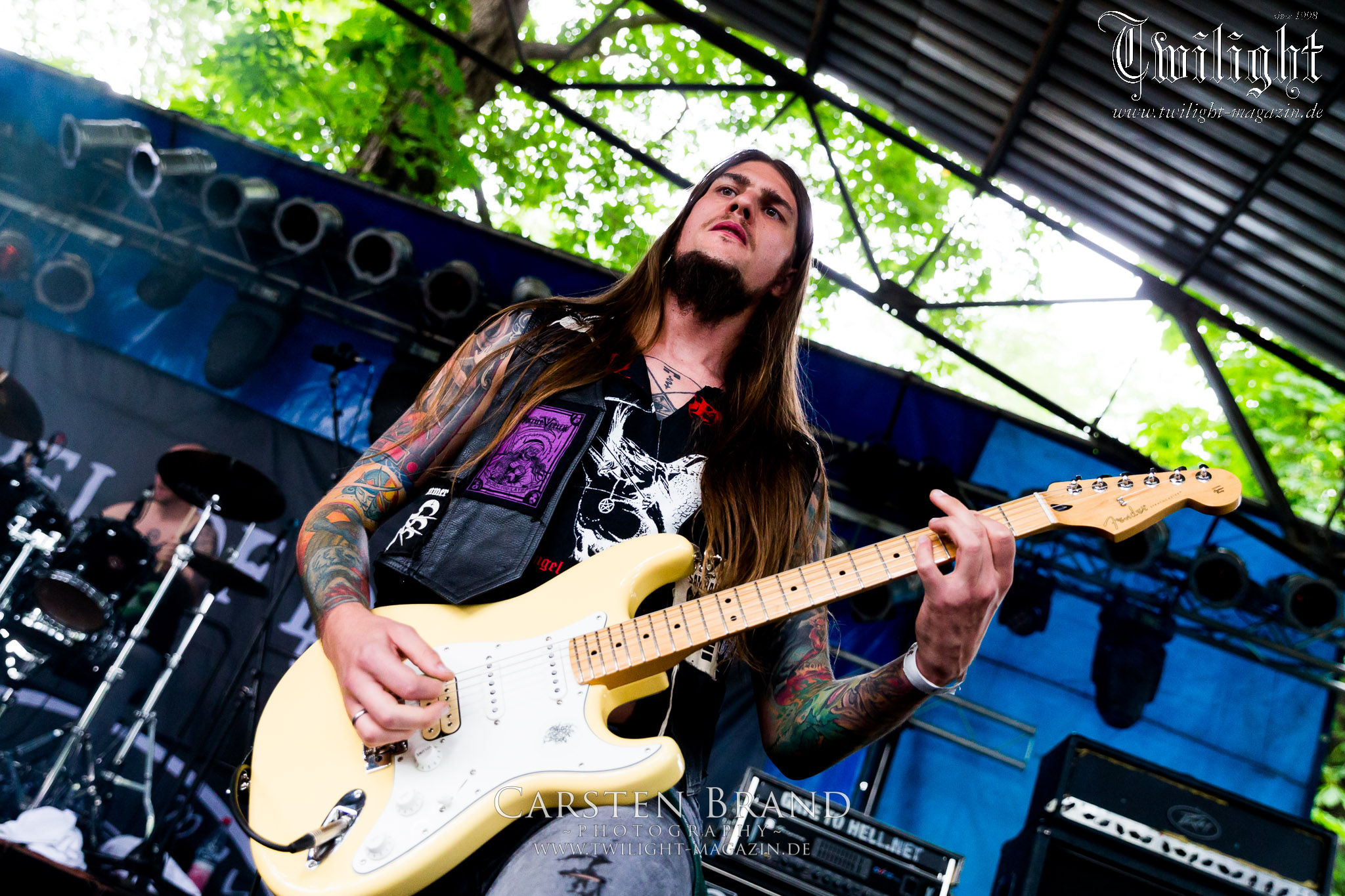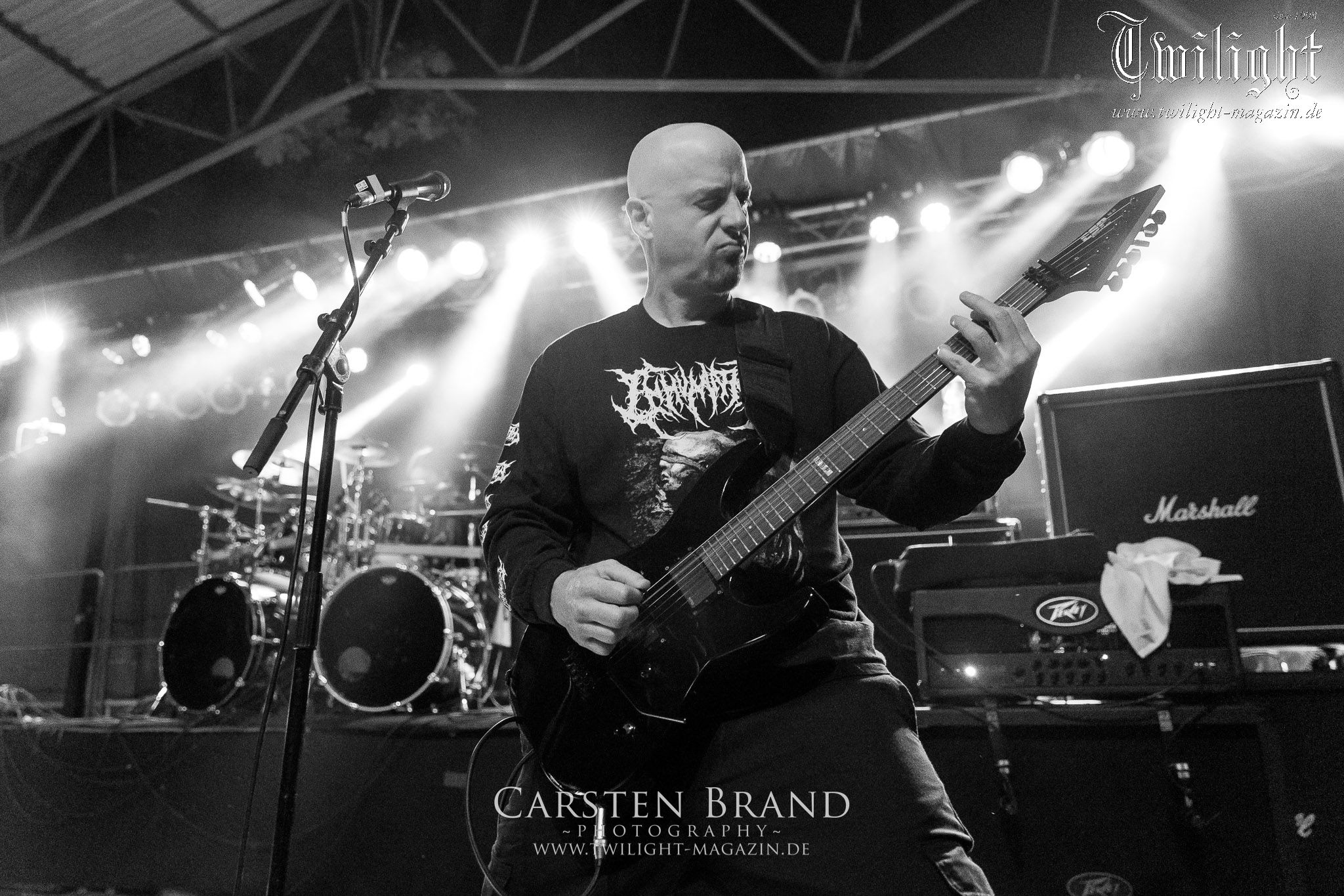CONAN fallen bei mir anschließend durch. Das zwar simple und auf das Wesentlichste reduzierte Gebräu aus Stoner, Doom und Drone ist zwar soundmäßig fett aber mir auf Dauer einfach zu eintönig und zu langweilig. Das sieht das Publikum vor der Bühne erwartungsgemäß anders und feiert die Briten ordentlich ab. Es ist beängstigend , wie lebendig nahe GRUESOME ihren musikalischen Vorbildern Death kommen und dabei mit eigenen Songs das Vermächtnis von Chuck Schuldiner weiter tragen, die des Death Metal - Visionärs würdig gewesen wären. Gruesome sind weit weg von einer Kopie oder gar einem Abklatsch und stehen für Todesmetall der alten Schule, der dreckig, ranzig, technisch versiert und bis zur letzten Note durchkomponiert ist und vor der Hauptbühne voll auf die Zwölf geht. Was Gruesome hier zelebrieren ist wahrlich ein mitreißendes Hohelied an den amerikanischen Death Metal der alten Schule.