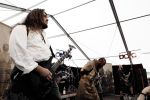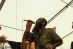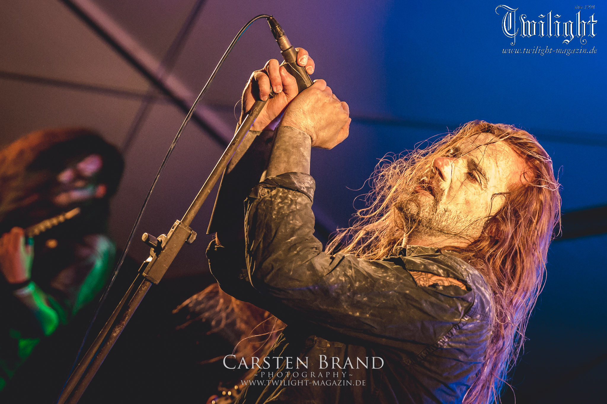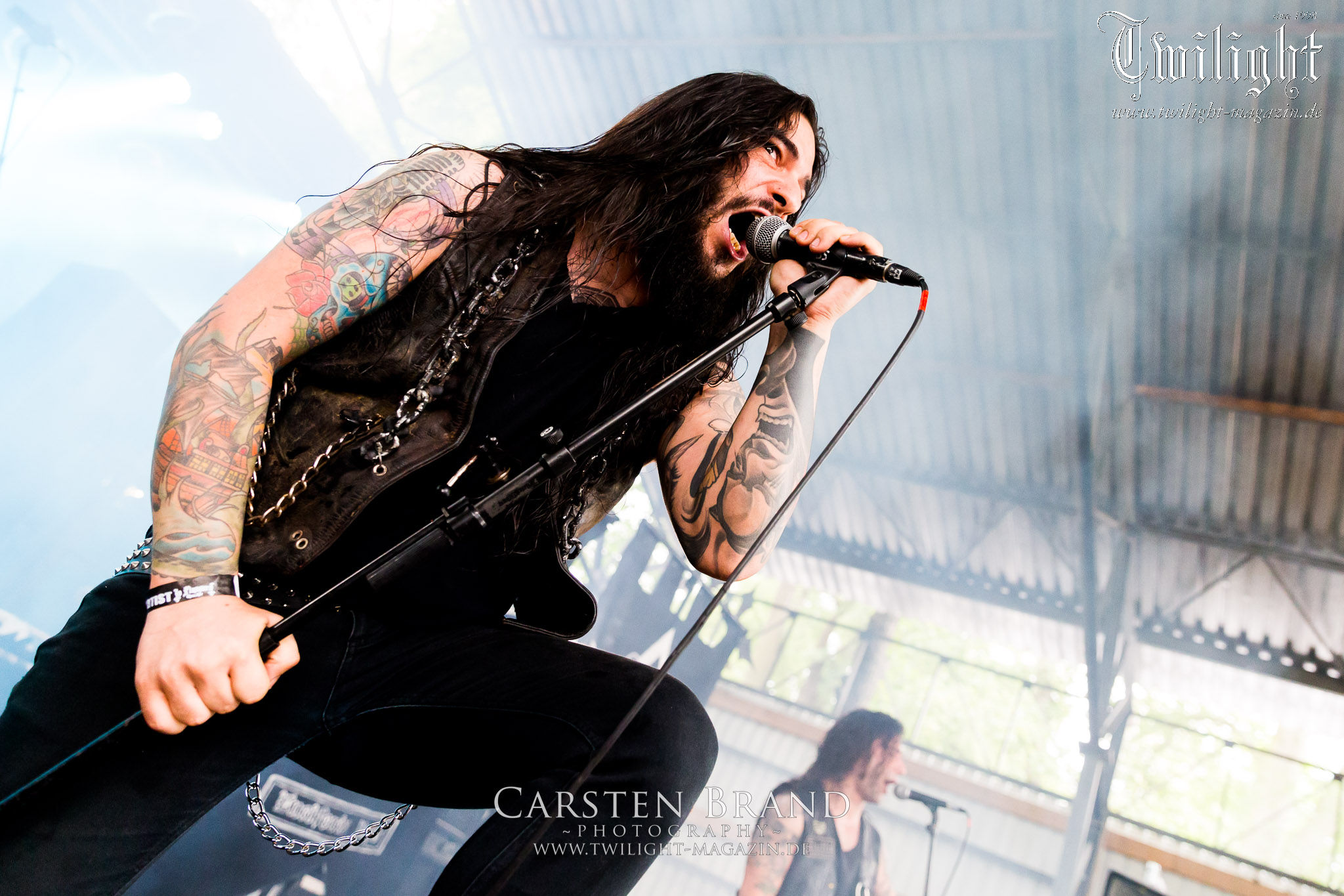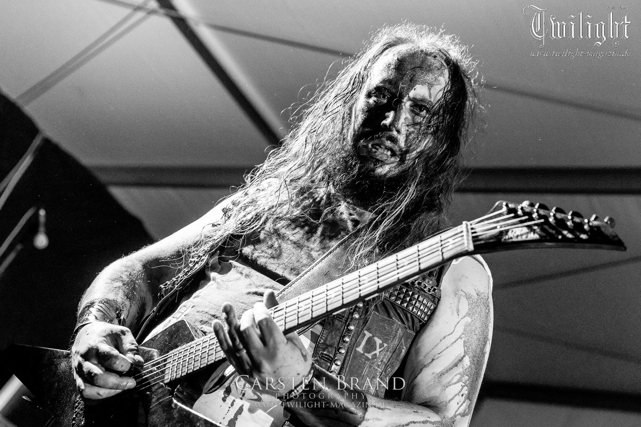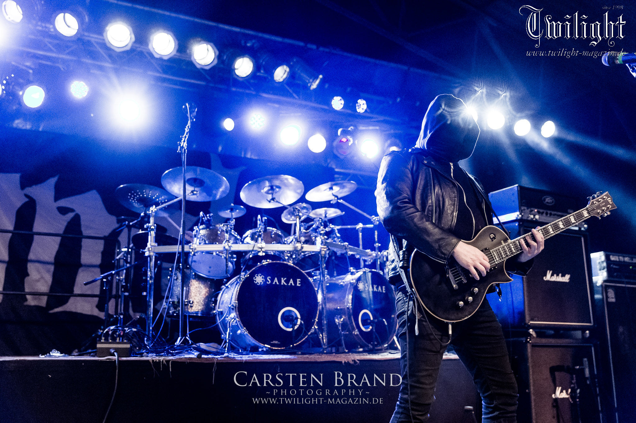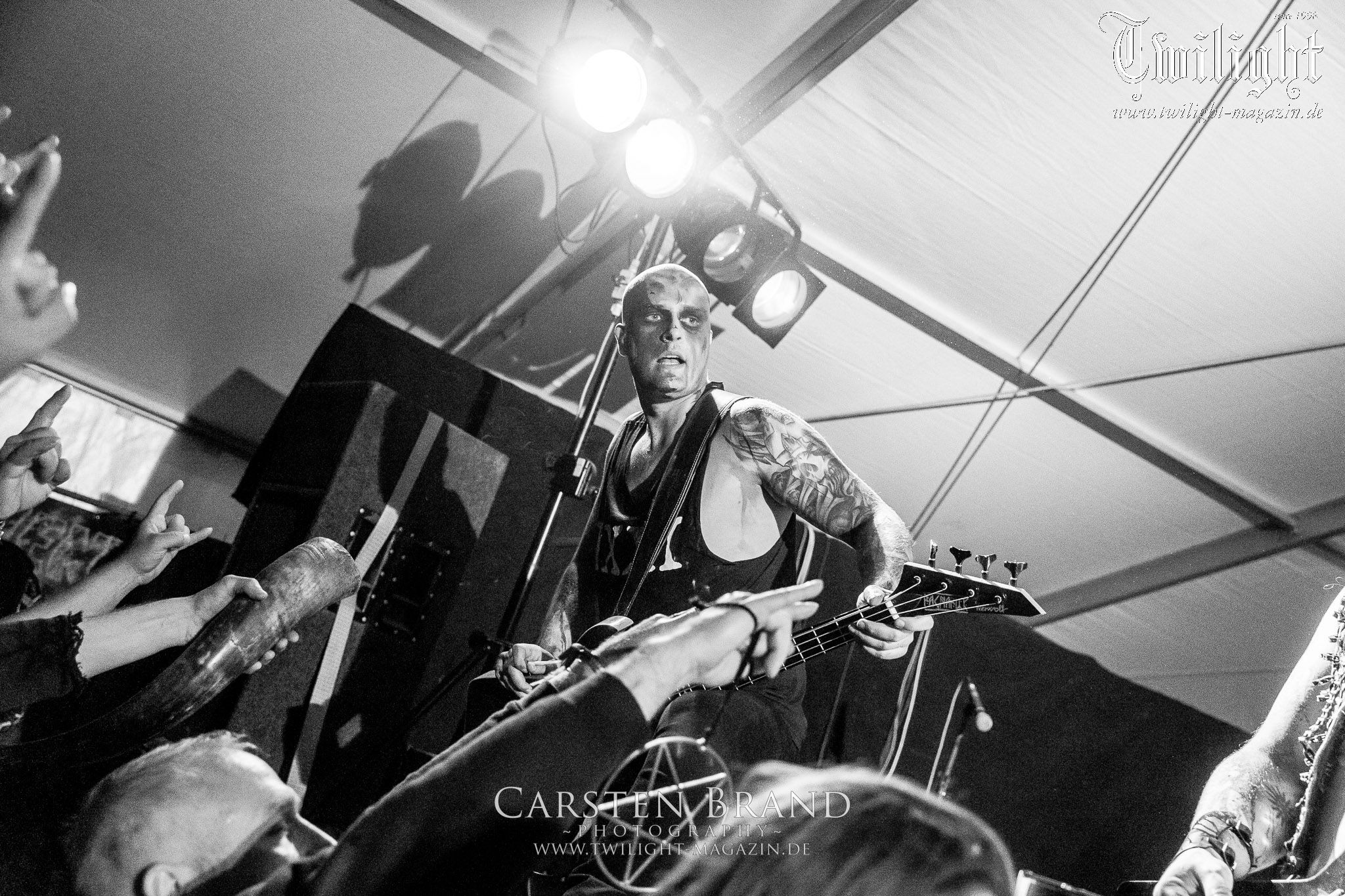 In aller Munde sind zur Zeit 1914 aus der Ukraine, deren Lyric-Video zum Epos "A Hundred Day Offensive" aus dem jüngst veröffentlichten Album "Blind Leading The Blind" in der Szene schon fast viral ging. Dementsprechend ist das Zelt proppenvoll, als die Band ihren Set startet. Während sich die Instrumental-Fraktion uniformiert im Hintergrund hält und ein unbarmherziges musikalisches Trommelfeuer über den Köpfen des Publikums niedergeht, scheint der Sänger direkt aus einem schlammigen Schützengraben der unzähligen Materialschlachten des WK l auferstanden zu sein. Der Mann durchlebt und durchleidet die Geschichten, die er besingt, in beängstigender Art und Weise. Und abgesehen davon, dass ich den Gesang aufgrund der eingeschränkten Variabilität auf dem Album für mich als Schwachpunkt ausgemacht hatte, wächst der Herr, der bei 1914 die Rolle des Oberleutnants Ditmar Kumarberg einnimmt, nicht nur stimmlich über sich hinaus. Konzeptionell ist das, was 1914 auf die Beine stellen zwar nicht sonderlich innovativ aber die Art und Weise, wie sie das vermeintlich abgedroschene Thema Krieg musikalisch umsetzen, ist fesselnd und packend. Noch dazu, weil man hier die Anhänger von Asphyx, God Dethroned, Bolt Thrower und Deinonychus gleichermaßen bedient. Denn genau das ist die Schnittmenge, in der sich 1914 stilistisch bewegen. Nach diesem beeindruckenden Auftritt bin ich gespannt, welche Entwicklung diese Band nehmen wird.