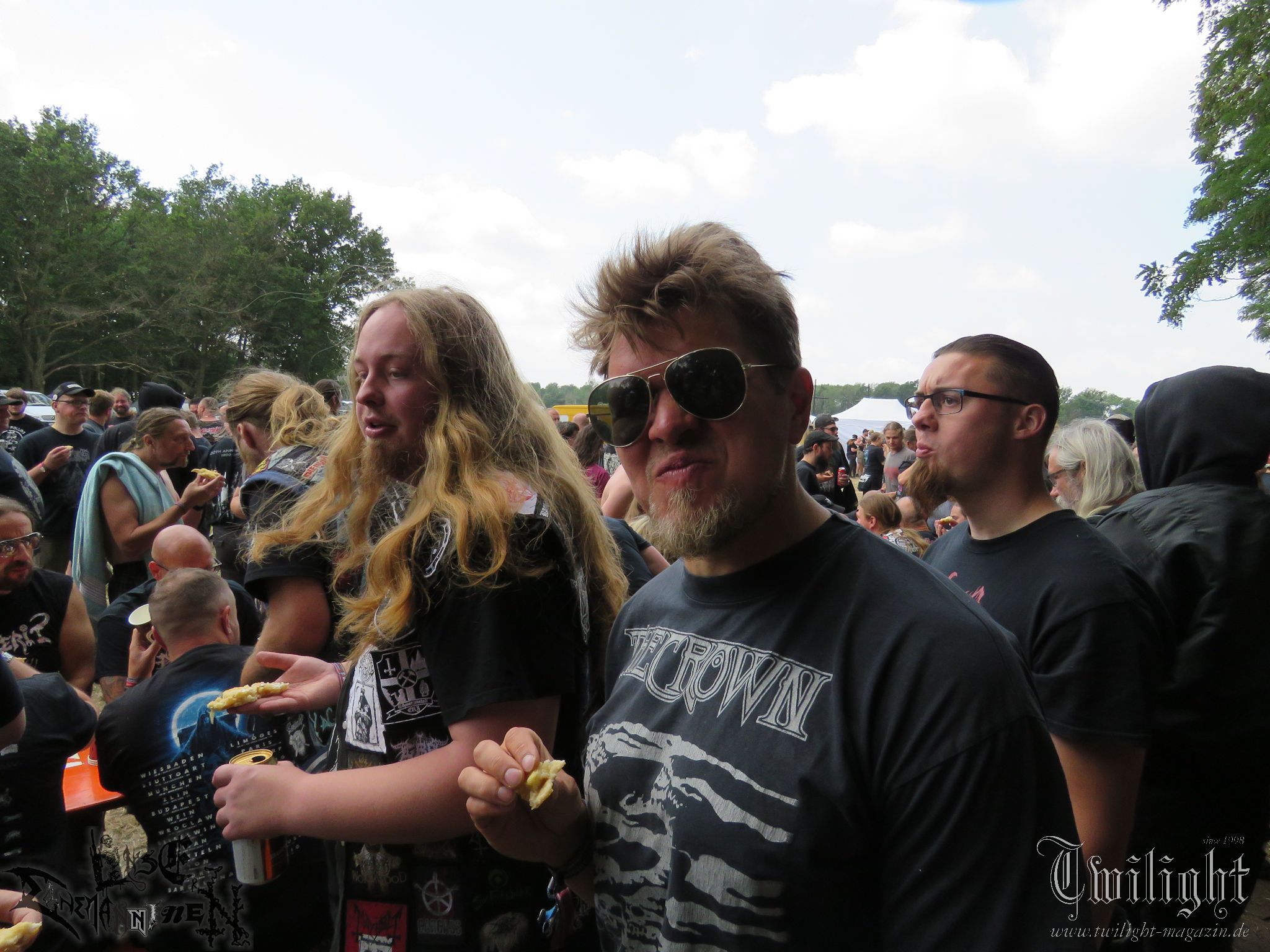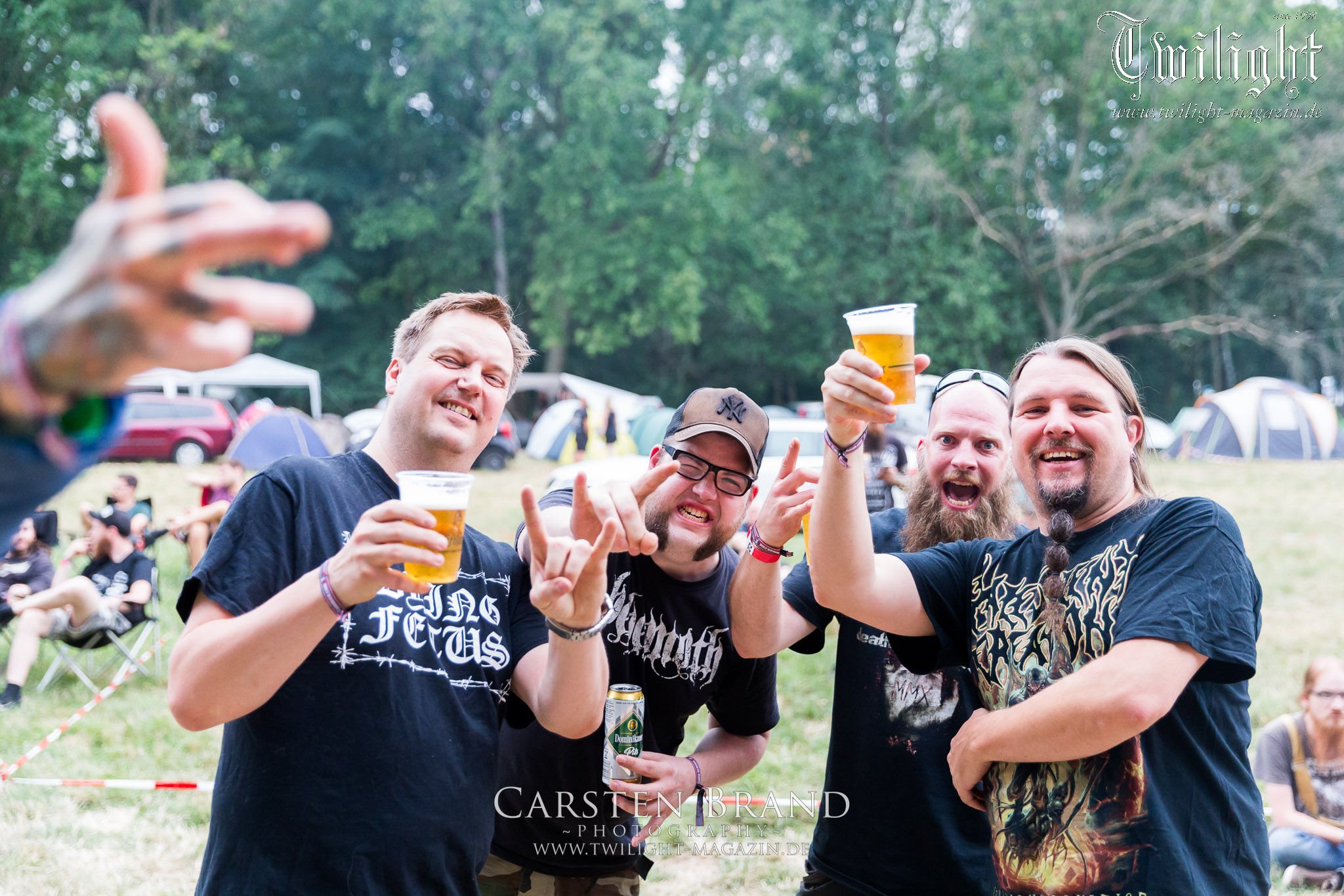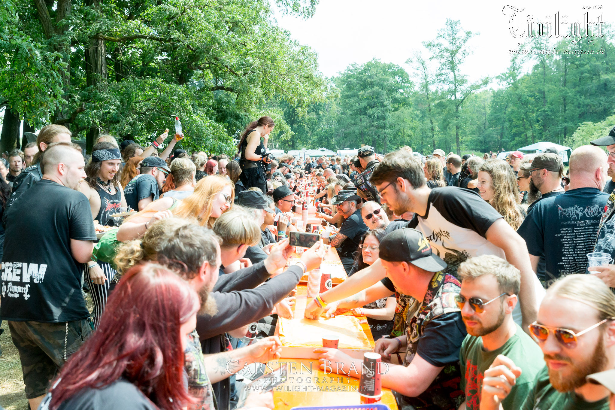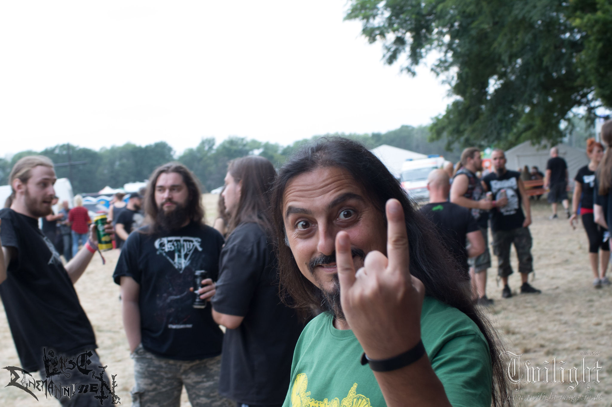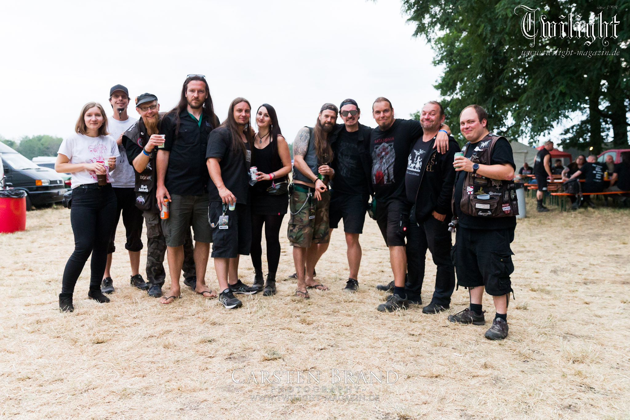 Sicher eine bessere Organisation beim Check-In, sowohl in baulicher Art und Weise, wie auch hinsichtlich der Abläufe. Die Umsetzung und Verbesserung des WC-Camps gehört sicherlich auch dazu, nicht zu vergessen, die wesentlich routiniertere Crew, welche sich in diesem Jahr um die Einweisung auf dem Zeltplatz gekümmert hat. Die technische Panne am Freitag dürfte für Crew, Fans und Veranstalter gleichermaßen ärgerlich und unbefriedigend gewesen sein. Gerade in Sachen Information zu Spielzeiten der auf der Hauptbühne zunächst ausgefallenen Bands hätte man mit wenig Aufwand besser agieren können. Das Wetter soll auch nicht unerwähnt bleiben. Nicht ganz trocken, aber dafür sind wir von Unwettern, wie auch von der ganz großen Hitze verschont geblieben. Zu meinen persönlichen Highlights gehörten neben meinem ersten Hangover Run vor allem die Auftritte von Asomvel, Indian Nightmare, Abjured, 1914, Lik und Necrophobic. Von Froschkotze, Kaffee & Kuchen mal ganz zu schweigen. Dank gilt an dieser Stelle Thomas Richter und seiner gesamten Crew sowie allen weiteren, ehrenamtlichen Helfern.