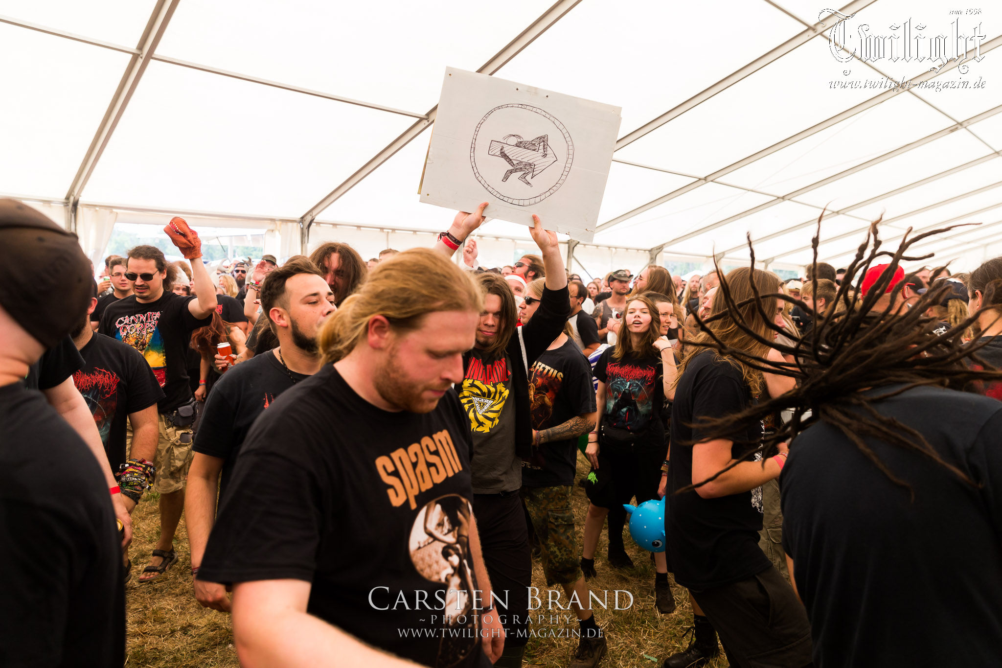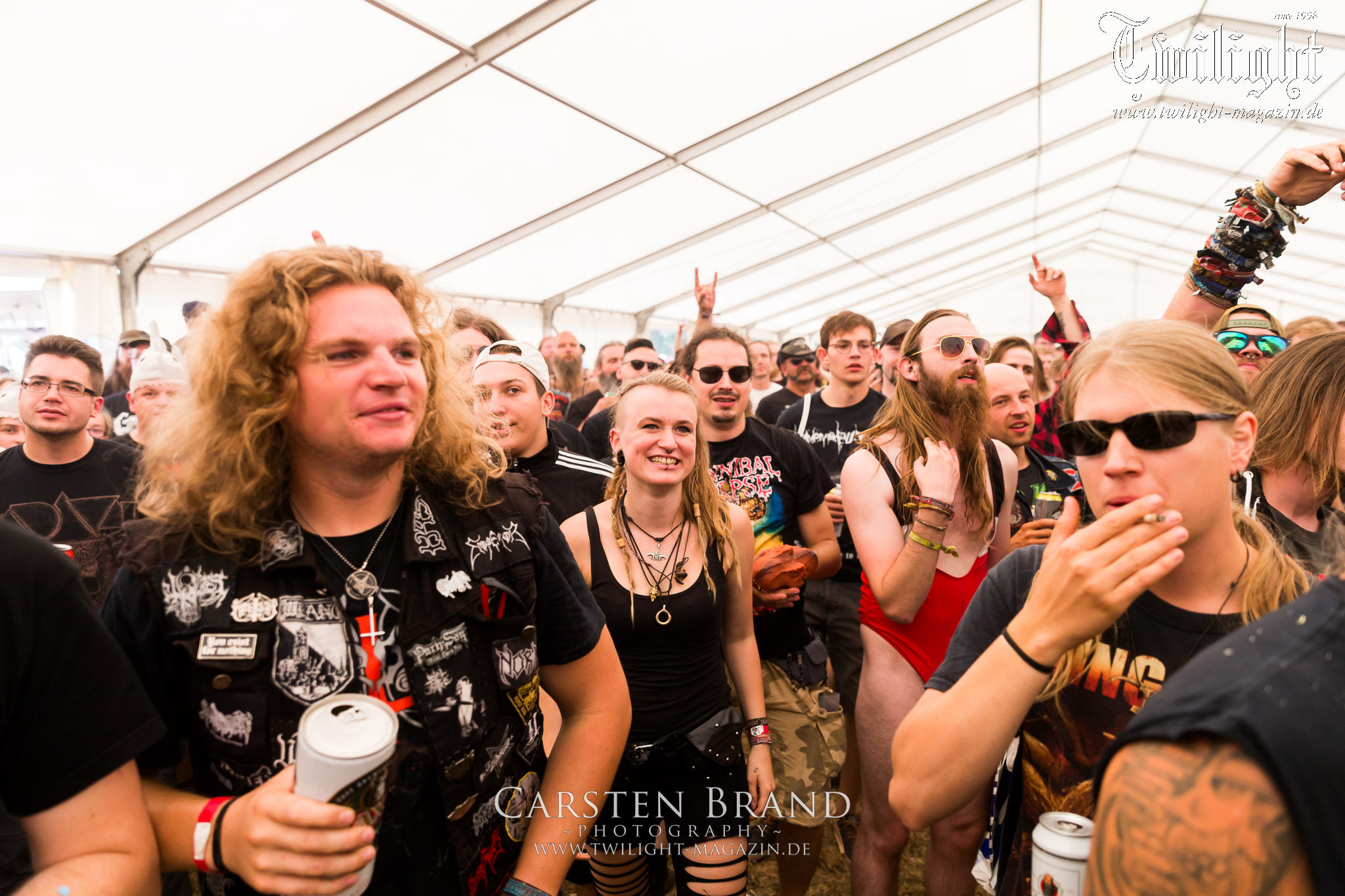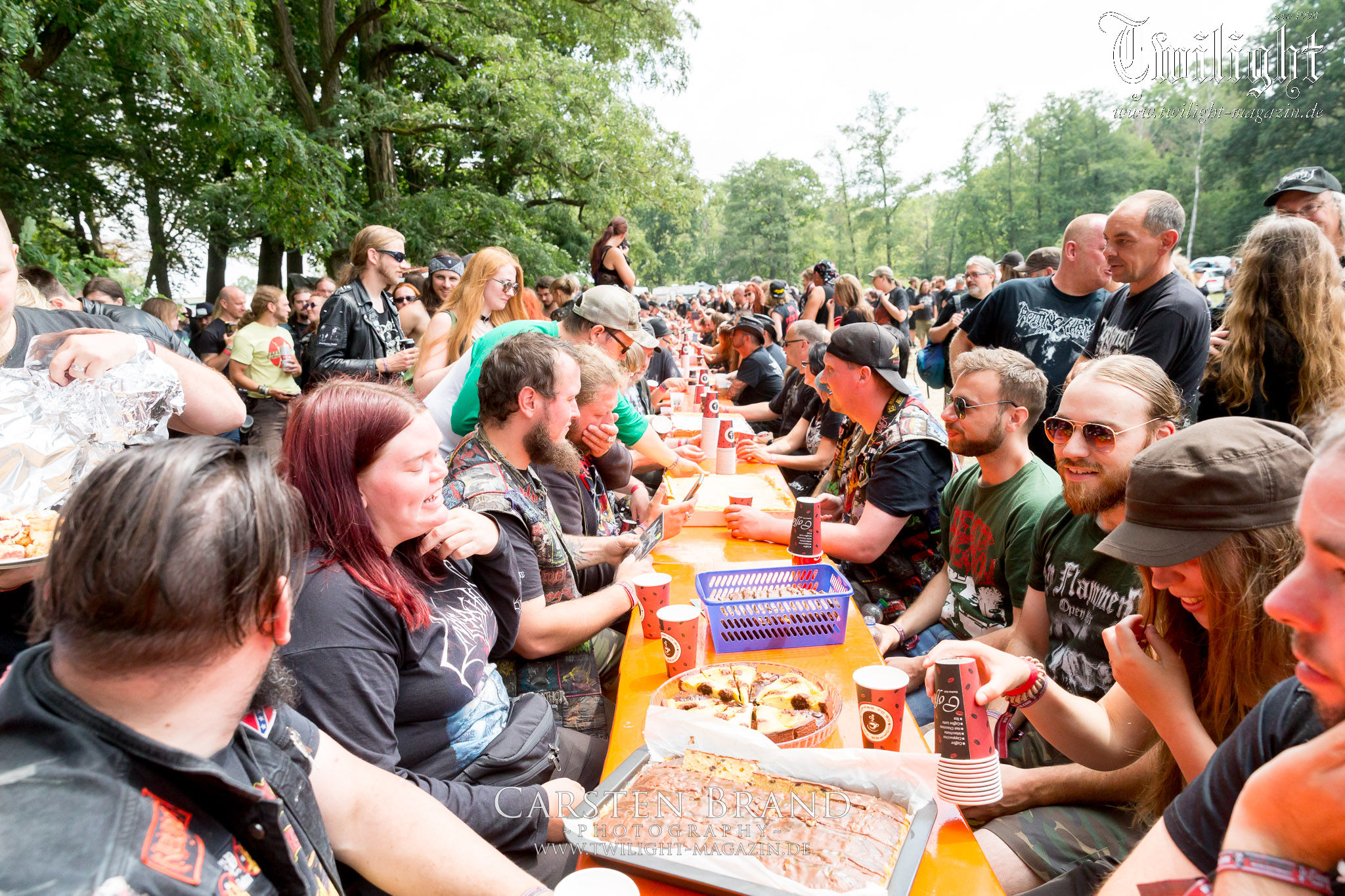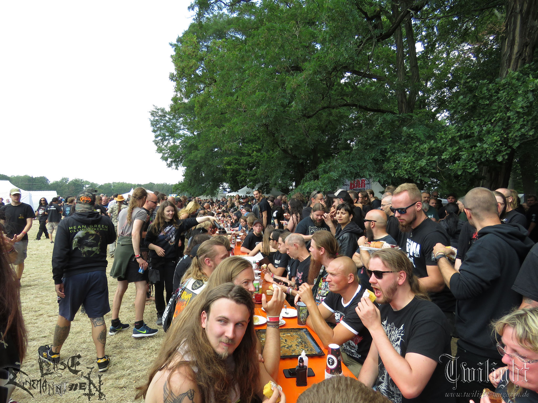 Sicher eine bessere Organisation beim Check-In, sowohl in baulicher Art und Weise, wie auch hinsichtlich der Abläufe. Die Umsetzung und Verbesserung des WC-Camps gehört sicherlich auch dazu, nicht zu vergessen, die wesentlich routiniertere Crew, welche sich in diesem Jahr um die Einweisung auf dem Zeltplatz gekümmert hat. Die technische Panne am Freitag dürfte für Crew, Fans und Veranstalter gleichermaßen ärgerlich und unbefriedigend gewesen sein. Gerade in Sachen Information zu Spielzeiten der auf der Hauptbühne zunächst ausgefallenen Bands hätte man mit wenig Aufwand besser agieren können. Das Wetter soll auch nicht unerwähnt bleiben. Nicht ganz trocken, aber dafür sind wir von Unwettern, wie auch von der ganz großen Hitze verschont geblieben. Zu meinen persönlichen Highlights gehörten neben meinem ersten Hangover Run vor allem die Auftritte von Asomvel, Indian Nightmare, Abjured, 1914, Lik und Necrophobic. Von Froschkotze, Kaffee & Kuchen mal ganz zu schweigen. Dank gilt an dieser Stelle Thomas Richter und seiner gesamten Crew sowie allen weiteren, ehrenamtlichen Helfern.