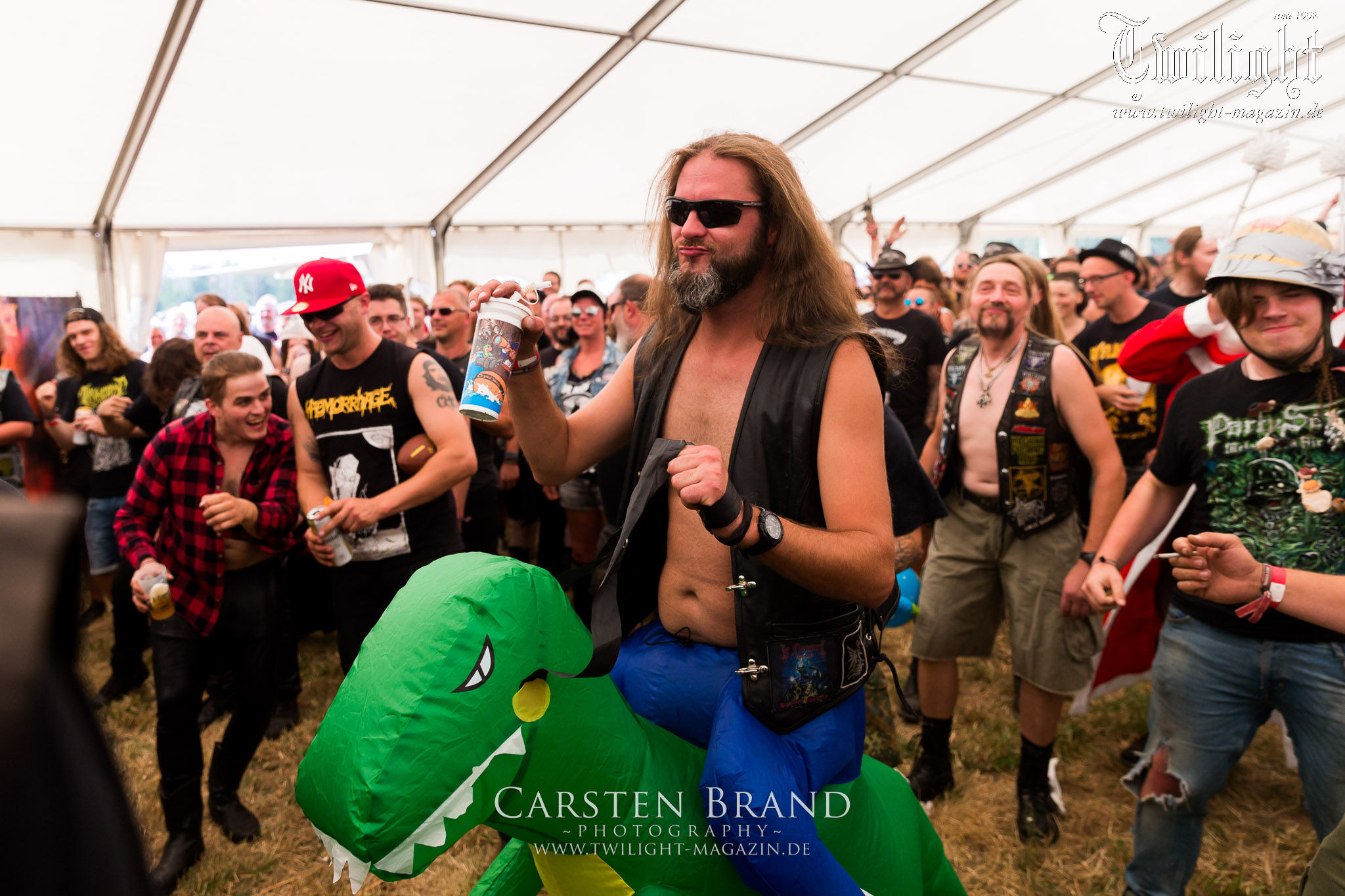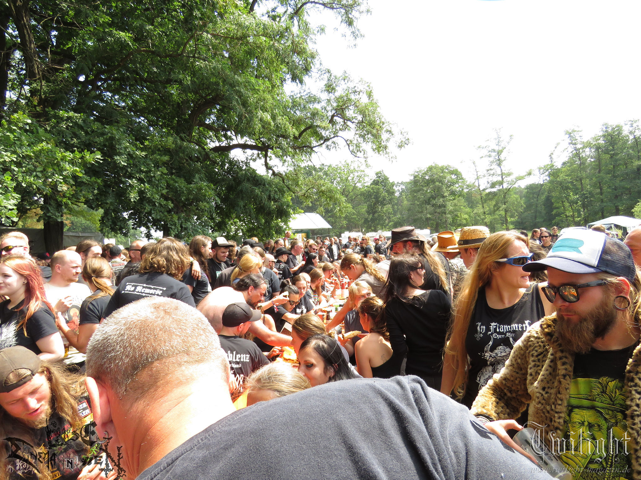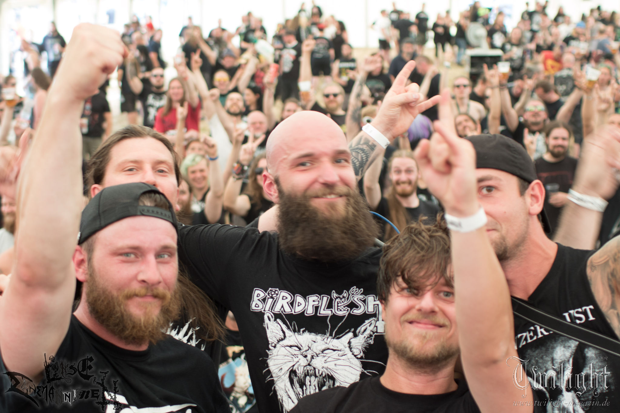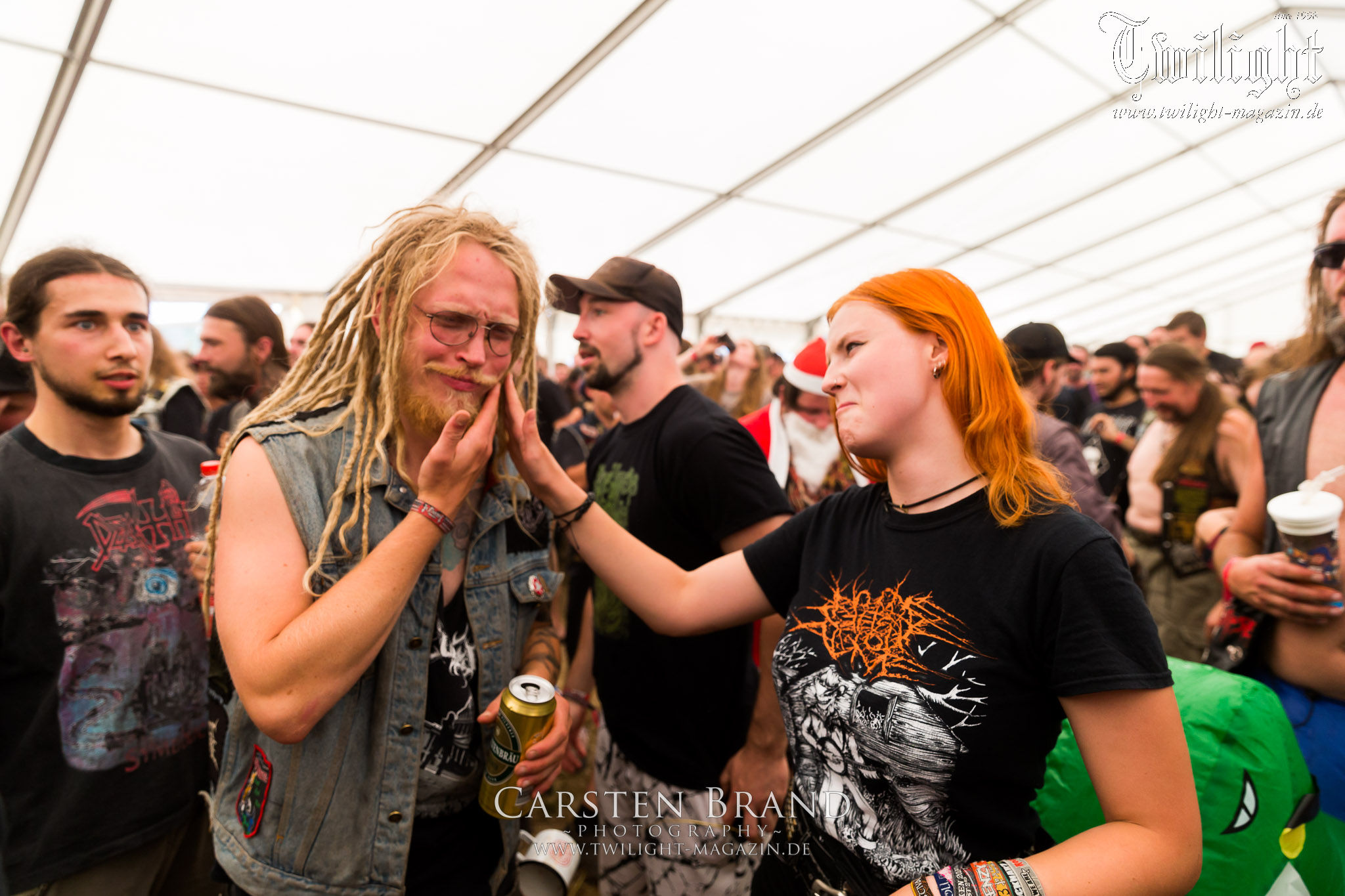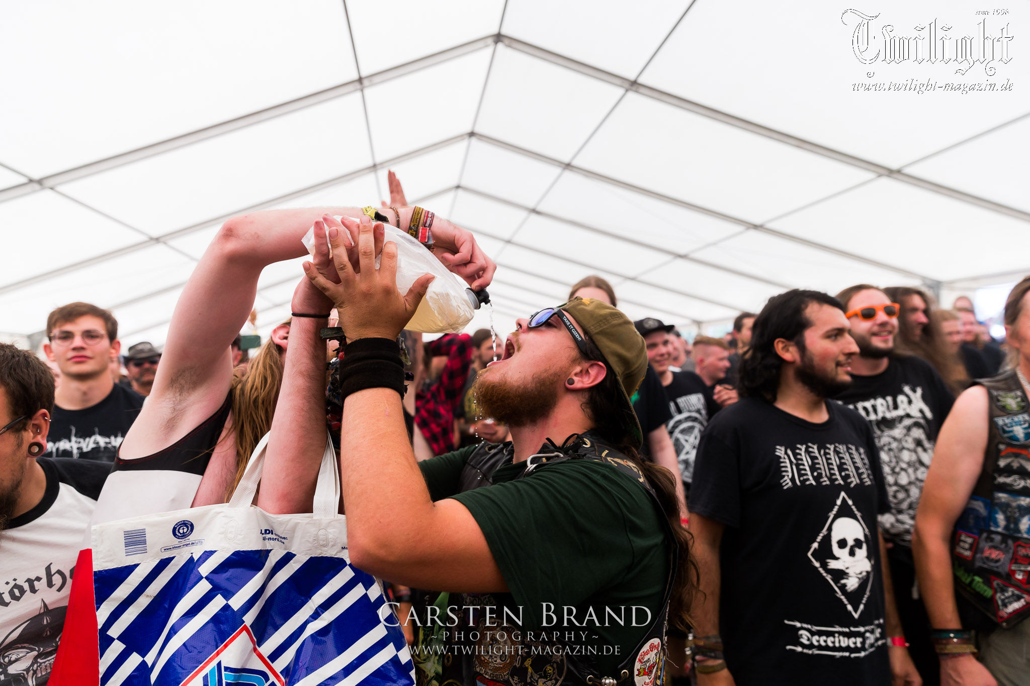 Sicher eine bessere Organisation beim Check-In, sowohl in baulicher Art und Weise, wie auch hinsichtlich der Abläufe. Die Umsetzung und Verbesserung des WC-Camps gehört sicherlich auch dazu, nicht zu vergessen, die wesentlich routiniertere Crew, welche sich in diesem Jahr um die Einweisung auf dem Zeltplatz gekümmert hat. Die technische Panne am Freitag dürfte für Crew, Fans und Veranstalter gleichermaßen ärgerlich und unbefriedigend gewesen sein. Gerade in Sachen Information zu Spielzeiten der auf der Hauptbühne zunächst ausgefallenen Bands hätte man mit wenig Aufwand besser agieren können. Das Wetter soll auch nicht unerwähnt bleiben. Nicht ganz trocken, aber dafür sind wir von Unwettern, wie auch von der ganz großen Hitze verschont geblieben. Zu meinen persönlichen Highlights gehörten neben meinem ersten Hangover Run vor allem die Auftritte von Asomvel, Indian Nightmare, Abjured, 1914, Lik und Necrophobic. Von Froschkotze, Kaffee & Kuchen mal ganz zu schweigen. Dank gilt an dieser Stelle Thomas Richter und seiner gesamten Crew sowie allen weiteren, ehrenamtlichen Helfern.
