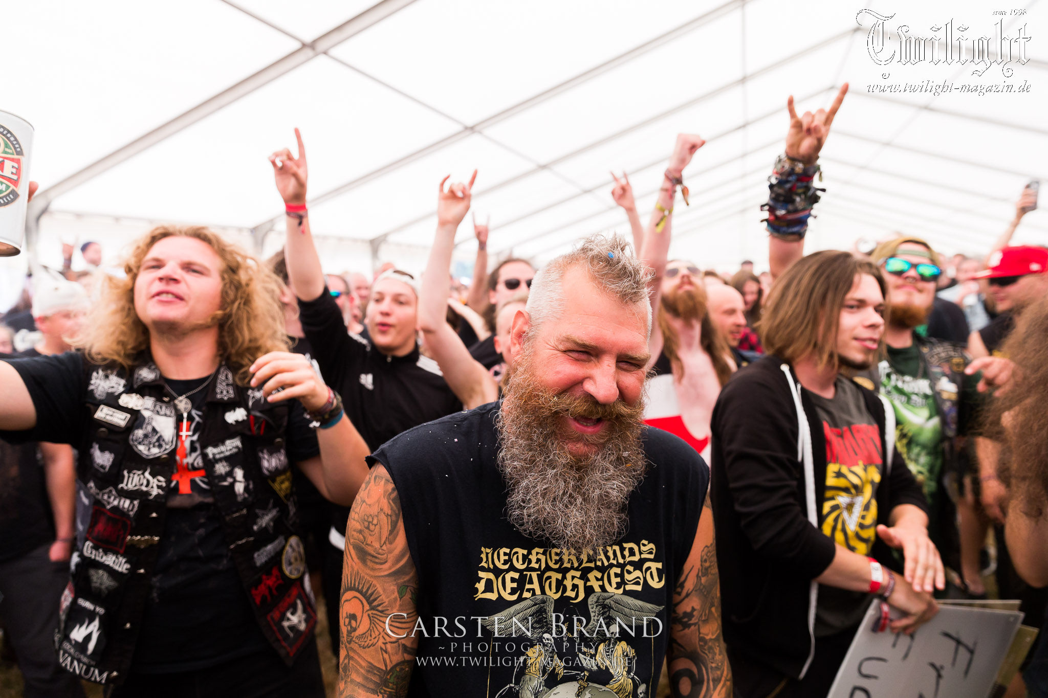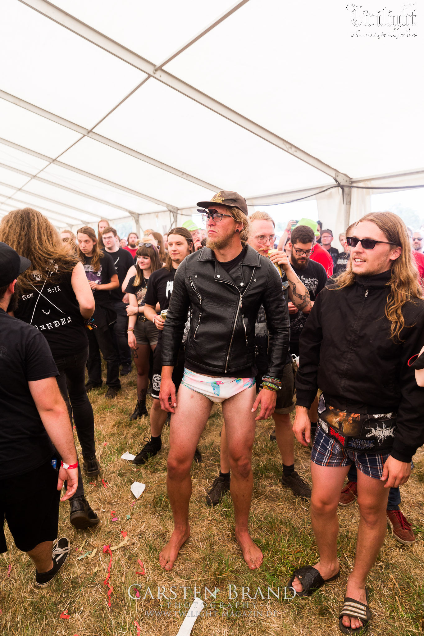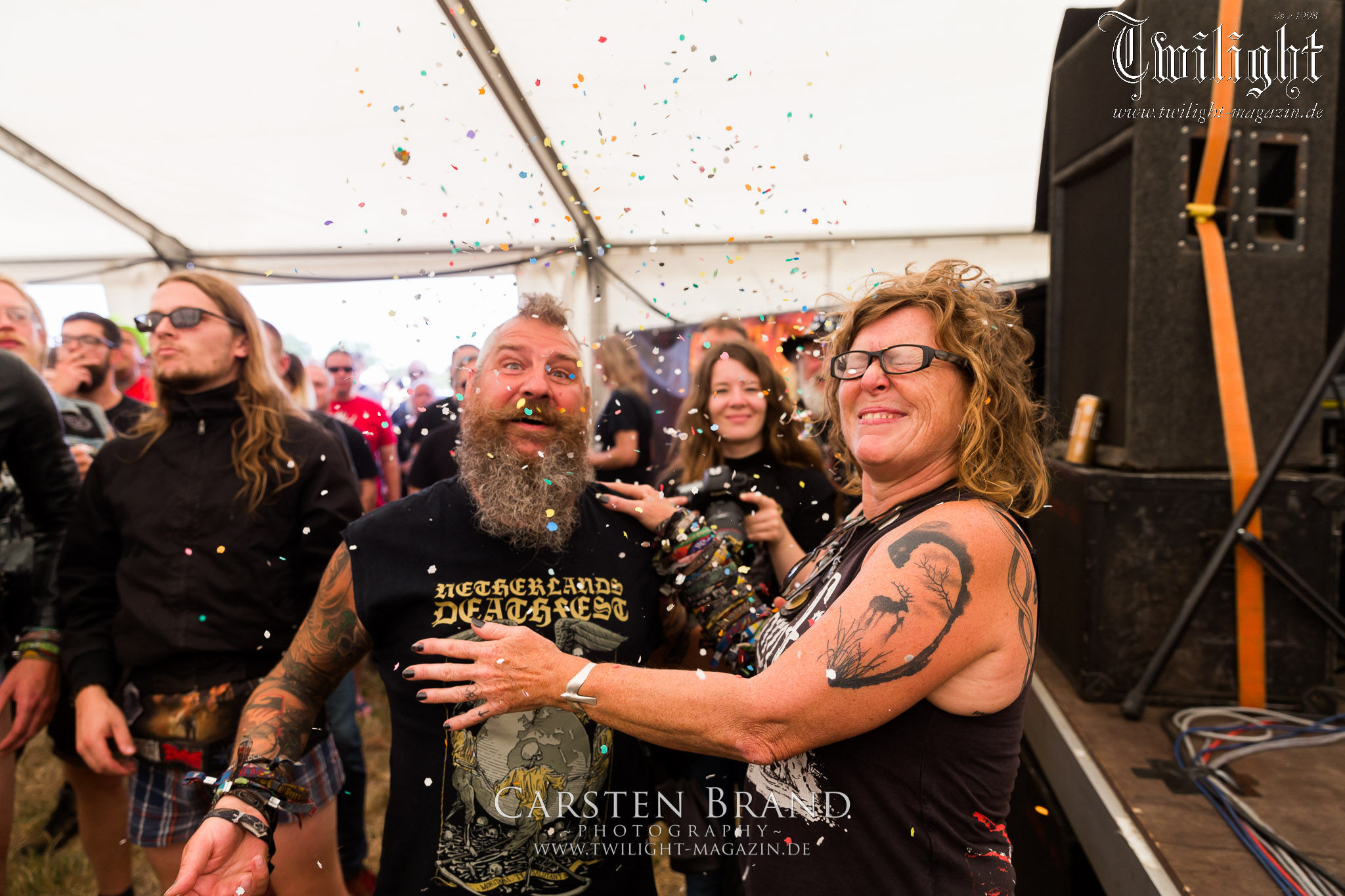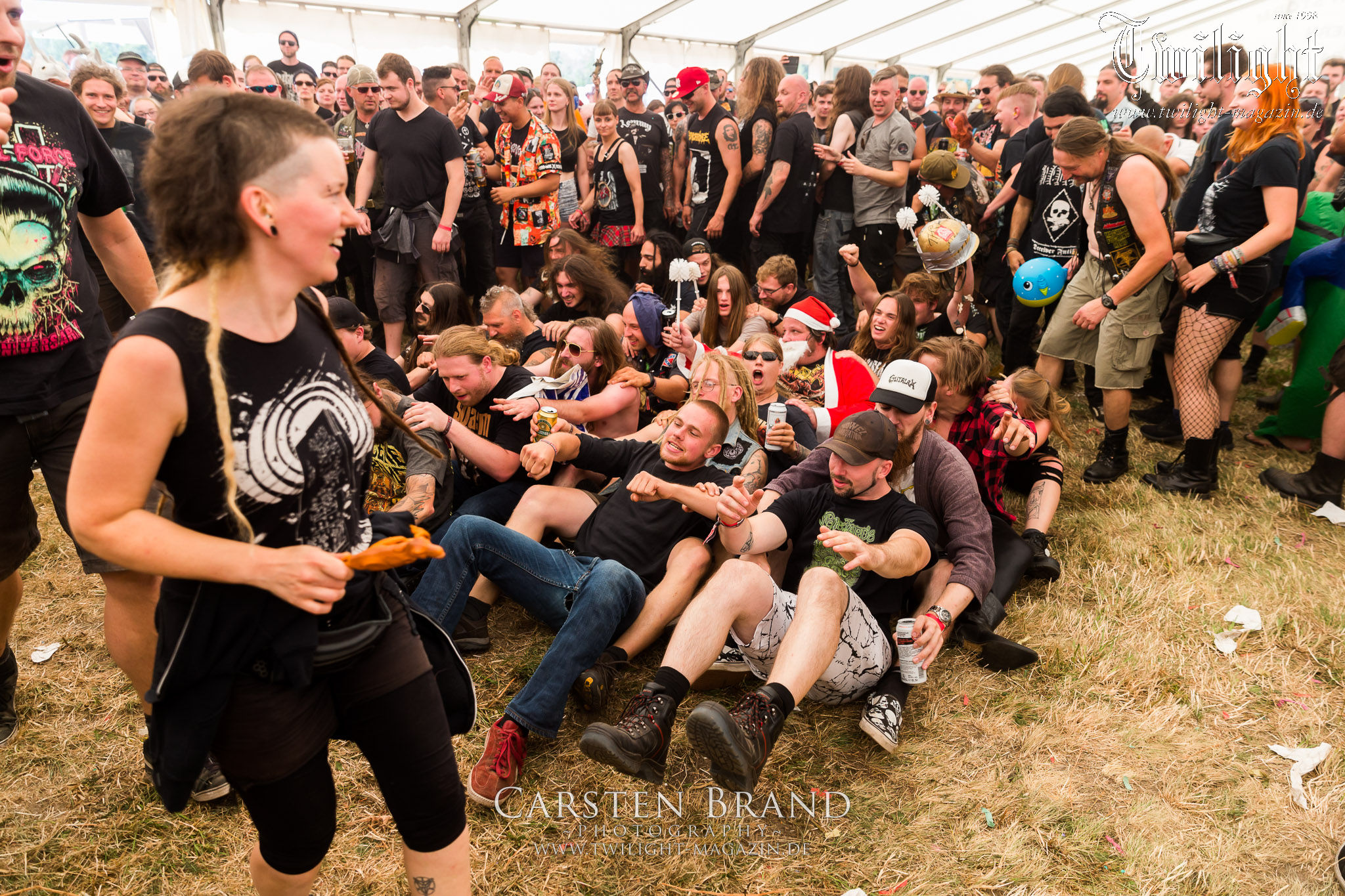 Sicher eine bessere Organisation beim Check-In, sowohl in baulicher Art und Weise, wie auch hinsichtlich der Abläufe. Die Umsetzung und Verbesserung des WC-Camps gehört sicherlich auch dazu, nicht zu vergessen, die wesentlich routiniertere Crew, welche sich in diesem Jahr um die Einweisung auf dem Zeltplatz gekümmert hat. Die technische Panne am Freitag dürfte für Crew, Fans und Veranstalter gleichermaßen ärgerlich und unbefriedigend gewesen sein. Gerade in Sachen Information zu Spielzeiten der auf der Hauptbühne zunächst ausgefallenen Bands hätte man mit wenig Aufwand besser agieren können. Das Wetter soll auch nicht unerwähnt bleiben. Nicht ganz trocken, aber dafür sind wir von Unwettern, wie auch von der ganz großen Hitze verschont geblieben. Zu meinen persönlichen Highlights gehörten neben meinem ersten Hangover Run vor allem die Auftritte von Asomvel, Indian Nightmare, Abjured, 1914, Lik und Necrophobic. Von Froschkotze, Kaffee & Kuchen mal ganz zu schweigen. Dank gilt an dieser Stelle Thomas Richter und seiner gesamten Crew sowie allen weiteren, ehrenamtlichen Helfern.
