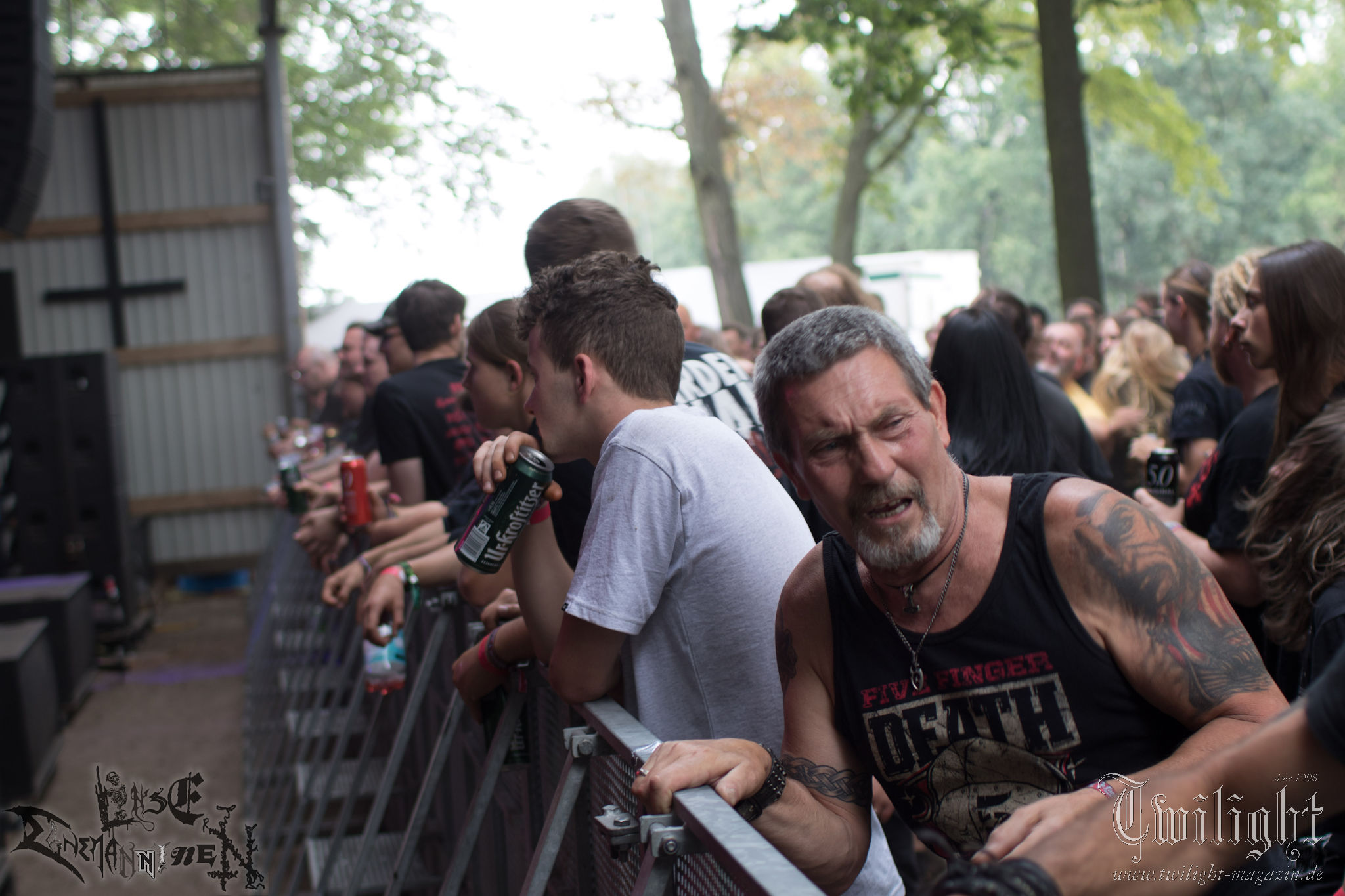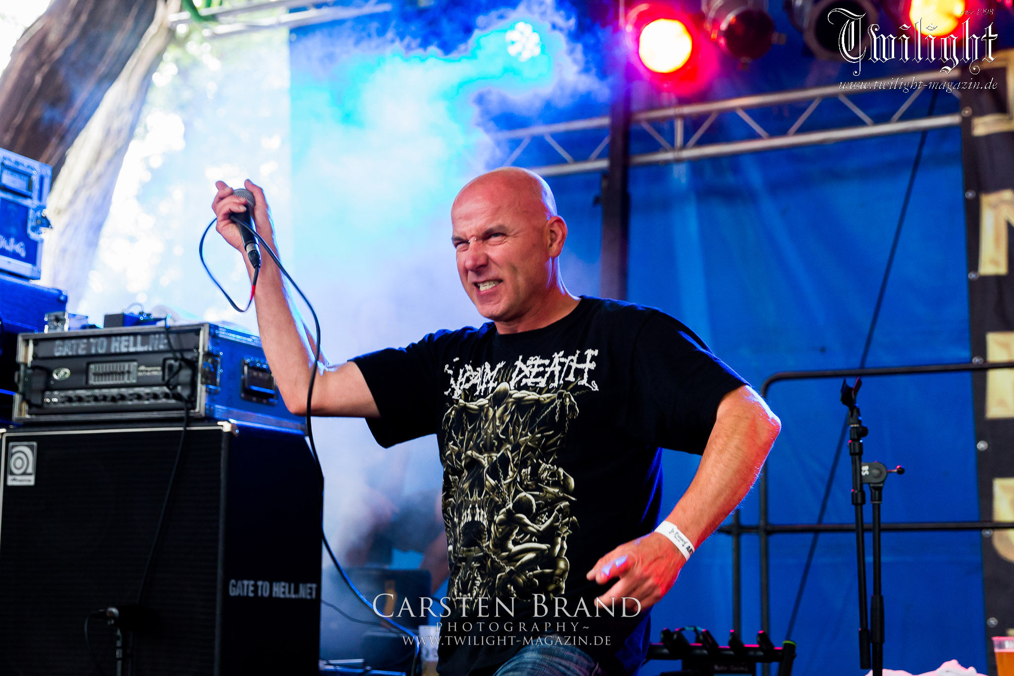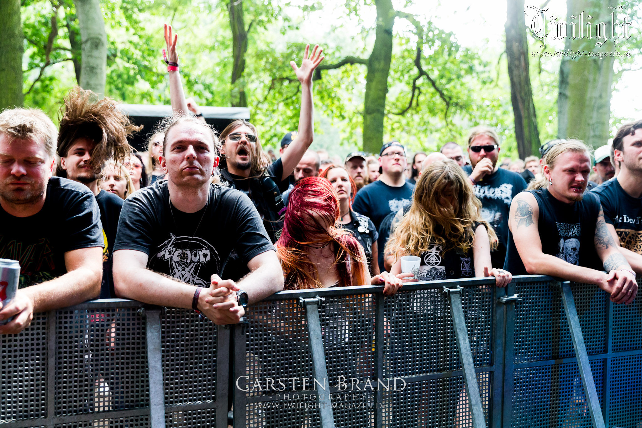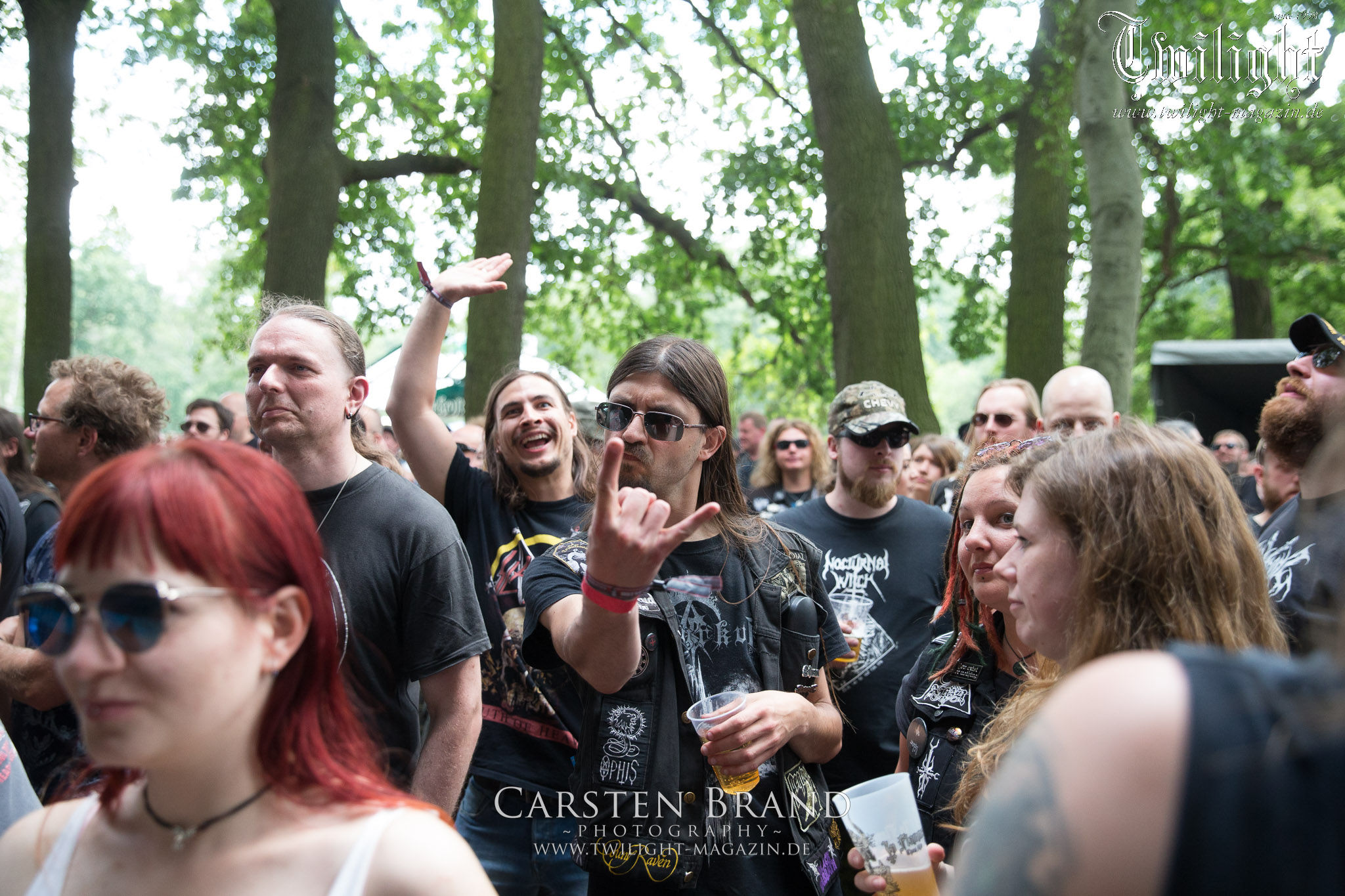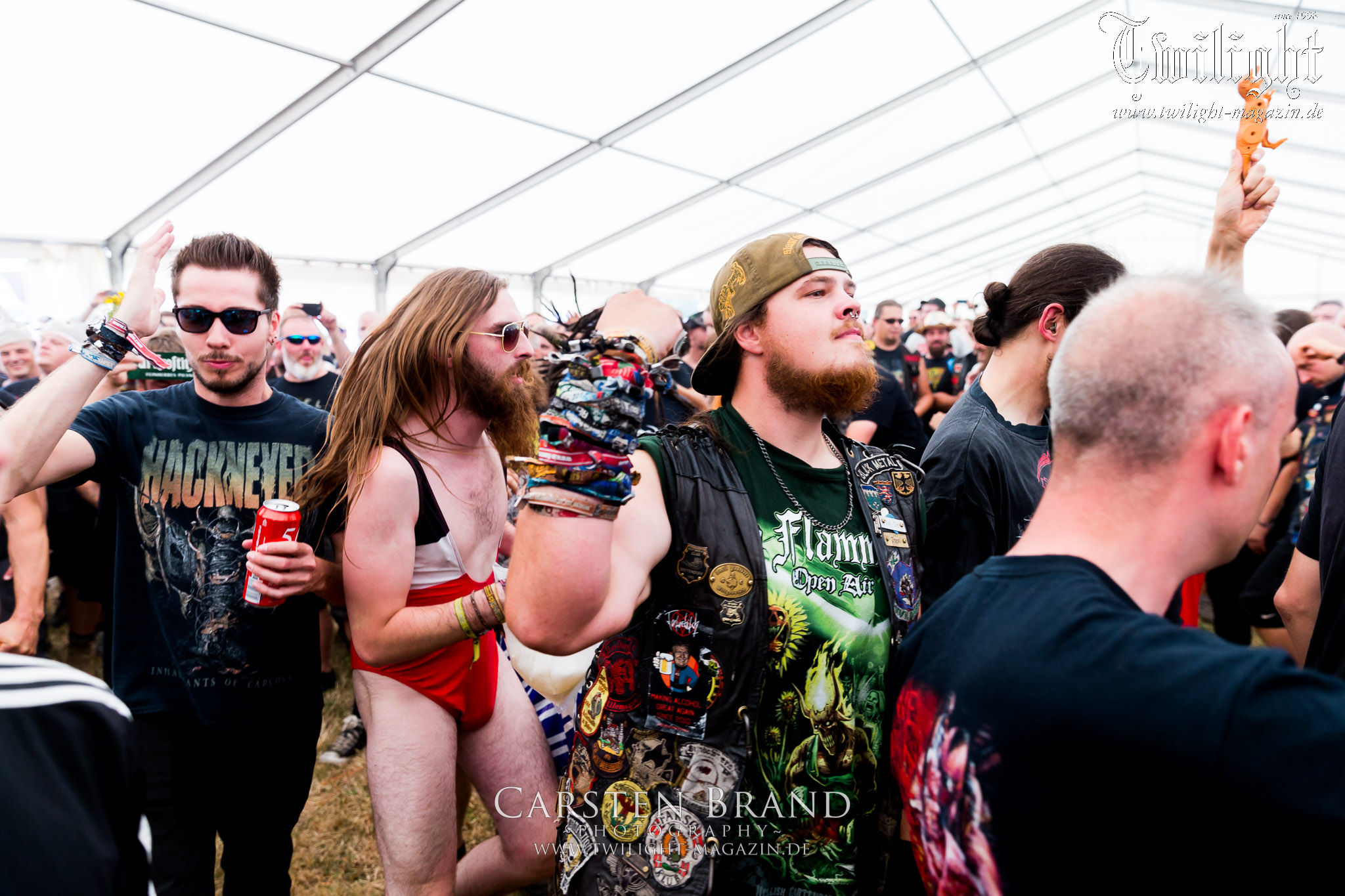 Sicher eine bessere Organisation beim Check-In, sowohl in baulicher Art und Weise, wie auch hinsichtlich der Abläufe. Die Umsetzung und Verbesserung des WC-Camps gehört sicherlich auch dazu, nicht zu vergessen, die wesentlich routiniertere Crew, welche sich in diesem Jahr um die Einweisung auf dem Zeltplatz gekümmert hat. Die technische Panne am Freitag dürfte für Crew, Fans und Veranstalter gleichermaßen ärgerlich und unbefriedigend gewesen sein. Gerade in Sachen Information zu Spielzeiten der auf der Hauptbühne zunächst ausgefallenen Bands hätte man mit wenig Aufwand besser agieren können. Das Wetter soll auch nicht unerwähnt bleiben. Nicht ganz trocken, aber dafür sind wir von Unwettern, wie auch von der ganz großen Hitze verschont geblieben. Zu meinen persönlichen Highlights gehörten neben meinem ersten Hangover Run vor allem die Auftritte von Asomvel, Indian Nightmare, Abjured, 1914, Lik und Necrophobic. Von Froschkotze, Kaffee & Kuchen mal ganz zu schweigen. Dank gilt an dieser Stelle Thomas Richter und seiner gesamten Crew sowie allen weiteren, ehrenamtlichen Helfern.