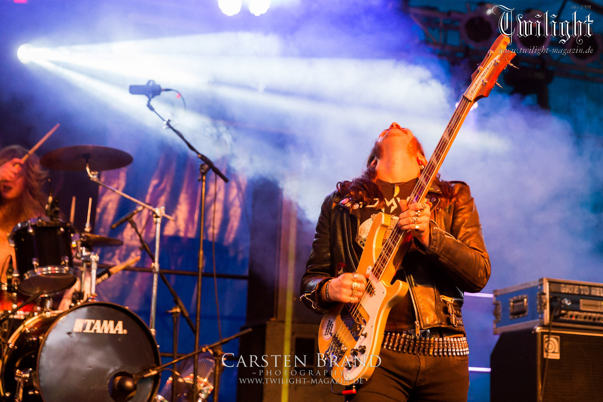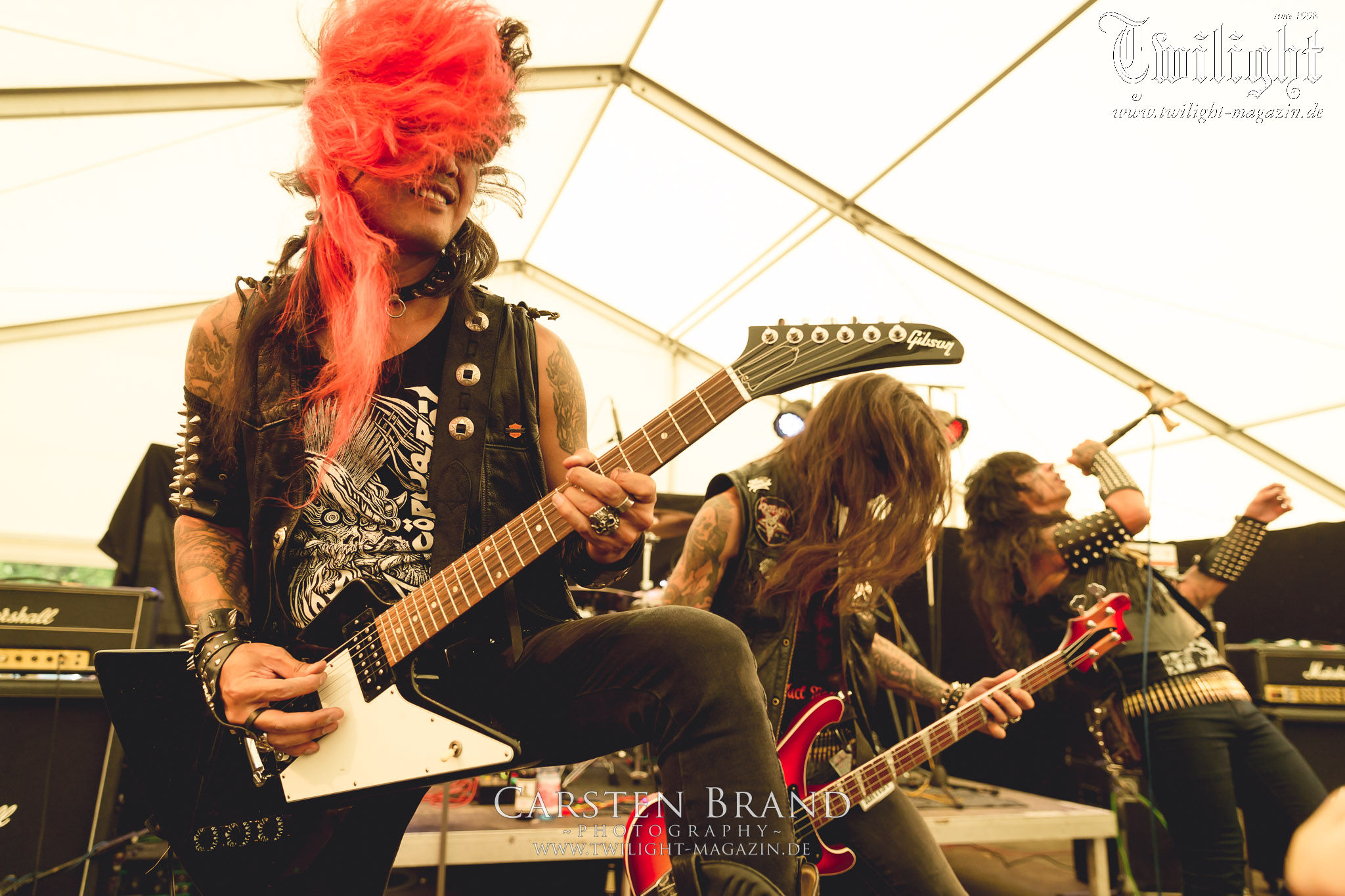 Im Schweden-Reigen geht´s anschließend mit ENFORCER weiter, die über ihr aktuelles Album "Zenit" den Mund selbstbewusst ziemlich voll genommen haben, Unabhängig davon ist das, was da von der Bühne herab schallt ganz großes Kino zwischen klassischem Heavy und Speed Metal sowie Hard und Glam-Rock. Neu und innovativ ist das natürlich nicht aber die Herren hauchen dem Ganzen in einer Art und Weise Leben Energie und Leben ein, die nicht nur zeigt, dass die Band mit Leidenschaft am Werk ist, sondern die beweist, dass Enforcer weit mehr als nur ein lauer Aufguss, aufgewärmte Klischees oder alberne Spinal Tap - Momente sind. Das ist purer und unterhaltsamer Metal in all seinen Facetten.