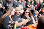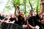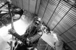 Mit MISERY INDEX kann ich anschließend weitaus weniger anfangen. Zeit für einen Snack am Futterstand, an dem es in diesem Jahr erstmals einen vegetarischen Burger gibt, der im Vergleich zur Standard-Veggiekost um Nudeln und Pommes überaus gut abschneidet. Doch zurück zur Musik. Die Death-Grind-Amis sind mittlerweile zu lang im Geschäft, um wirklich noch New School zu sein. Der brutale, technisch anspruchsvolle Death Metal, der mit der Energie des Grindcore verwoben ist, wurde in den letzten zehn Jahren in Sachen Härte, Technik und Komplexität mal eben von den Slam und Mathcore-Vertretern rechts überholt. Von der alten Schule sind Misery Index aber eben auch meilenweit entfernt, so dass mir das Getrümmer auf Dauer schlichtweg zu eintönig und "abgedroschen" an mir vorbei rauscht. Ausgenommen das Napalm Death-Cover und ein Song, in dem man tatsächlich mit gedrosseltem Tempo und Melodien zu Werke geht. Darüber hinaus macht das Trio soundmäßig in beeindruckender Weise Alarm.