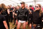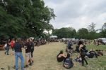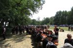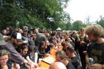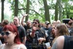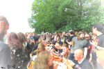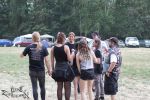 Der Samstag startet trübe, bewölkt, relativ kühl und mit hoher Luftfeuchte. Die meinem ausschweifenden Lebenswandel des Donnerstags geschuldete Zurückhaltung bei den flüssigen Genussmitteln am Vortag ermöglicht es mir, nach drei Jahren endlich mal bei der neben Kaffee & Kuchen besten und verrücktesten Festival-Tadition aktiv beizuwohnen, seitdem es das IN FLAMMEN OPEN AIR gibt. Da werden früh morgens die Laufschuhe geschnürt und dann startet am Stand von Ketzer Records der in diesem Jahr bereits fünfte und mittlerweile auch offizielle IN FLAMMEN OPEN AIR HANGOVER RUN. Mit rund 50 Metalheads startet Ultra-Sportler Hebbe die Runde um den großen Teich durch das landschaftlich reizvolle angrenzende Schutzgebiet. In gemütlichem Tempo wird die gut acht Kilometer lange Runde absolviert. Niemand wird zurück gelassen. Am Strandbad Torgau gibt´s ´ne obligatorische Trink- und Badepause, bei der nicht nur die Wasserreserven aufgefüllt werden, sondern auch mit Pfeffi für den Endspurt gedopt werden kann. Je näher es dem Open Air - Gelände zu geht, desto öfter werden die Rennenden mit der wehenden Haarpracht von schaulustigen Sympathisanten angefeuert aber auch verstört bis mitleidig bemustert. Bei der Zielankunft wartet Veranstalter Thomas bereits mit Banane, Melone, Wasser und Pfefferminzlikör. Und obendrein gibt´s für jeden "Überlebenden" noch eine Urkunde. Mein Fazit ist eindeutig: Eine etwas andere Art auf einem Festival-Samstag wach zu werden und eine spaßige Alternative zum Konterbier.