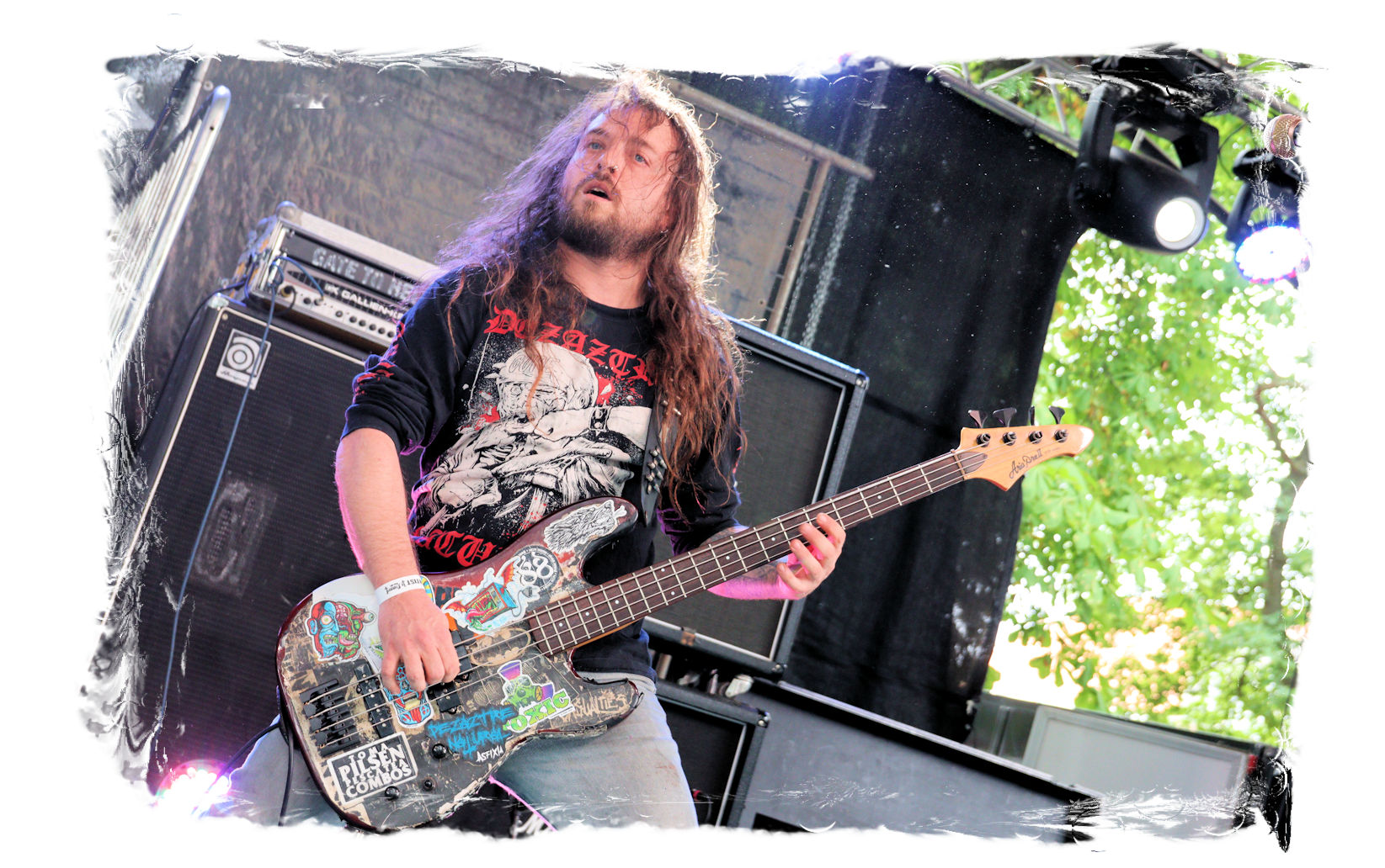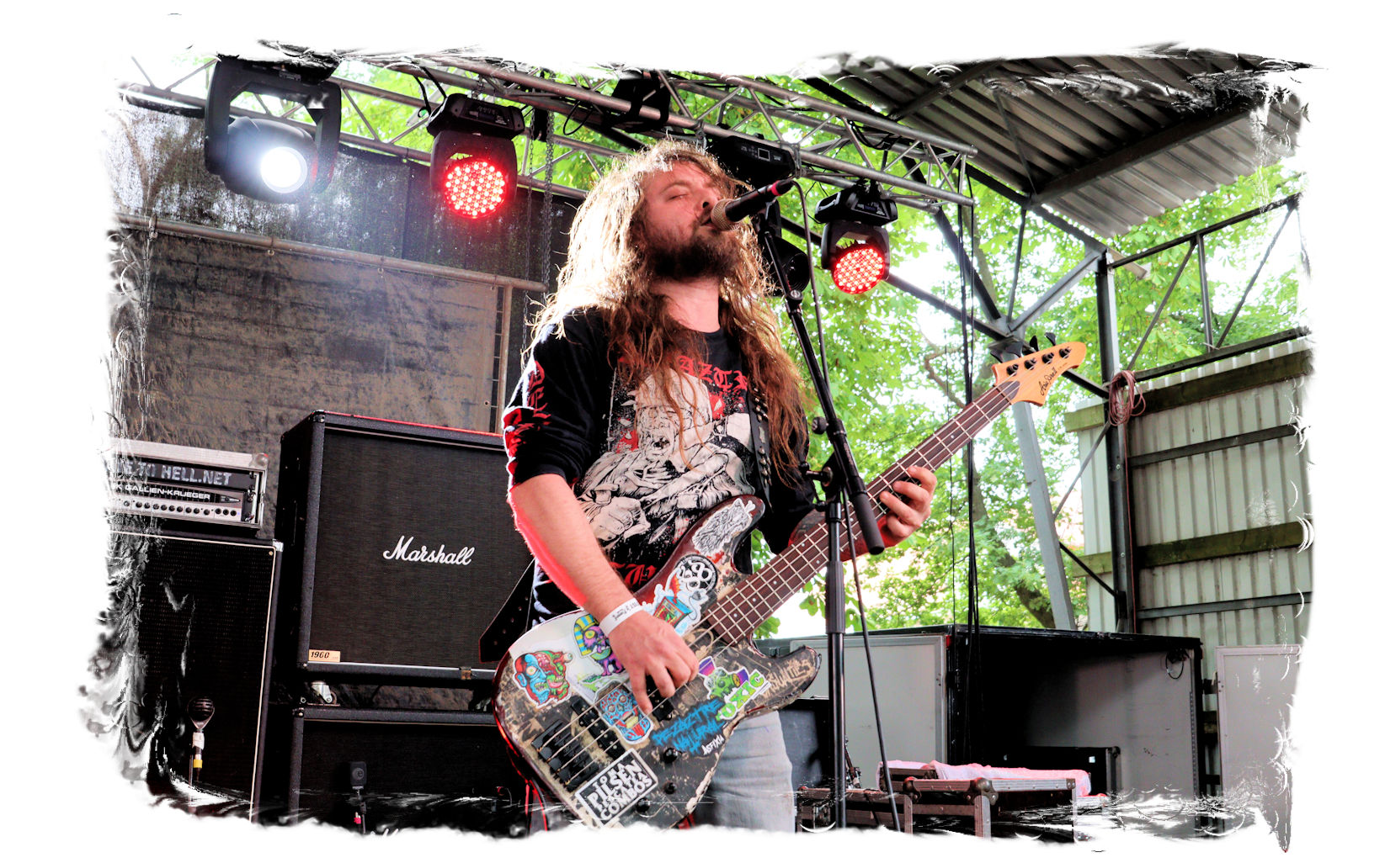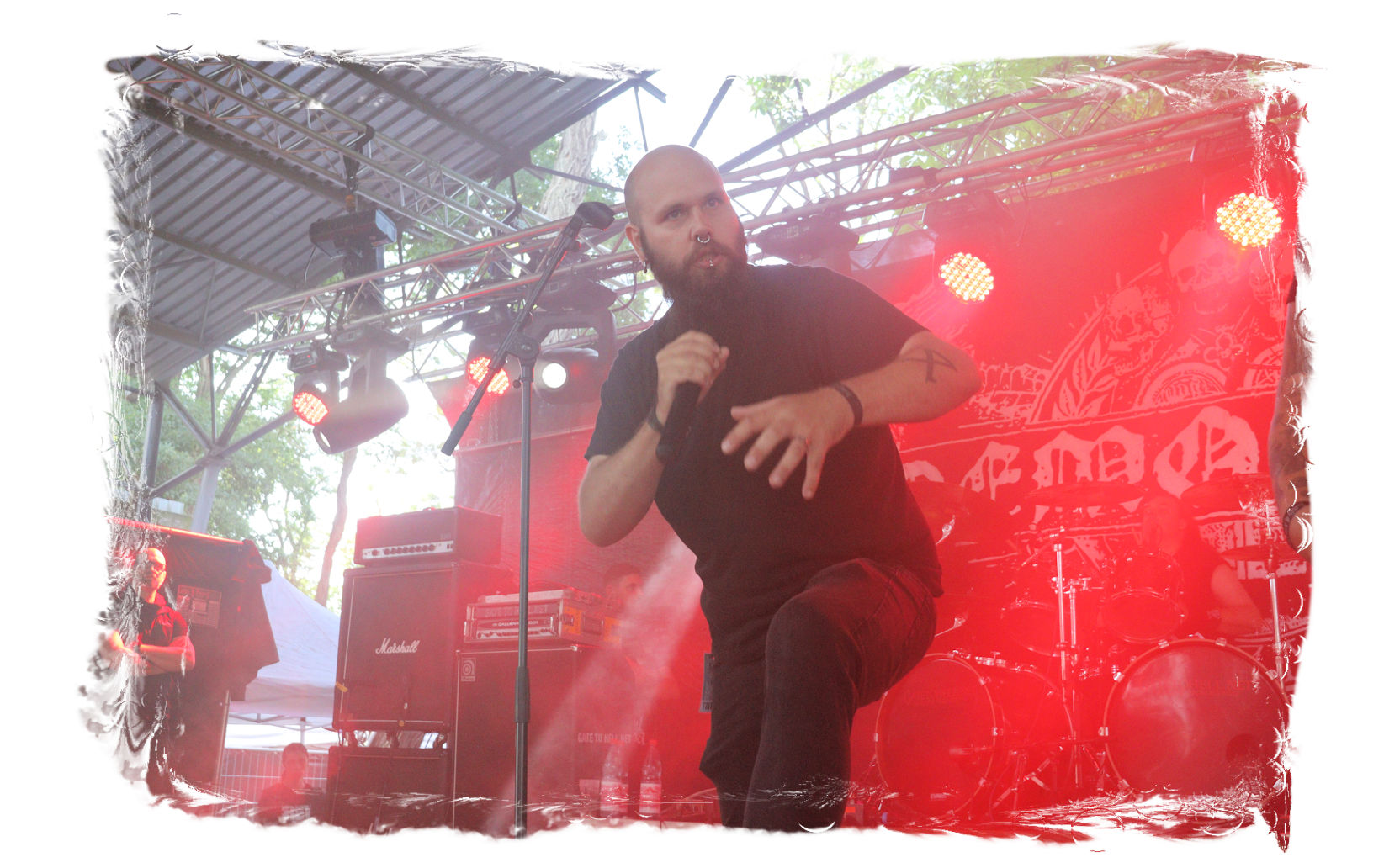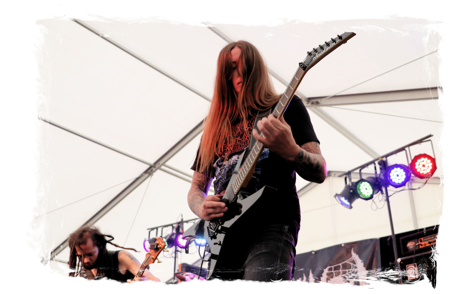 Auf Anraten meines Mitfahrers Lenzner geht es danach ins Zelt, der mir mit Nachdruck schon das gesamte Wochenende erläuterte, dass INCARCERATION an diesem Samstag alternativlos sind. Und was soll ich sagen, das Gemetzel aus Death Metal und Grindcore-Attacken dieser deutsch-brasilianischen Band lässt sich in Sachen Intensität kaum in Worte fassen. Vor allem, was Sänger und Basser Daniel Silva mit seiner Stimme sowie seinem Gesicht veranstaltet, gleicht einem emotionalen Abgrund aus so ziemlich allen negativen Emotionen, die man NIEMALS unter gar keinen Umständen fühlen, geschweige denn nach außen tragen möchte. Unterfüttert von einer unbarmherzigen Soundwalze, präzisen Instrumentalattacken von den Gitarren bis zum Schlagzeug. Ich lege mich mal fest: Wer in der Lage ist seine Gefühle derart in der Musik zu bündeln, der macht im normalen Leben irgendetwas mit Menschen und/oder für das Gemeinwohl. Ein amtliches Konzert, bei dem nicht nur der Rickenbacker am Ende dran glauben muss. Tonträger und Shirts sind danach auf jeden Fall heiß begehrt.