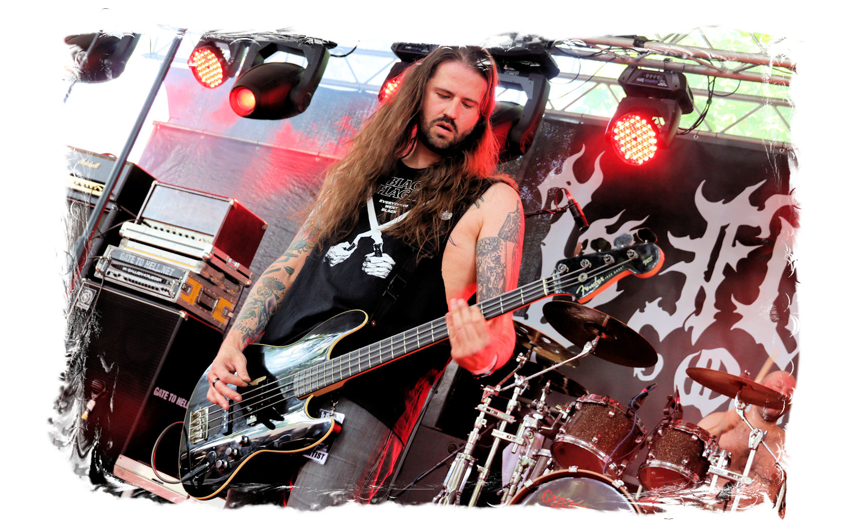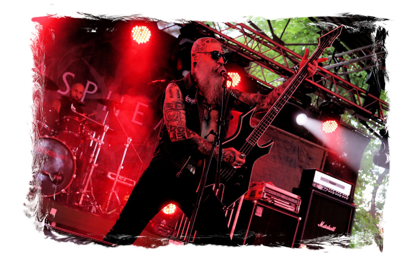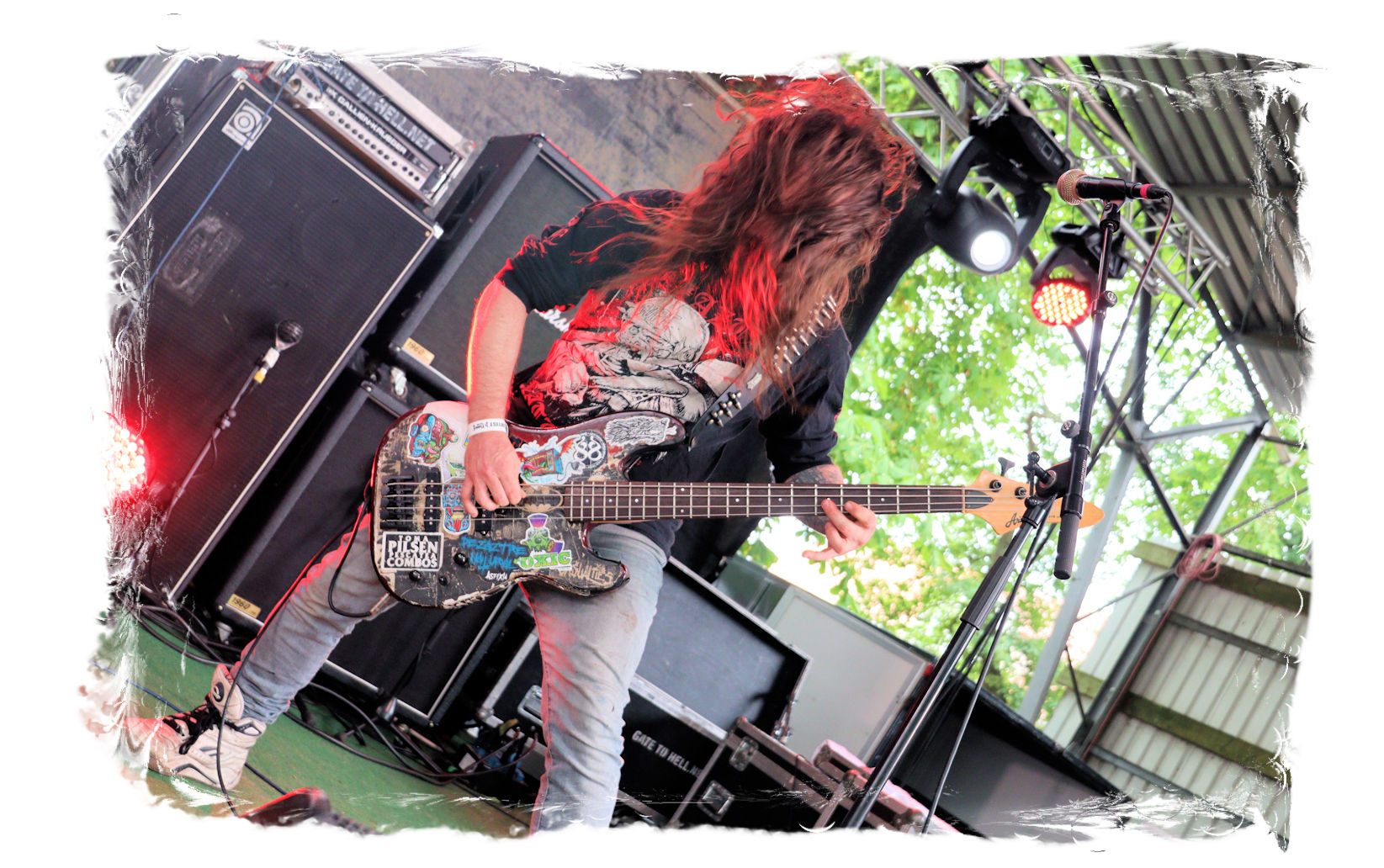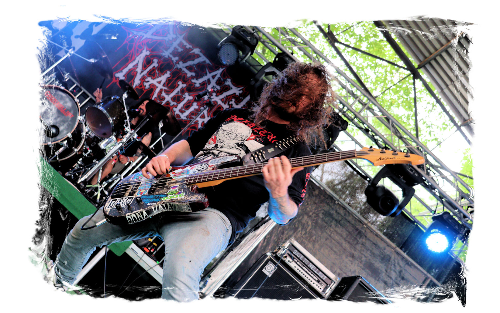 Auf Anraten meines Mitfahrers Lenzner geht es danach ins Zelt, der mir mit Nachdruck schon das gesamte Wochenende erläuterte, dass INCARCERATION an diesem Samstag alternativlos sind. Und was soll ich sagen, das Gemetzel aus Death Metal und Grindcore-Attacken dieser deutsch-brasilianischen Band lässt sich in Sachen Intensität kaum in Worte fassen. Vor allem, was Sänger und Basser Daniel Silva mit seiner Stimme sowie seinem Gesicht veranstaltet, gleicht einem emotionalen Abgrund aus so ziemlich allen negativen Emotionen, die man NIEMALS unter gar keinen Umständen fühlen, geschweige denn nach außen tragen möchte. Unterfüttert von einer unbarmherzigen Soundwalze, präzisen Instrumentalattacken von den Gitarren bis zum Schlagzeug. Ich lege mich mal fest: Wer in der Lage ist seine Gefühle derart in der Musik zu bündeln, der macht im normalen Leben irgendetwas mit Menschen und/oder für das Gemeinwohl. Ein amtliches Konzert, bei dem nicht nur der Rickenbacker am Ende dran glauben muss. Tonträger und Shirts sind danach auf jeden Fall heiß begehrt.