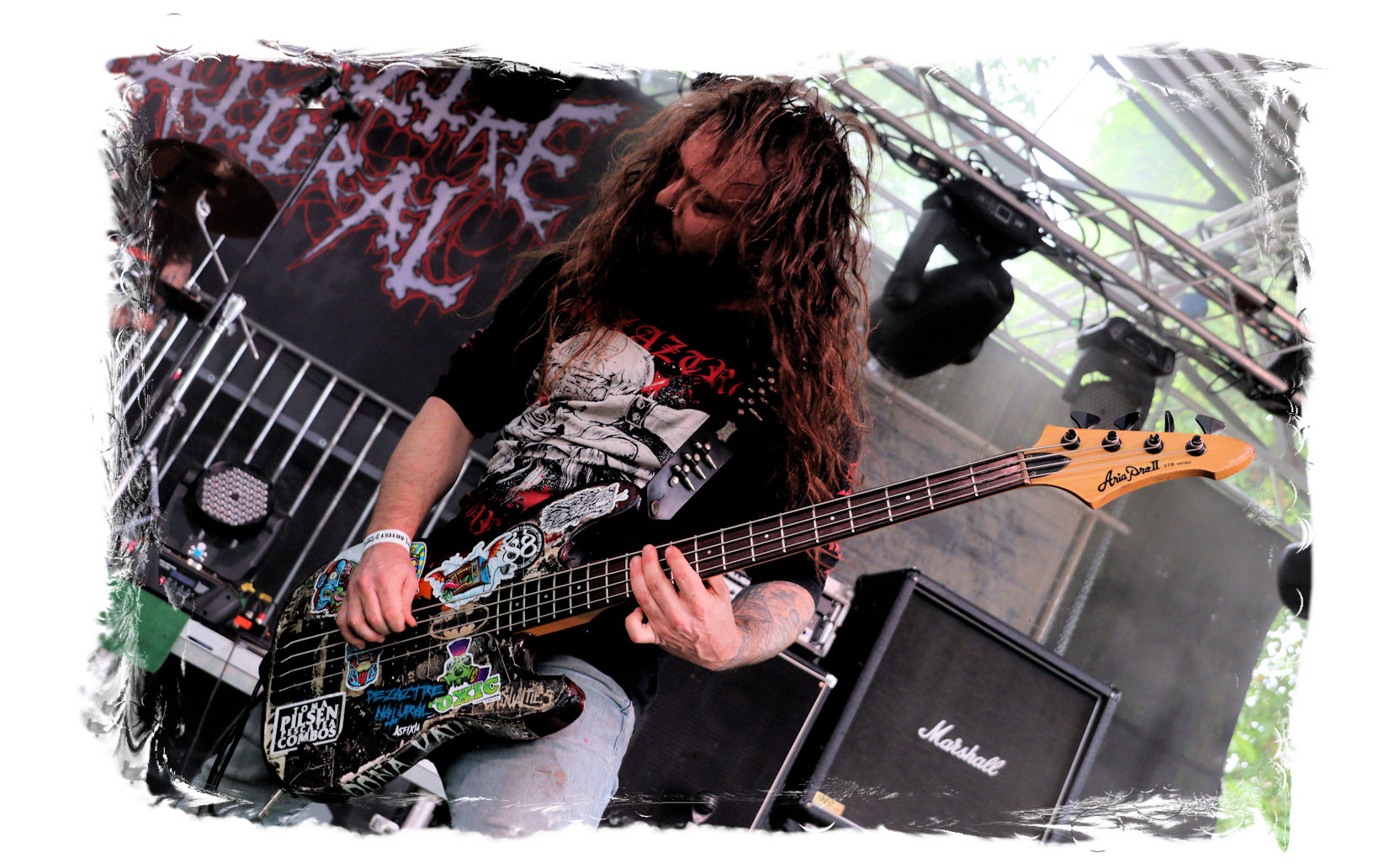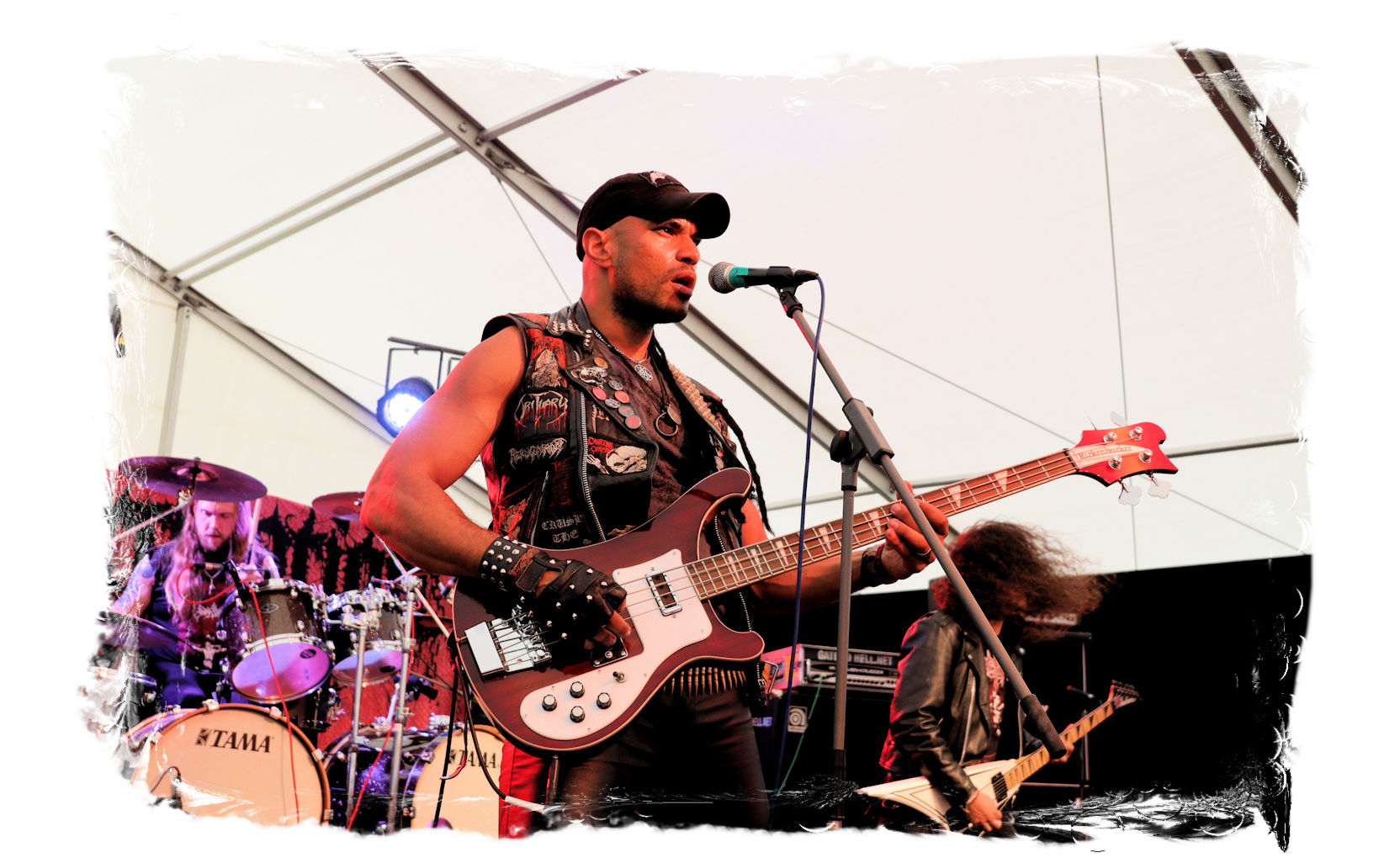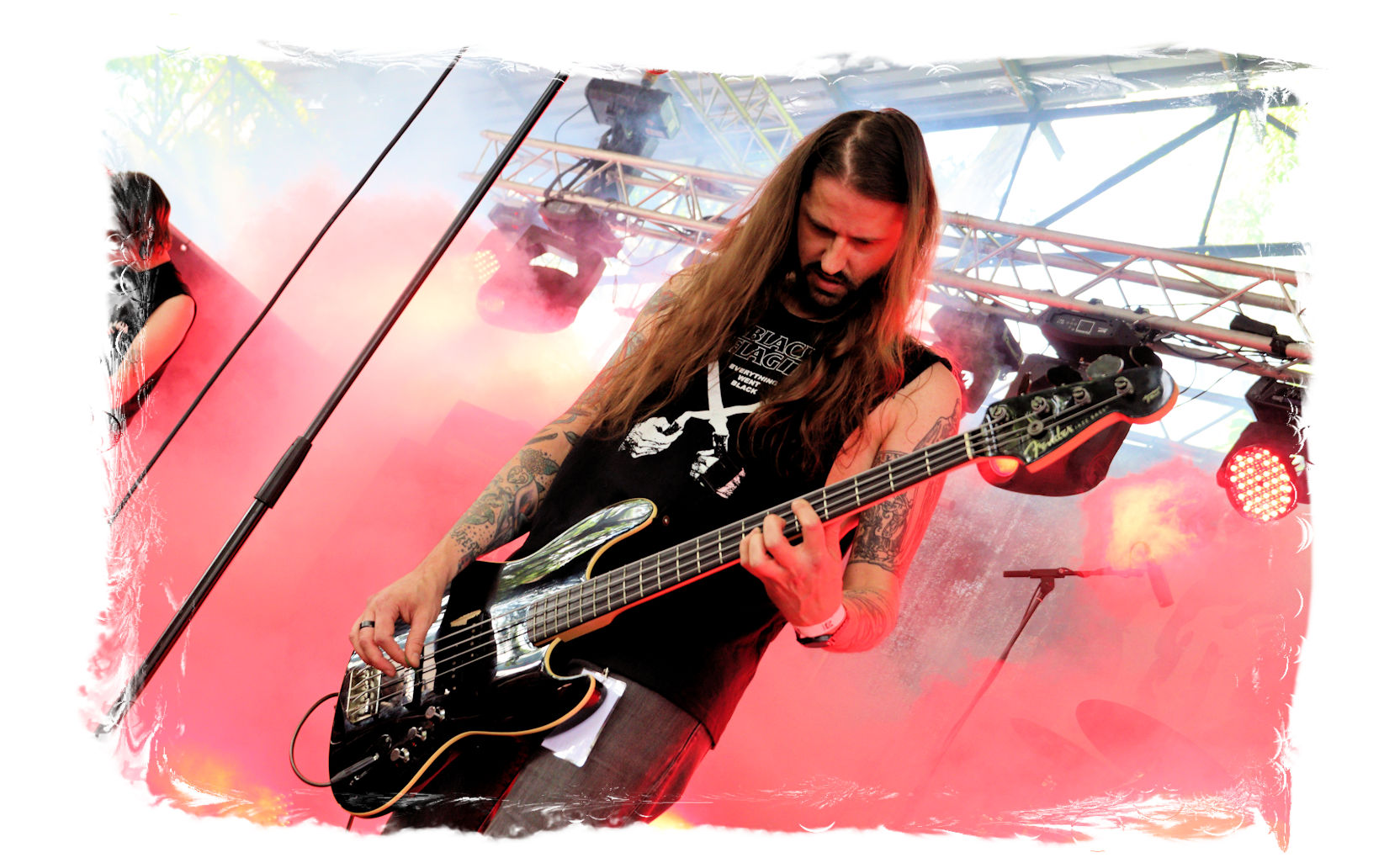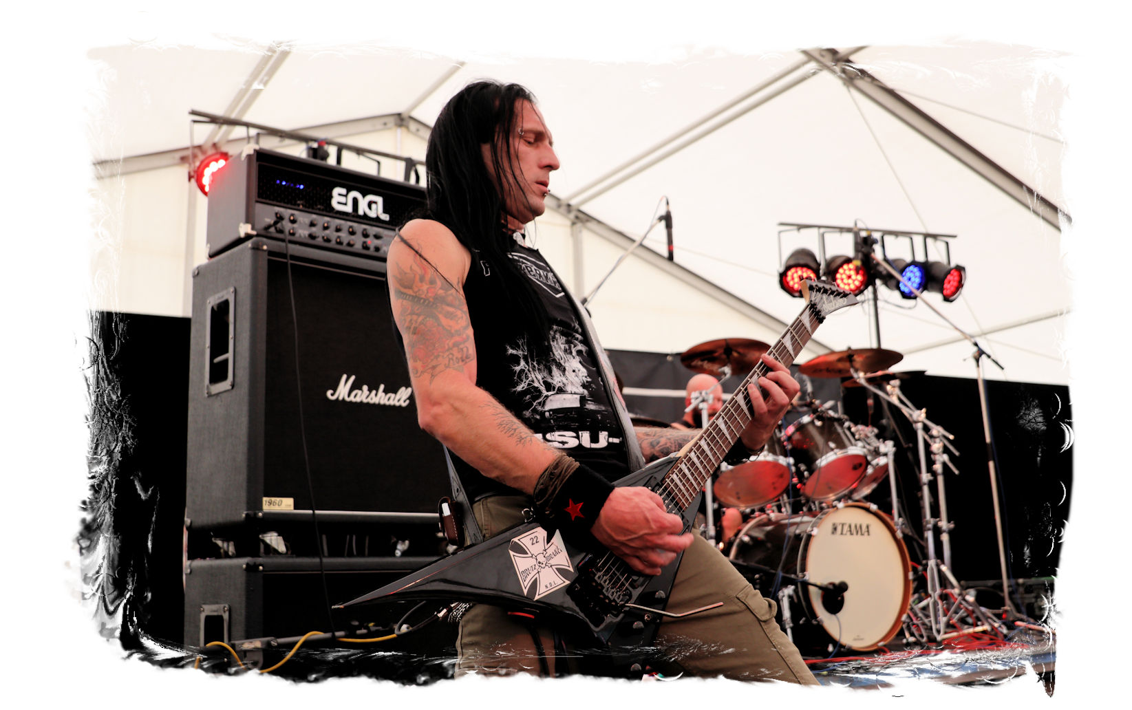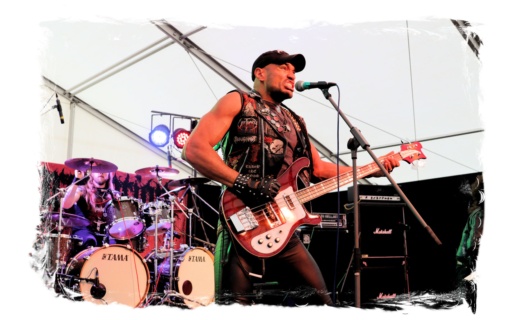 Auf Anraten meines Mitfahrers Lenzner geht es danach ins Zelt, der mir mit Nachdruck schon das gesamte Wochenende erläuterte, dass INCARCERATION an diesem Samstag alternativlos sind. Und was soll ich sagen, das Gemetzel aus Death Metal und Grindcore-Attacken dieser deutsch-brasilianischen Band lässt sich in Sachen Intensität kaum in Worte fassen. Vor allem, was Sänger und Basser Daniel Silva mit seiner Stimme sowie seinem Gesicht veranstaltet, gleicht einem emotionalen Abgrund aus so ziemlich allen negativen Emotionen, die man NIEMALS unter gar keinen Umständen fühlen, geschweige denn nach außen tragen möchte. Unterfüttert von einer unbarmherzigen Soundwalze, präzisen Instrumentalattacken von den Gitarren bis zum Schlagzeug. Ich lege mich mal fest: Wer in der Lage ist seine Gefühle derart in der Musik zu bündeln, der macht im normalen Leben irgendetwas mit Menschen und/oder für das Gemeinwohl. Ein amtliches Konzert, bei dem nicht nur der Rickenbacker am Ende dran glauben muss. Tonträger und Shirts sind danach auf jeden Fall heiß begehrt.