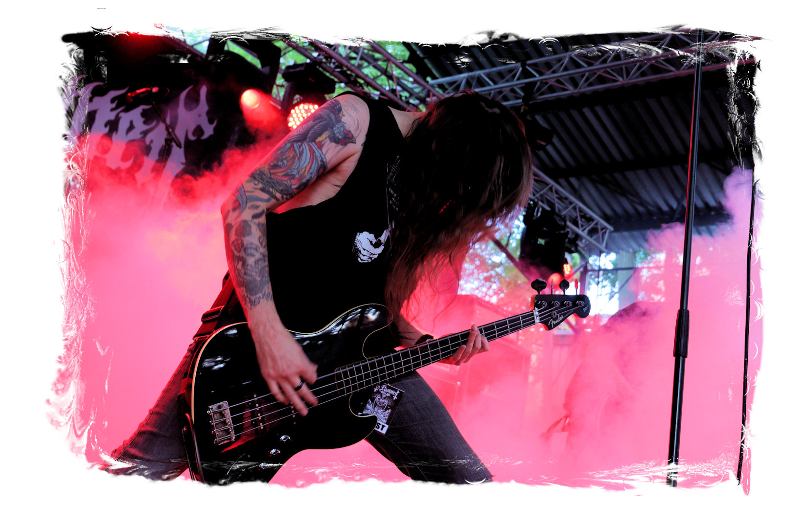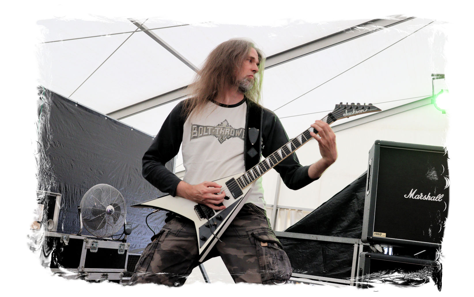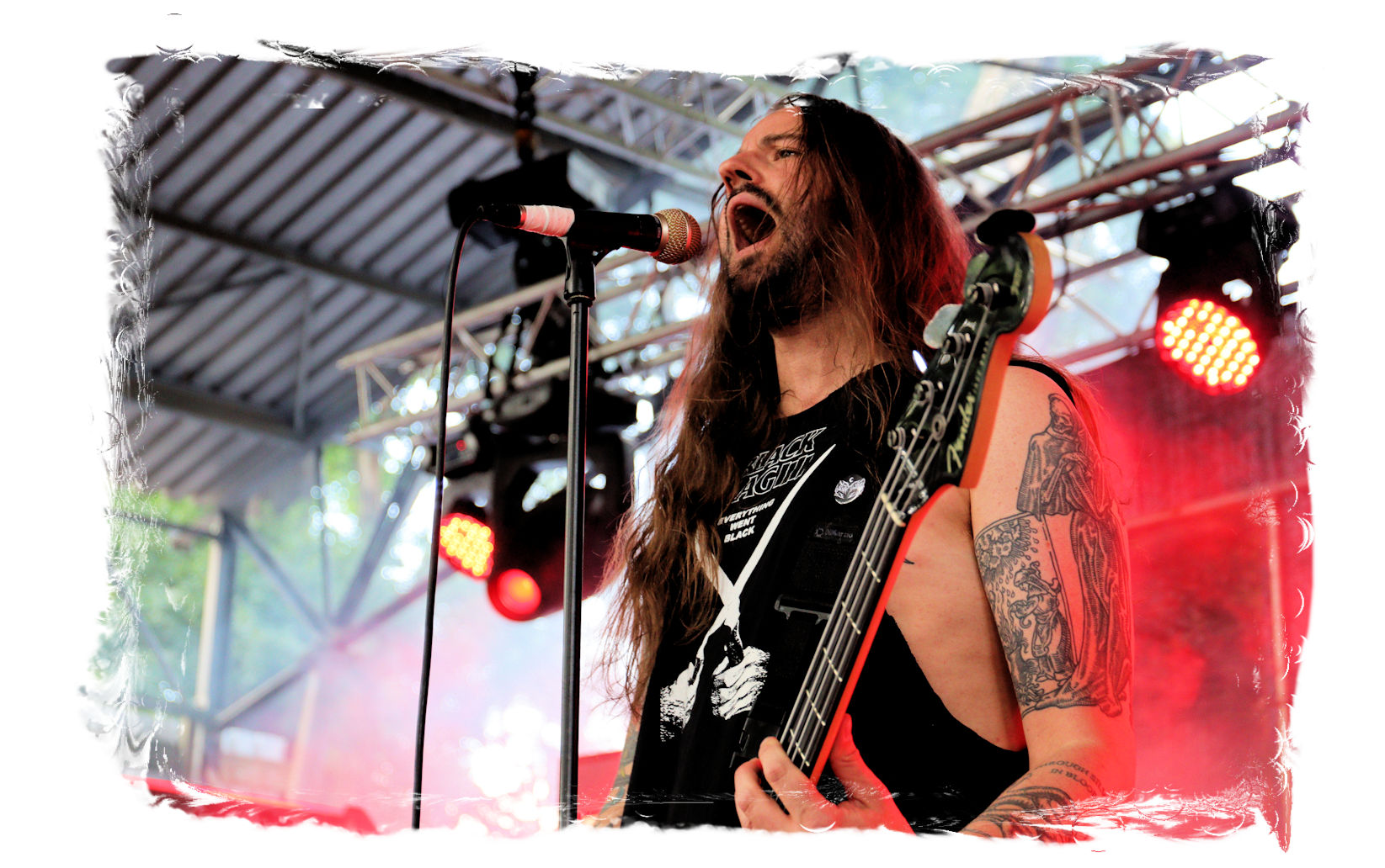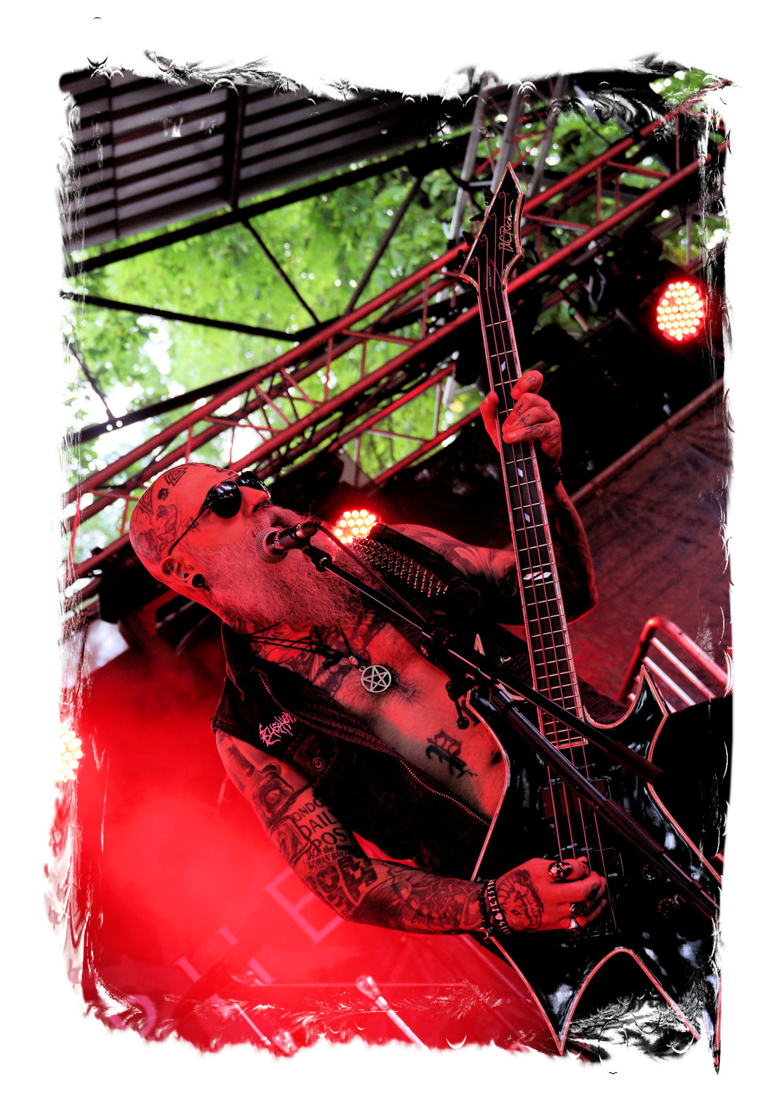 Auf Anraten meines Mitfahrers Lenzner geht es danach ins Zelt, der mir mit Nachdruck schon das gesamte Wochenende erläuterte, dass INCARCERATION an diesem Samstag alternativlos sind. Und was soll ich sagen, das Gemetzel aus Death Metal und Grindcore-Attacken dieser deutsch-brasilianischen Band lässt sich in Sachen Intensität kaum in Worte fassen. Vor allem, was Sänger und Basser Daniel Silva mit seiner Stimme sowie seinem Gesicht veranstaltet, gleicht einem emotionalen Abgrund aus so ziemlich allen negativen Emotionen, die man NIEMALS unter gar keinen Umständen fühlen, geschweige denn nach außen tragen möchte. Unterfüttert von einer unbarmherzigen Soundwalze, präzisen Instrumentalattacken von den Gitarren bis zum Schlagzeug. Ich lege mich mal fest: Wer in der Lage ist seine Gefühle derart in der Musik zu bündeln, der macht im normalen Leben irgendetwas mit Menschen und/oder für das Gemeinwohl. Ein amtliches Konzert, bei dem nicht nur der Rickenbacker am Ende dran glauben muss. Tonträger und Shirts sind danach auf jeden Fall heiß begehrt.
