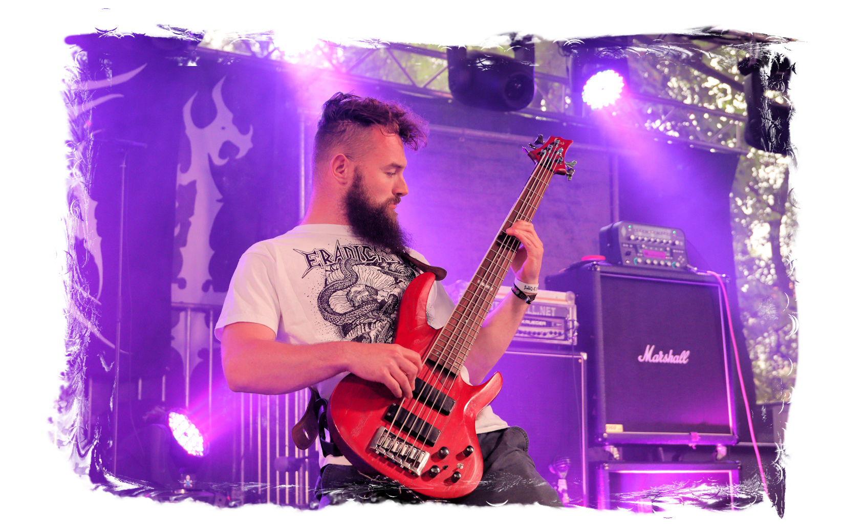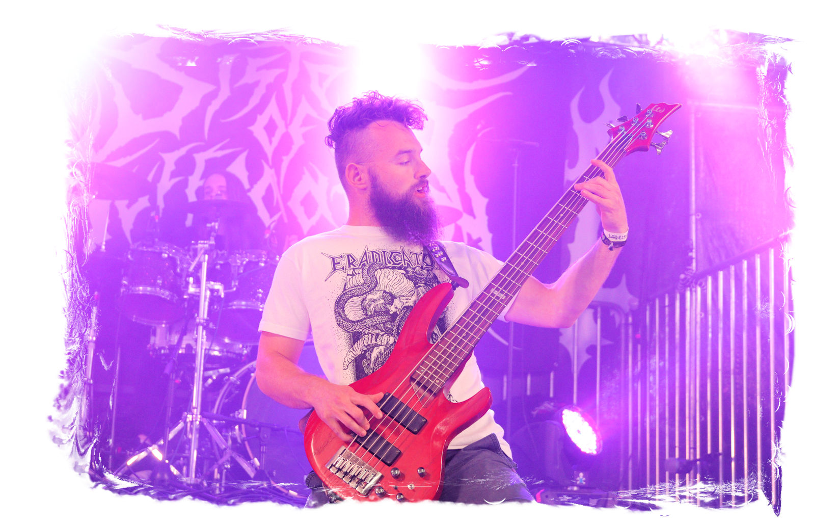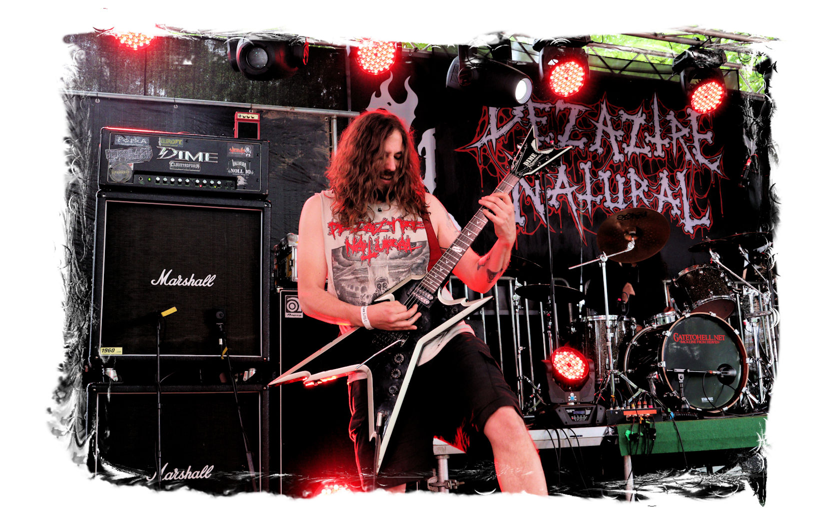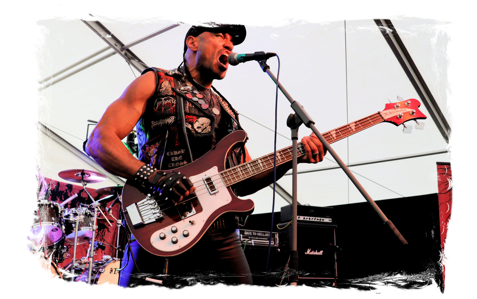 Auf Anraten meines Mitfahrers Lenzner geht es danach ins Zelt, der mir mit Nachdruck schon das gesamte Wochenende erläuterte, dass INCARCERATION an diesem Samstag alternativlos sind. Und was soll ich sagen, das Gemetzel aus Death Metal und Grindcore-Attacken dieser deutsch-brasilianischen Band lässt sich in Sachen Intensität kaum in Worte fassen. Vor allem, was Sänger und Basser Daniel Silva mit seiner Stimme sowie seinem Gesicht veranstaltet, gleicht einem emotionalen Abgrund aus so ziemlich allen negativen Emotionen, die man NIEMALS unter gar keinen Umständen fühlen, geschweige denn nach außen tragen möchte. Unterfüttert von einer unbarmherzigen Soundwalze, präzisen Instrumentalattacken von den Gitarren bis zum Schlagzeug. Ich lege mich mal fest: Wer in der Lage ist seine Gefühle derart in der Musik zu bündeln, der macht im normalen Leben irgendetwas mit Menschen und/oder für das Gemeinwohl. Ein amtliches Konzert, bei dem nicht nur der Rickenbacker am Ende dran glauben muss. Tonträger und Shirts sind danach auf jeden Fall heiß begehrt.