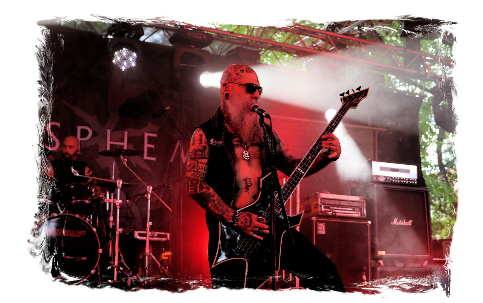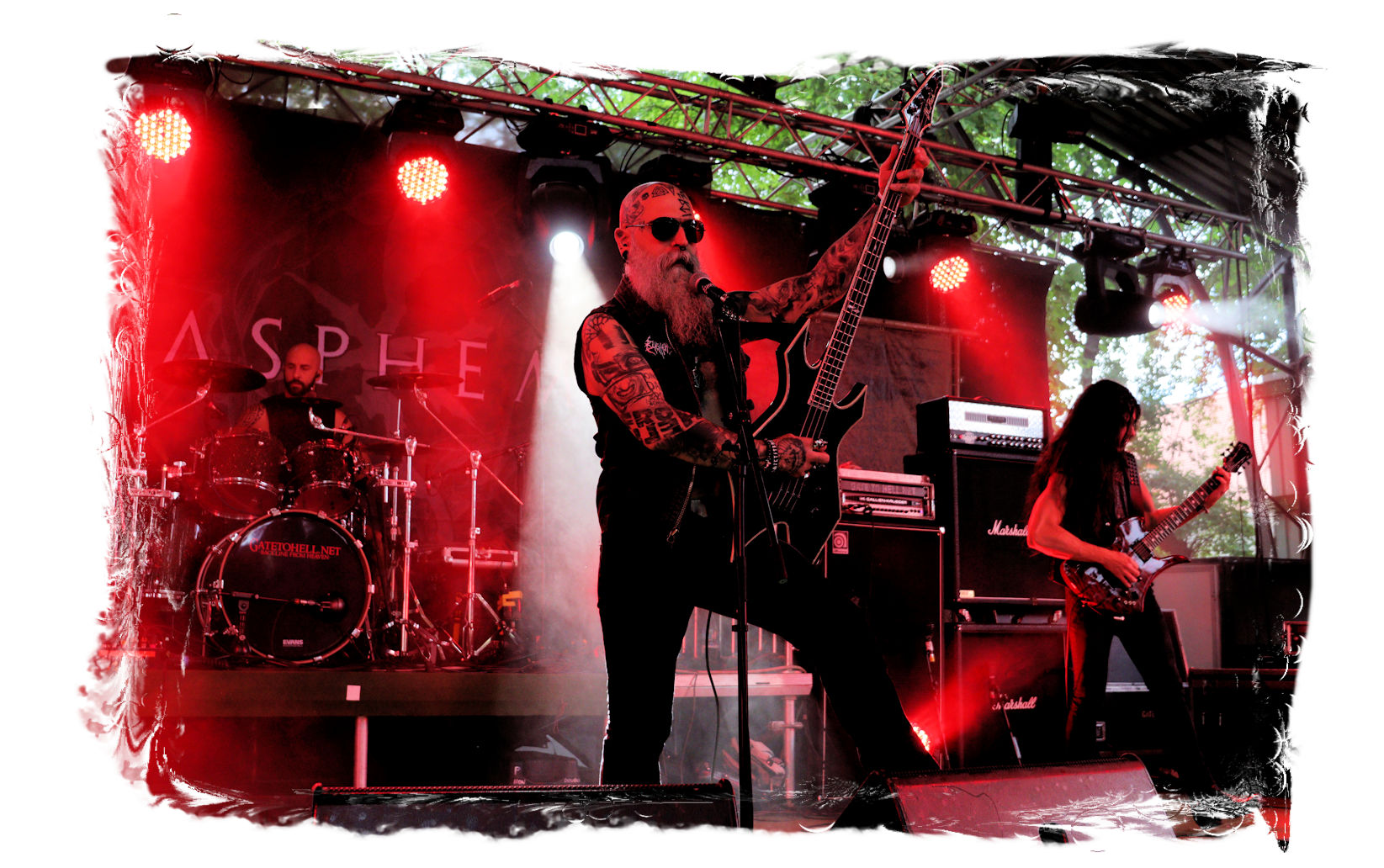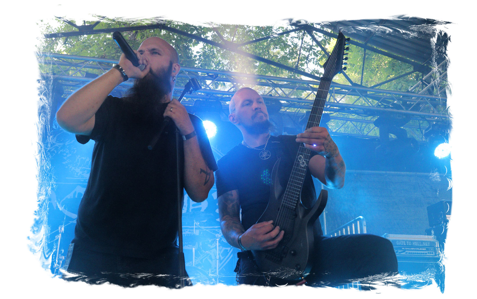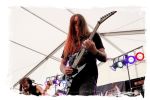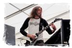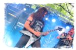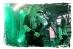 Nach Ultha geht es wesentlich knackiger, robuster, technisch versiert und massiv auf der Hauptbühne weiter. Die Italiener von BLASPHEMER trümmern nach anfänglichen technischen Schwierigkeiten beim Soundcheck über den Entenfang. Wer aufgrund des Namens Assoziationen mit chaotischen Black-Thrash der alten Schule wittert, der liegt bei der Band um Sänger/Gitarrist Simone Brego, welcher eine beachtliche Erscheinung ist, absolut falsch. Stattdessen fällt der Apfel nicht weit vom Beheaded-Stamm, wenn auch etwas weniger verkopft. Die Italiener bieten eine agile Todesmetall-Breitseite der alten Schule, die nicht selten an die Glanzzeiten von Morbid Angel und Co. angelehnt ist. Ist jetzt nichts Besonderes aber man kommt damit gut durch den Nachmittag.