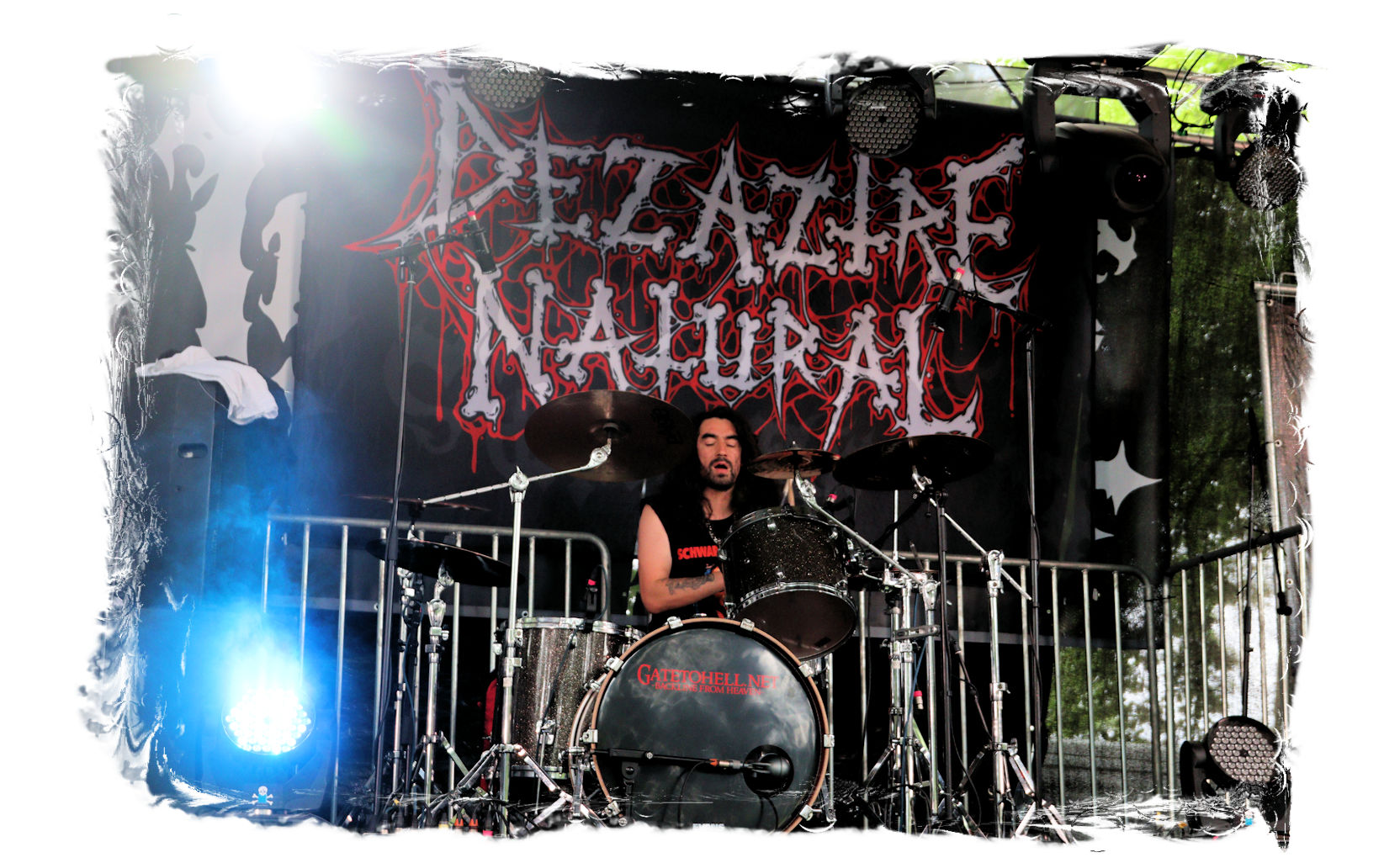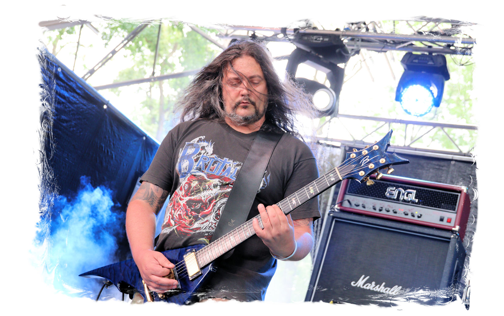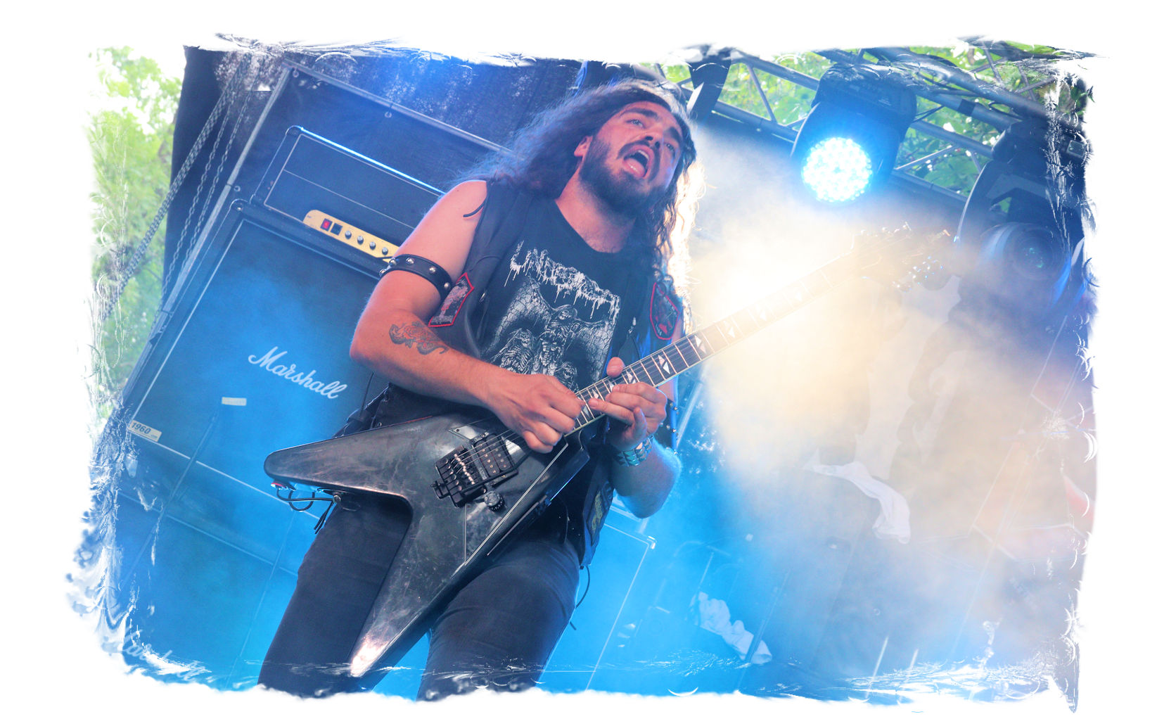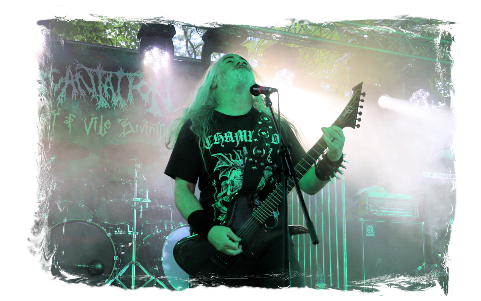 Nach Ultha geht es wesentlich knackiger, robuster, technisch versiert und massiv auf der Hauptbühne weiter. Die Italiener von BLASPHEMER trümmern nach anfänglichen technischen Schwierigkeiten beim Soundcheck über den Entenfang. Wer aufgrund des Namens Assoziationen mit chaotischen Black-Thrash der alten Schule wittert, der liegt bei der Band um Sänger/Gitarrist Simone Brego, welcher eine beachtliche Erscheinung ist, absolut falsch. Stattdessen fällt der Apfel nicht weit vom Beheaded-Stamm, wenn auch etwas weniger verkopft. Die Italiener bieten eine agile Todesmetall-Breitseite der alten Schule, die nicht selten an die Glanzzeiten von Morbid Angel und Co. angelehnt ist. Ist jetzt nichts Besonderes aber man kommt damit gut durch den Nachmittag.