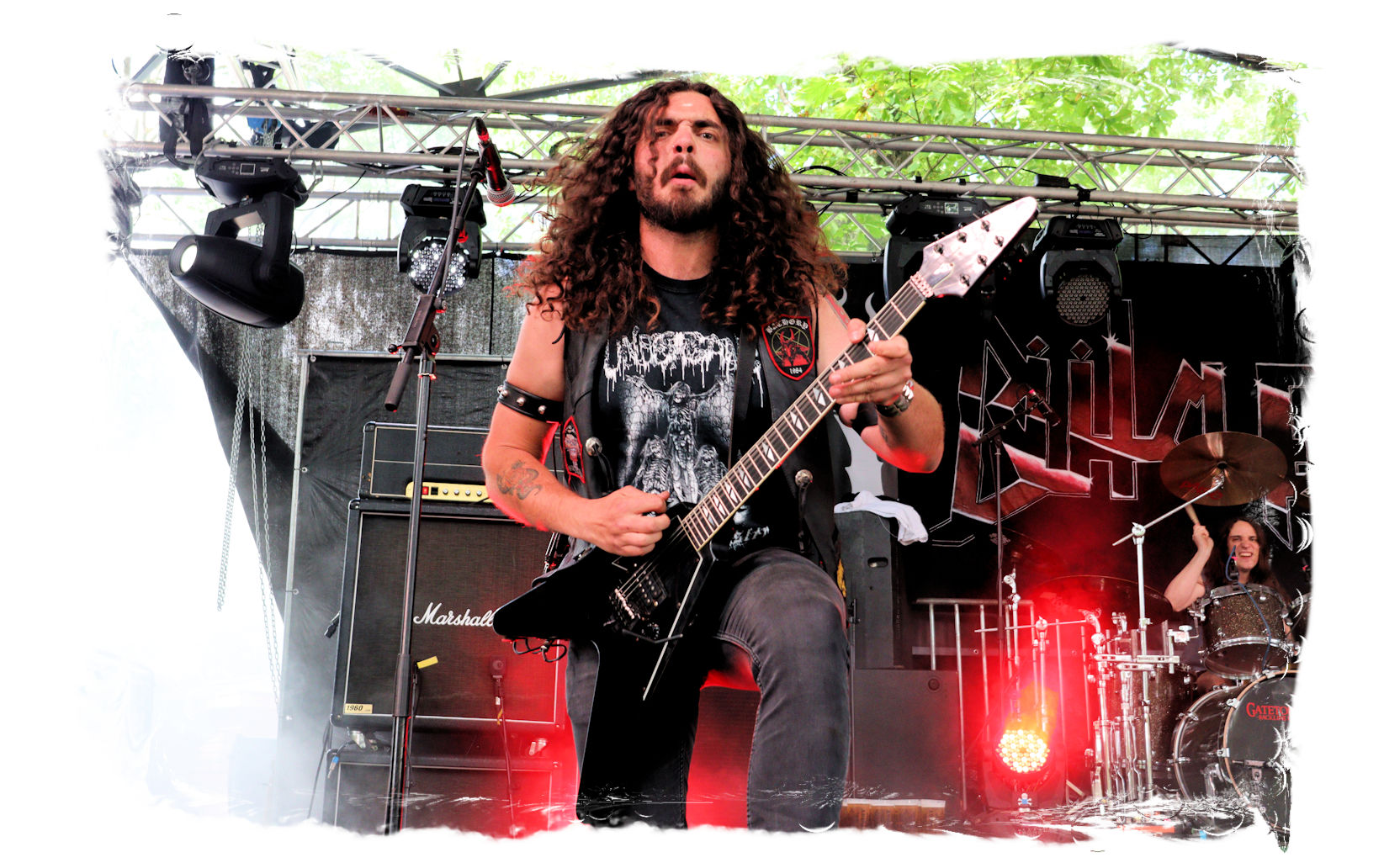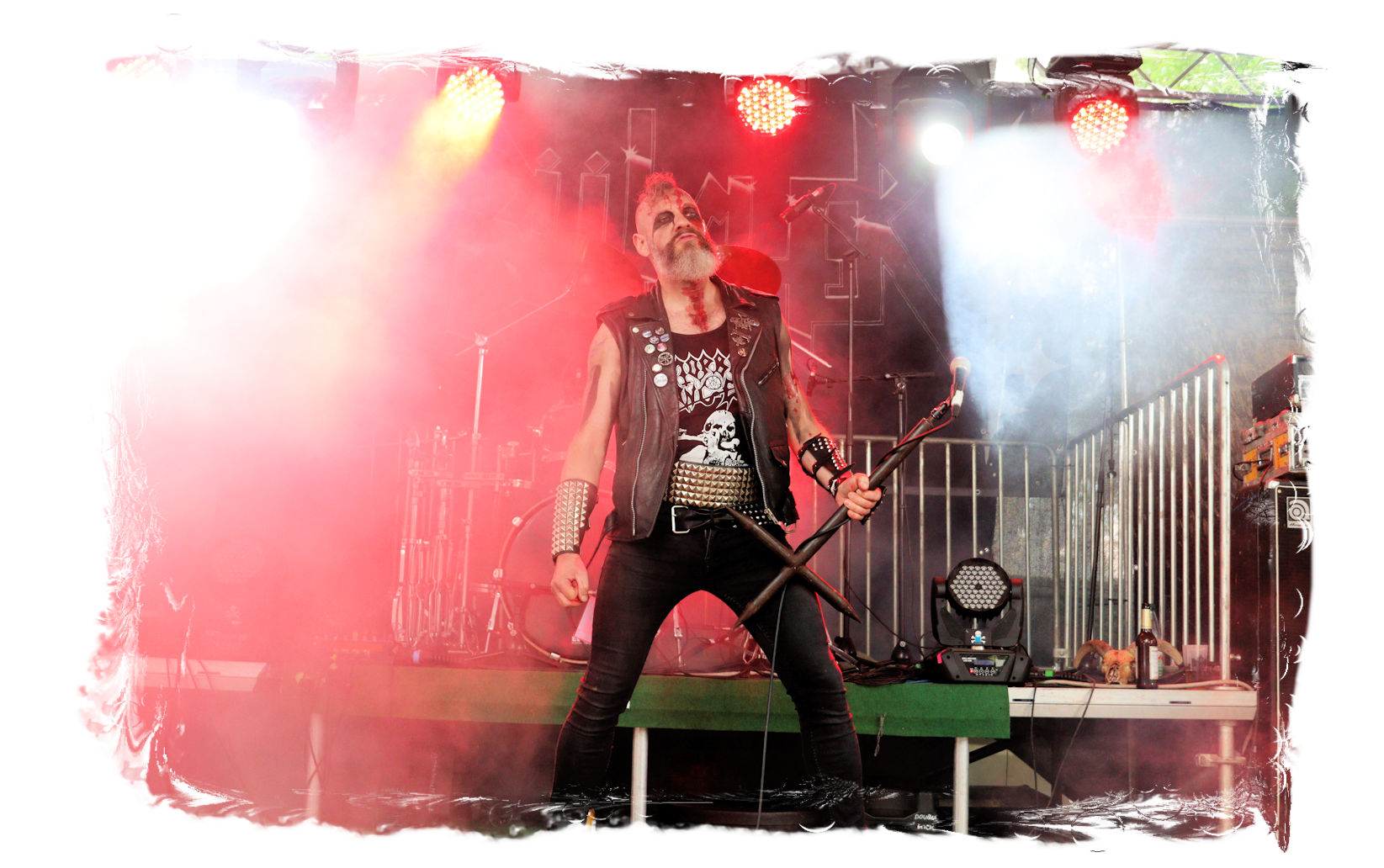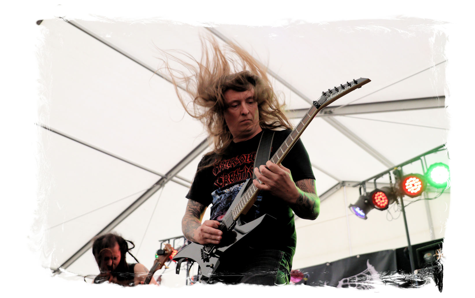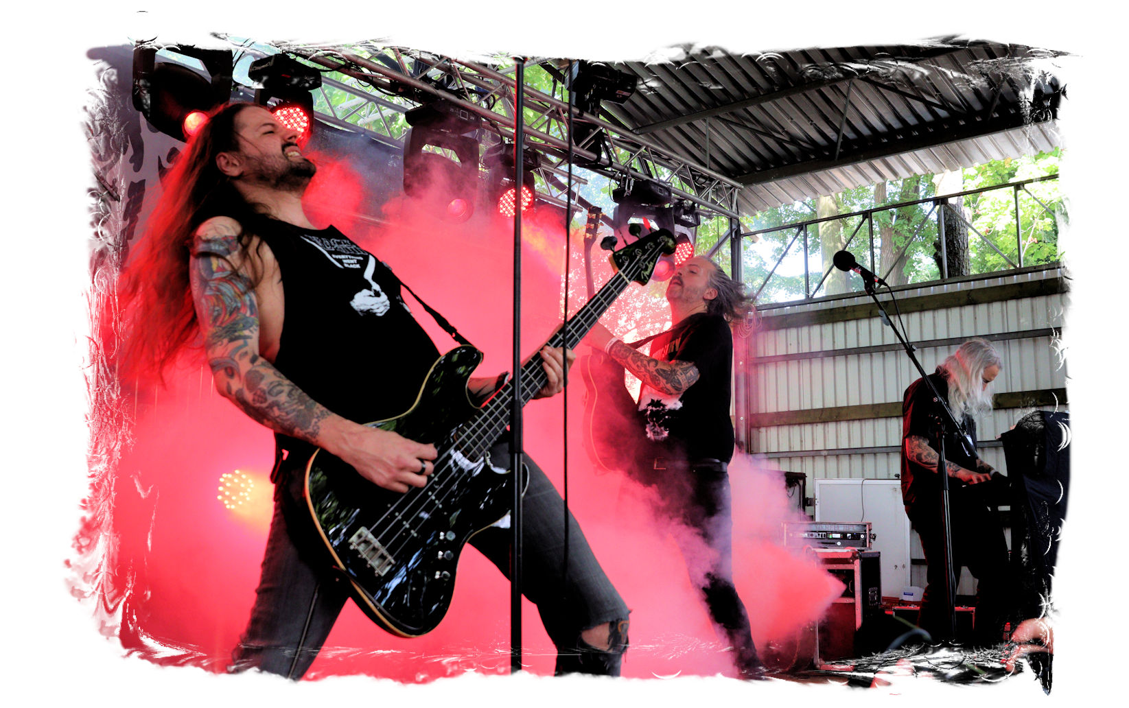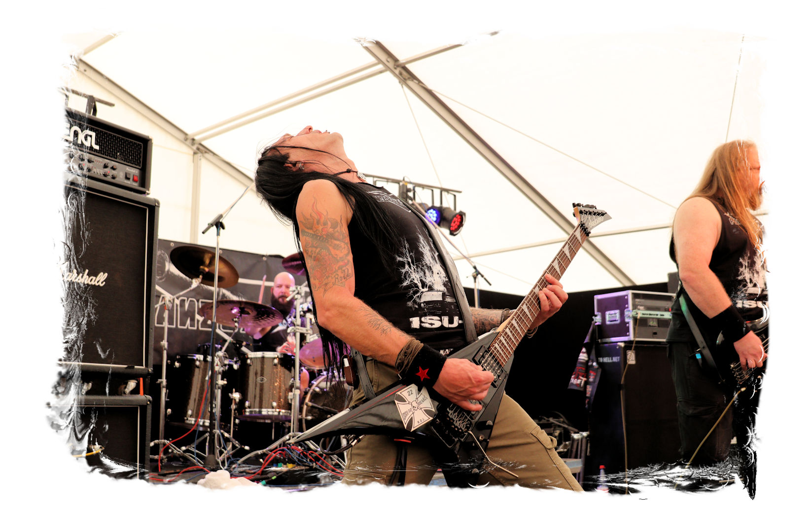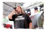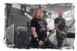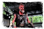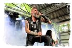 Wie schon bei Panzerkreuzer hatte ich mir von DEHUMAN REIGN im Zelt ebenfalls deutlich mehr versprochen. In Sachen Performance etwas zu steif und musikalisch auf Dauer etwas zu eintönig. Auf ganzer Linie überraschen dagegen die GDR-Urgesteine von M.A.D. Das Trio, das als Band schon zu DDR-Zeiten aktiv war, zündet ein amtliches und fettes Death Metal – Gewitter, das einem die Ohren freibläst und eine perfekte Vorlage für das erste Highlight des Abends ist.