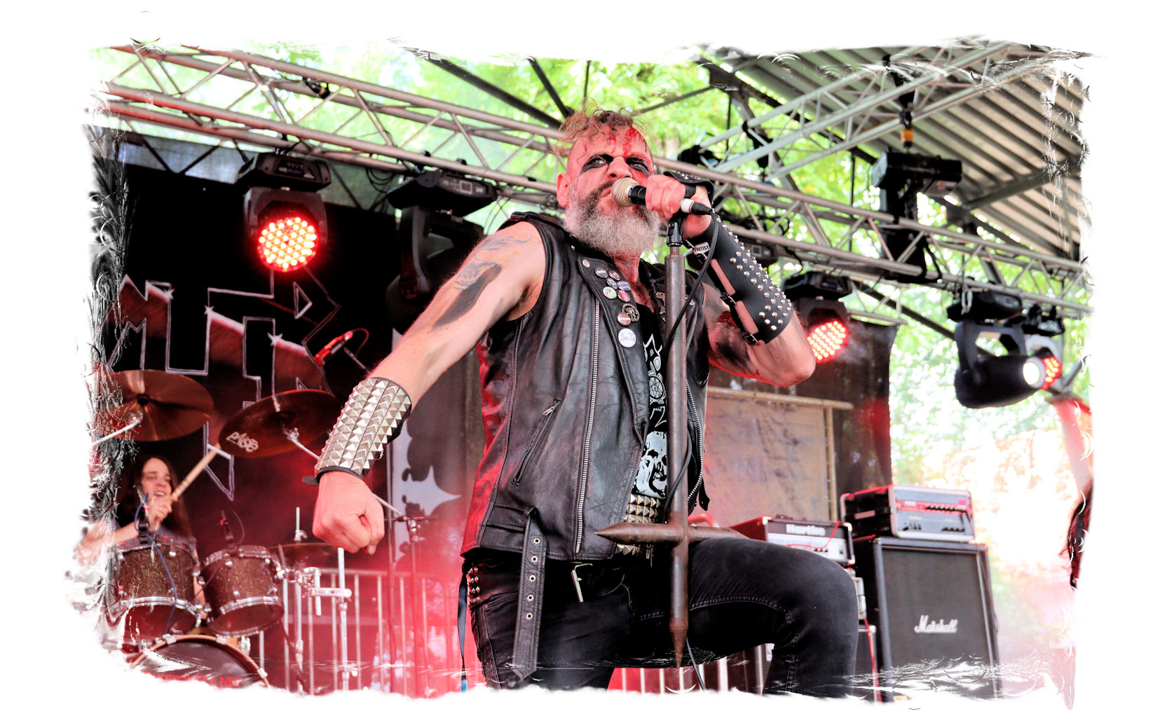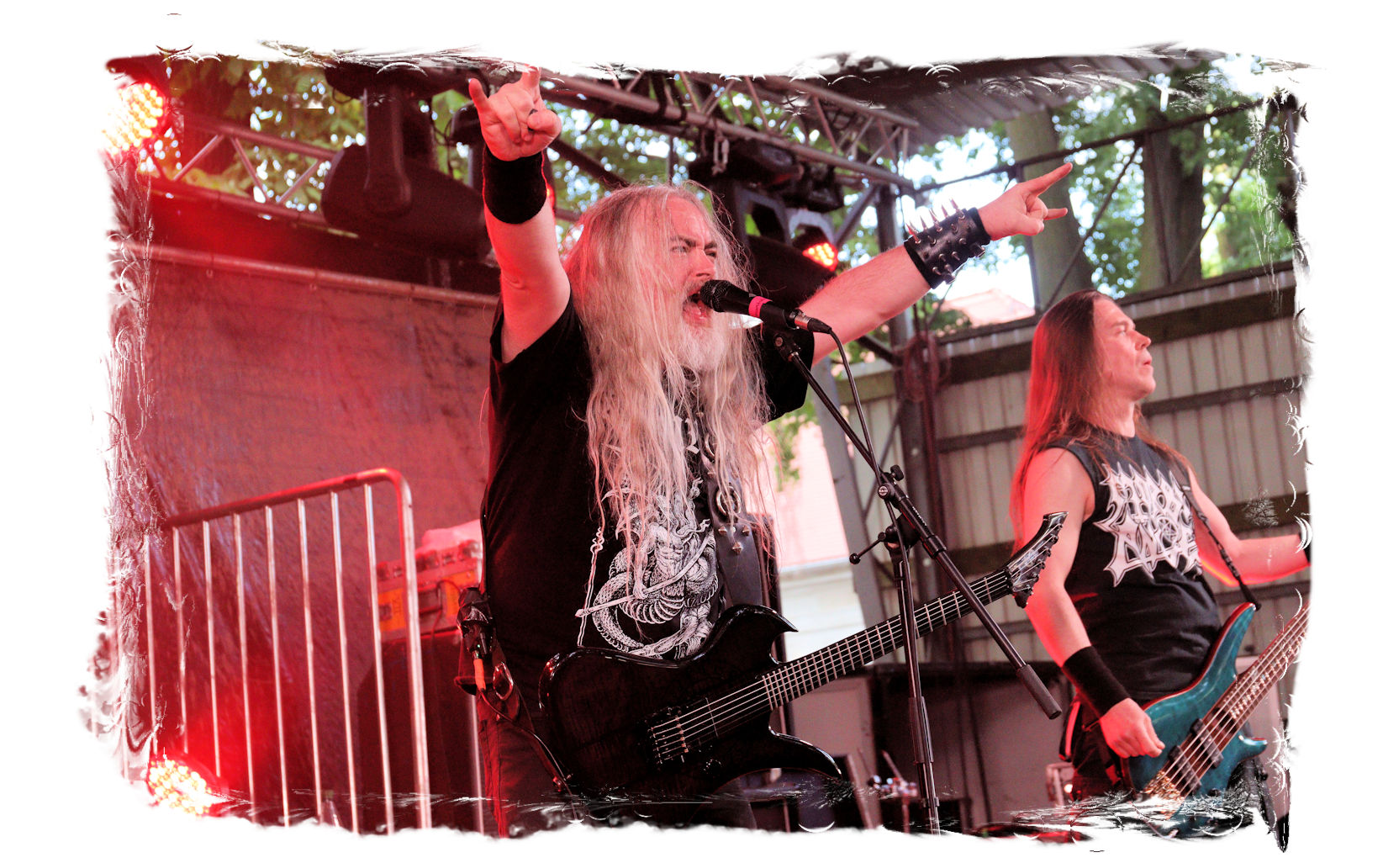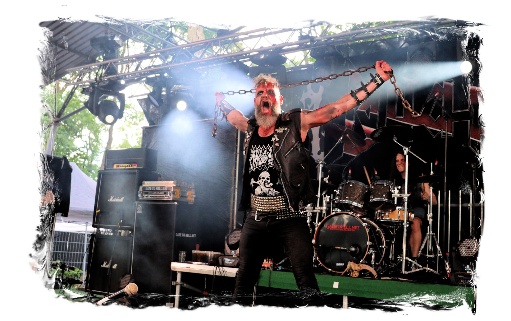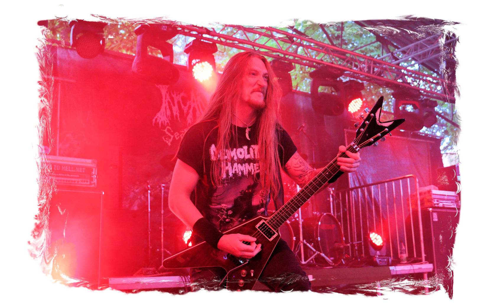 Wie schon bei Panzerkreuzer hatte ich mir von DEHUMAN REIGN im Zelt ebenfalls deutlich mehr versprochen. In Sachen Performance etwas zu steif und musikalisch auf Dauer etwas zu eintönig. Auf ganzer Linie überraschen dagegen die GDR-Urgesteine von M.A.D. Das Trio, das als Band schon zu DDR-Zeiten aktiv war, zündet ein amtliches und fettes Death Metal – Gewitter, das einem die Ohren freibläst und eine perfekte Vorlage für das erste Highlight des Abends ist.