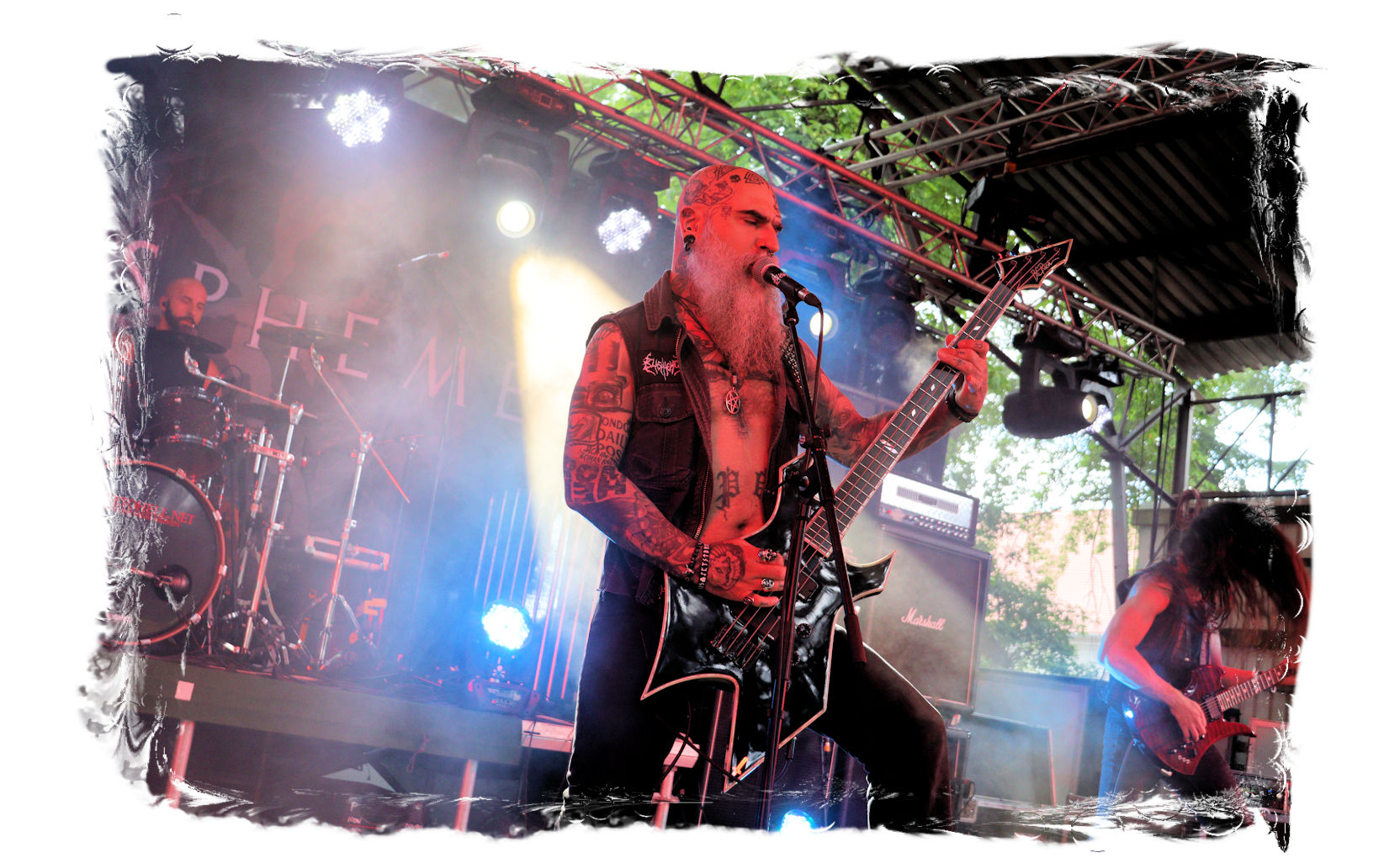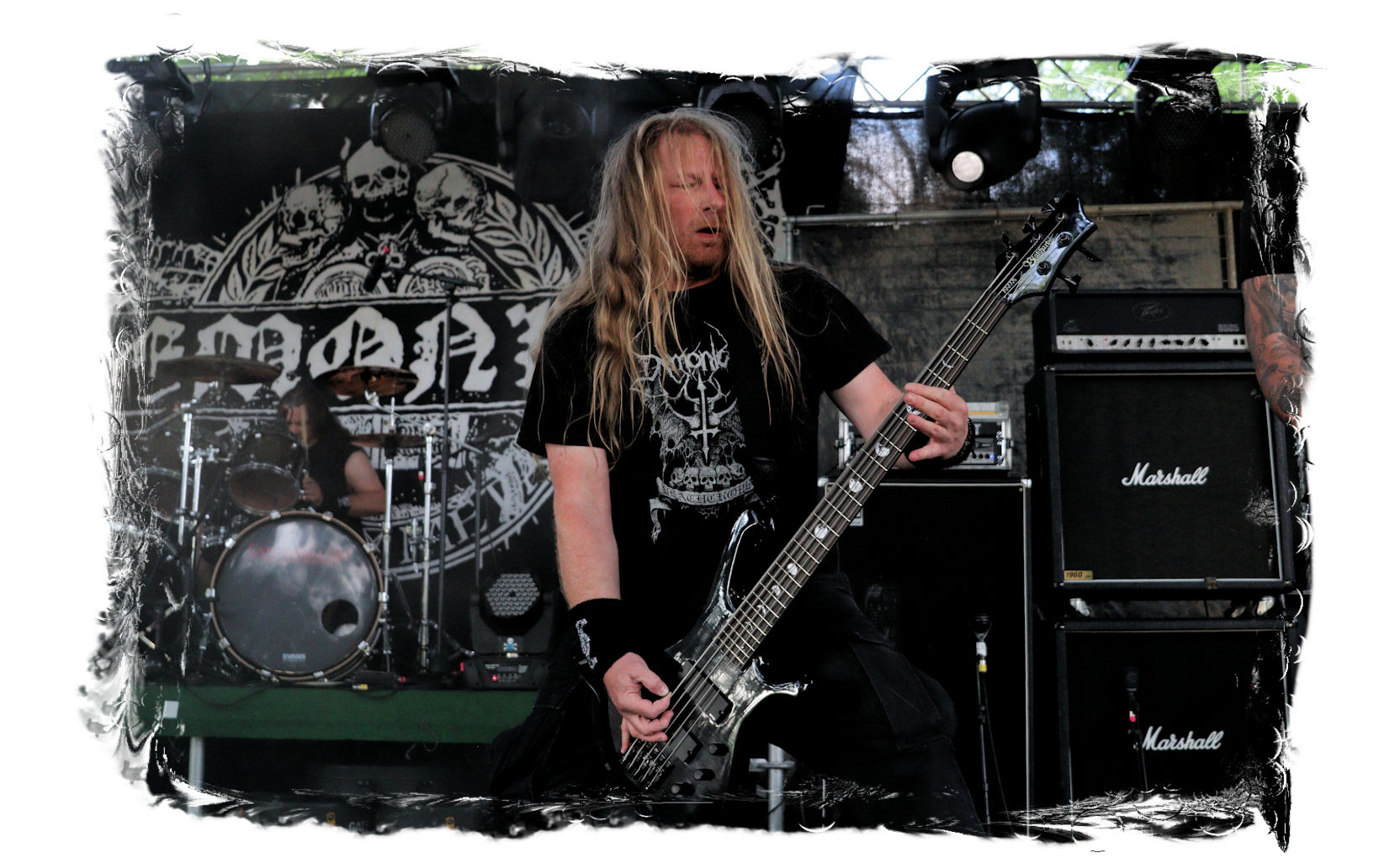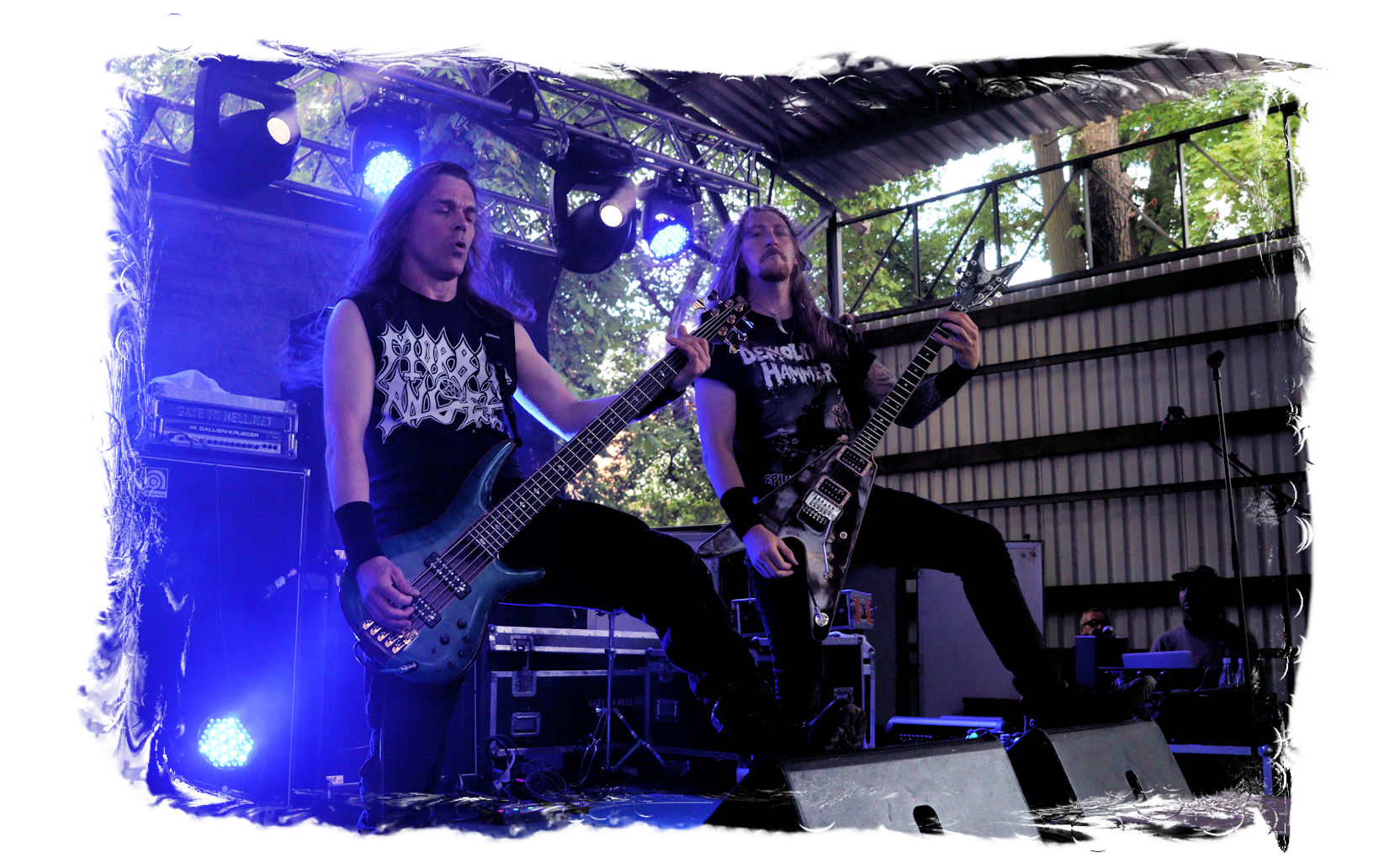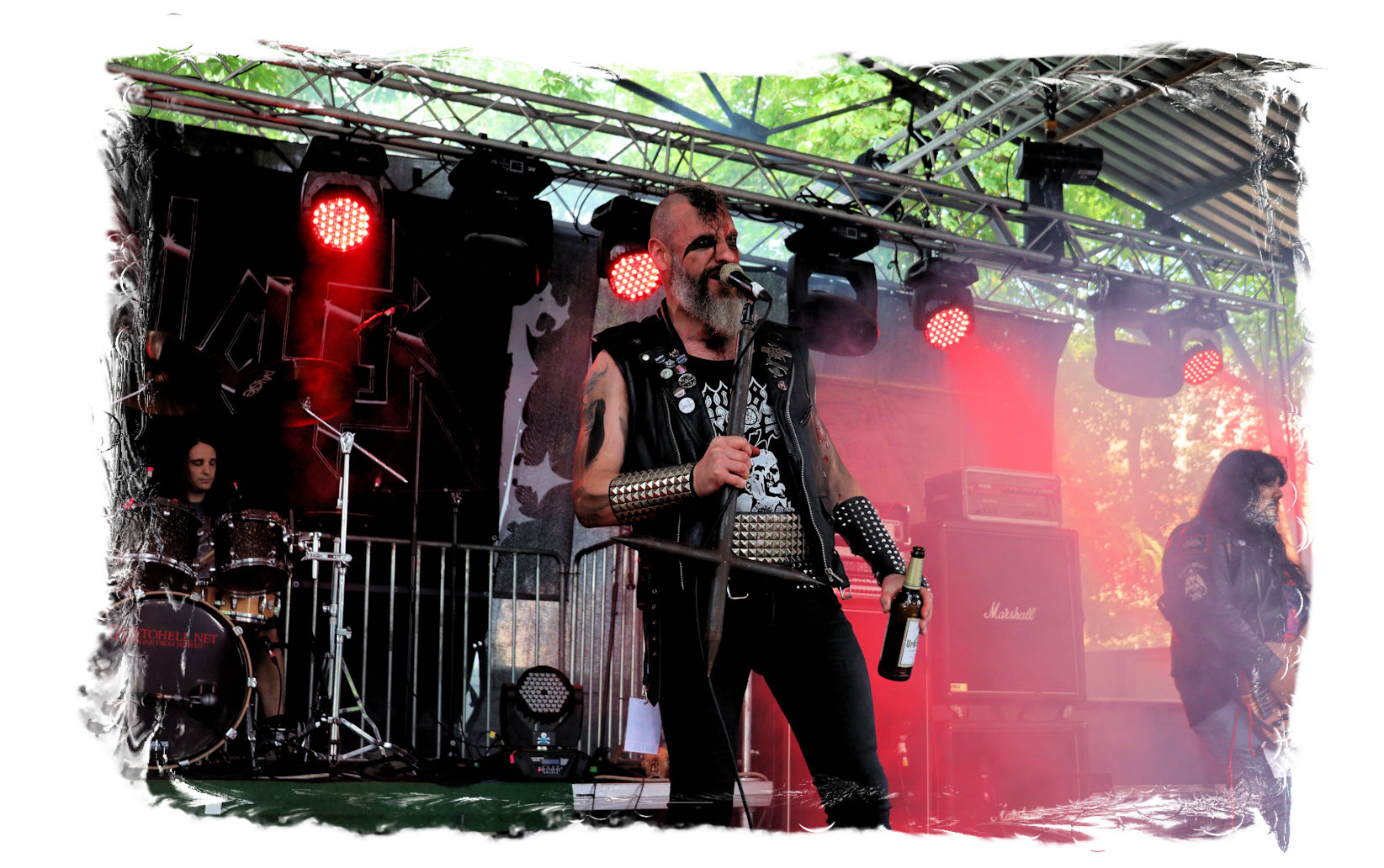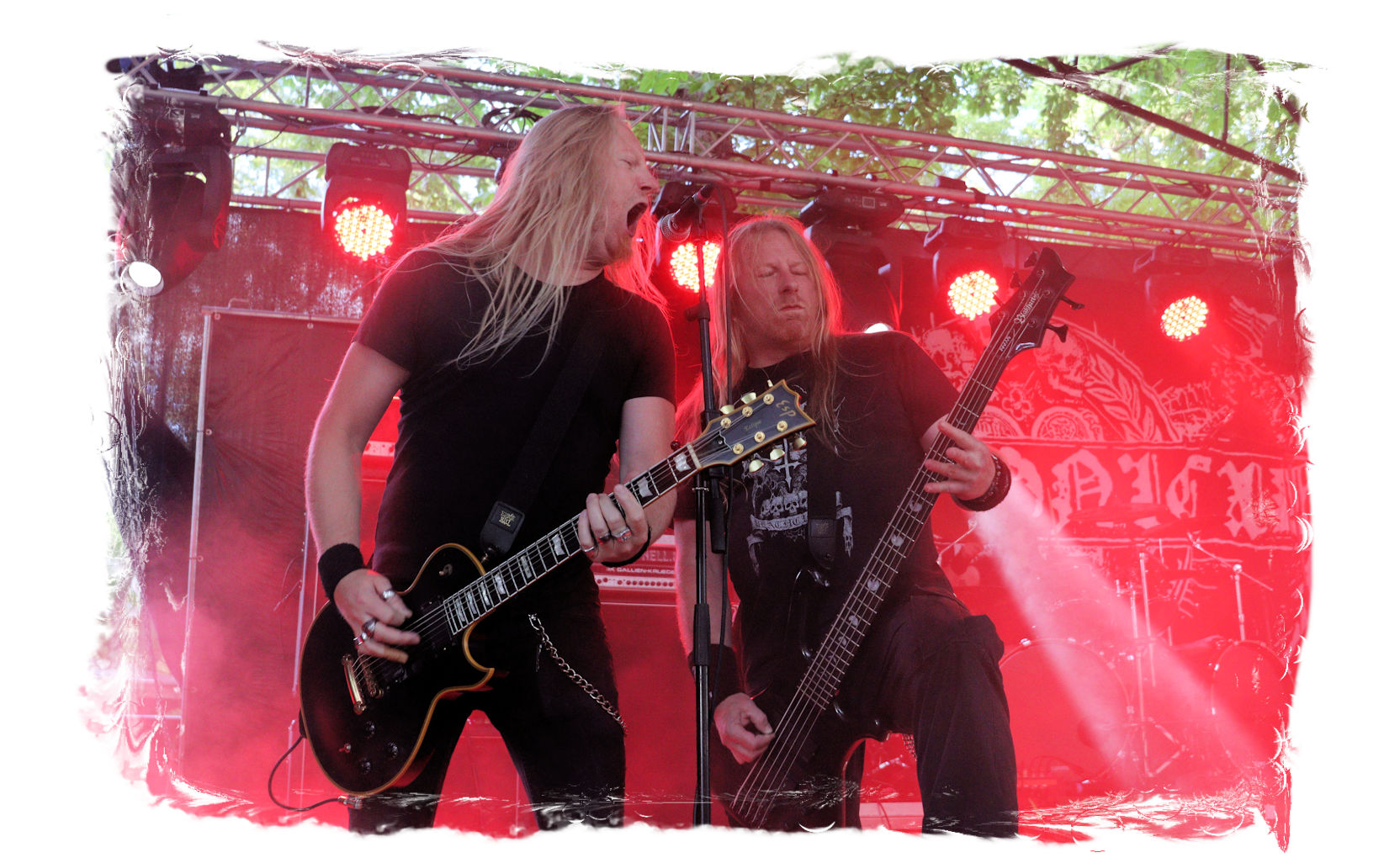 Wie schon bei Panzerkreuzer hatte ich mir von DEHUMAN REIGN im Zelt ebenfalls deutlich mehr versprochen. In Sachen Performance etwas zu steif und musikalisch auf Dauer etwas zu eintönig. Auf ganzer Linie überraschen dagegen die GDR-Urgesteine von M.A.D. Das Trio, das als Band schon zu DDR-Zeiten aktiv war, zündet ein amtliches und fettes Death Metal – Gewitter, das einem die Ohren freibläst und eine perfekte Vorlage für das erste Highlight des Abends ist.