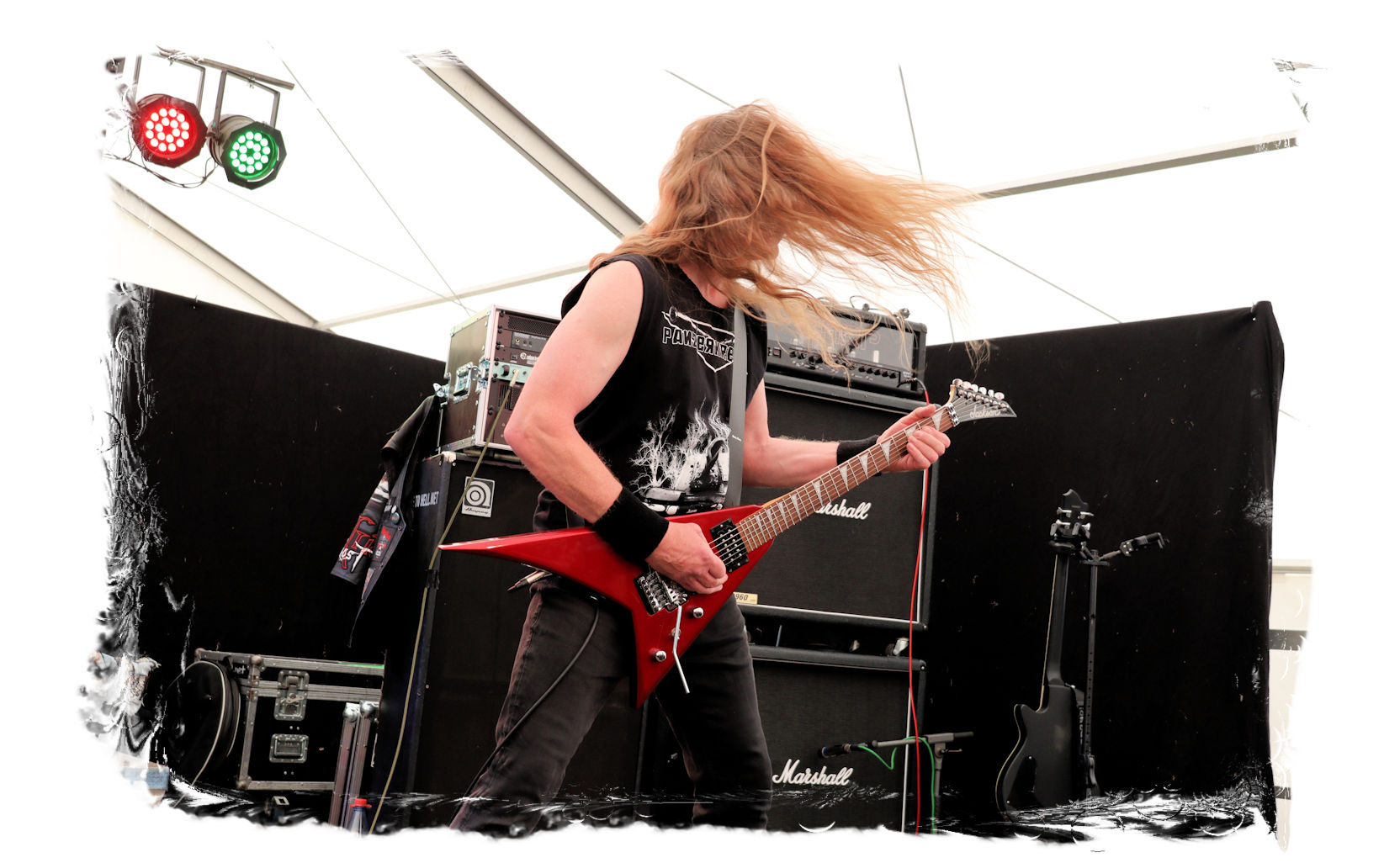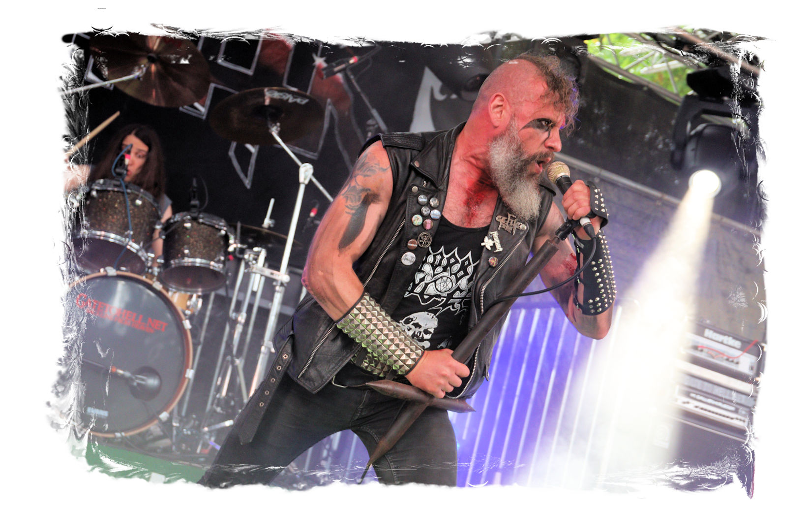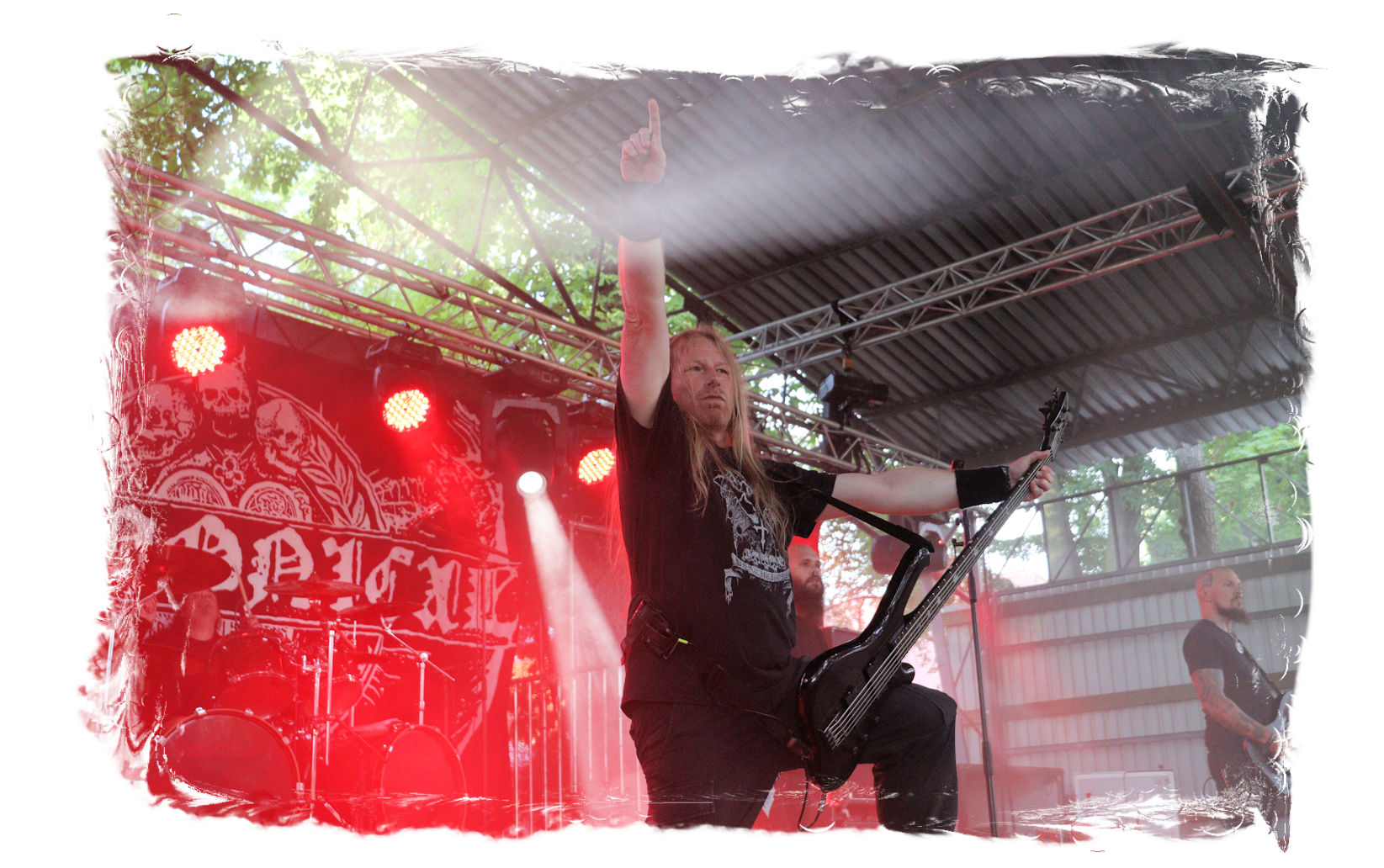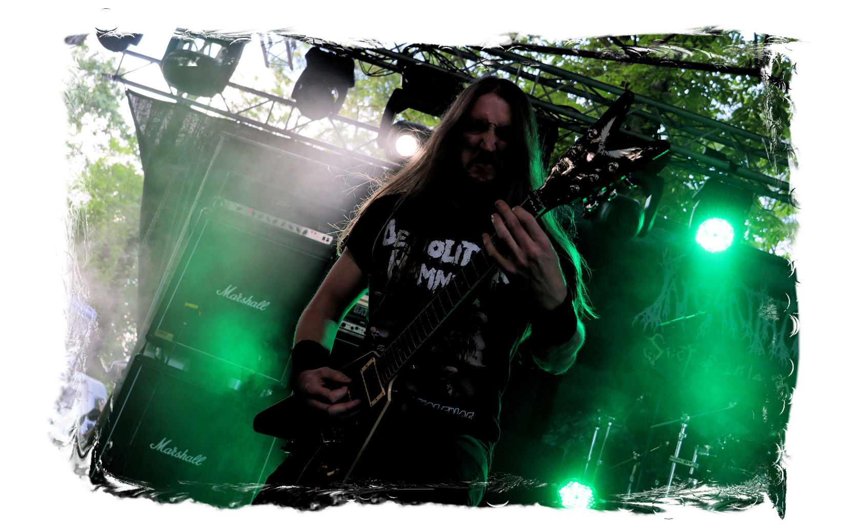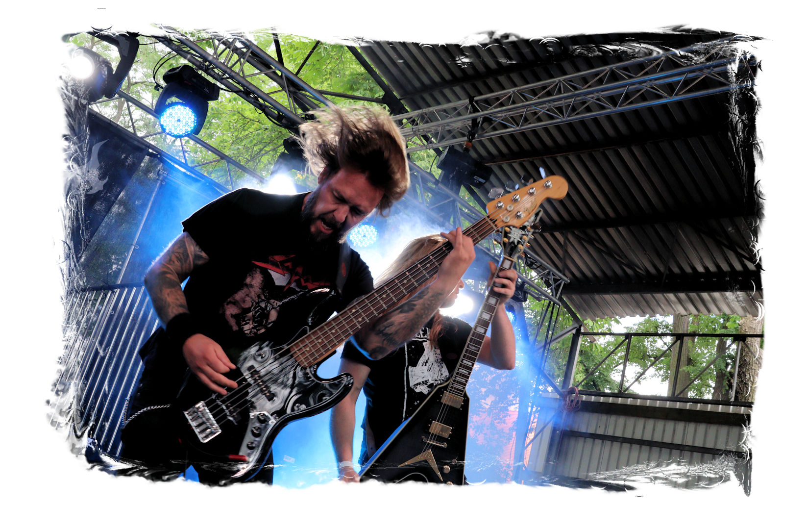 Wie schon bei Panzerkreuzer hatte ich mir von DEHUMAN REIGN im Zelt ebenfalls deutlich mehr versprochen. In Sachen Performance etwas zu steif und musikalisch auf Dauer etwas zu eintönig. Auf ganzer Linie überraschen dagegen die GDR-Urgesteine von M.A.D. Das Trio, das als Band schon zu DDR-Zeiten aktiv war, zündet ein amtliches und fettes Death Metal – Gewitter, das einem die Ohren freibläst und eine perfekte Vorlage für das erste Highlight des Abends ist.