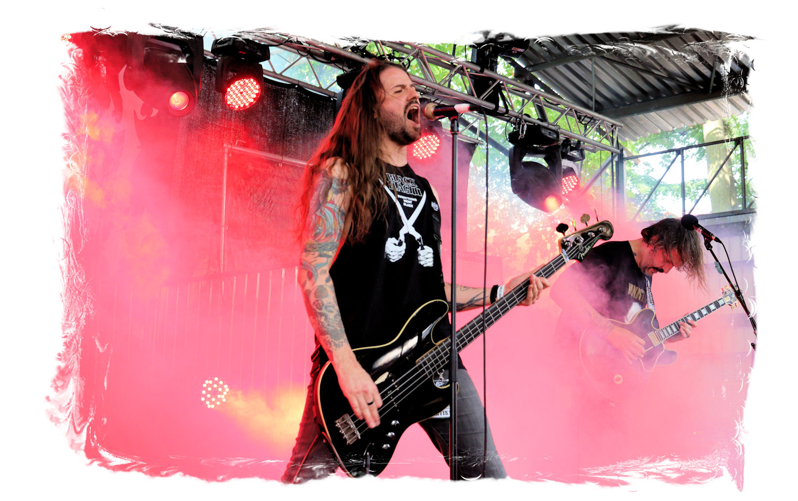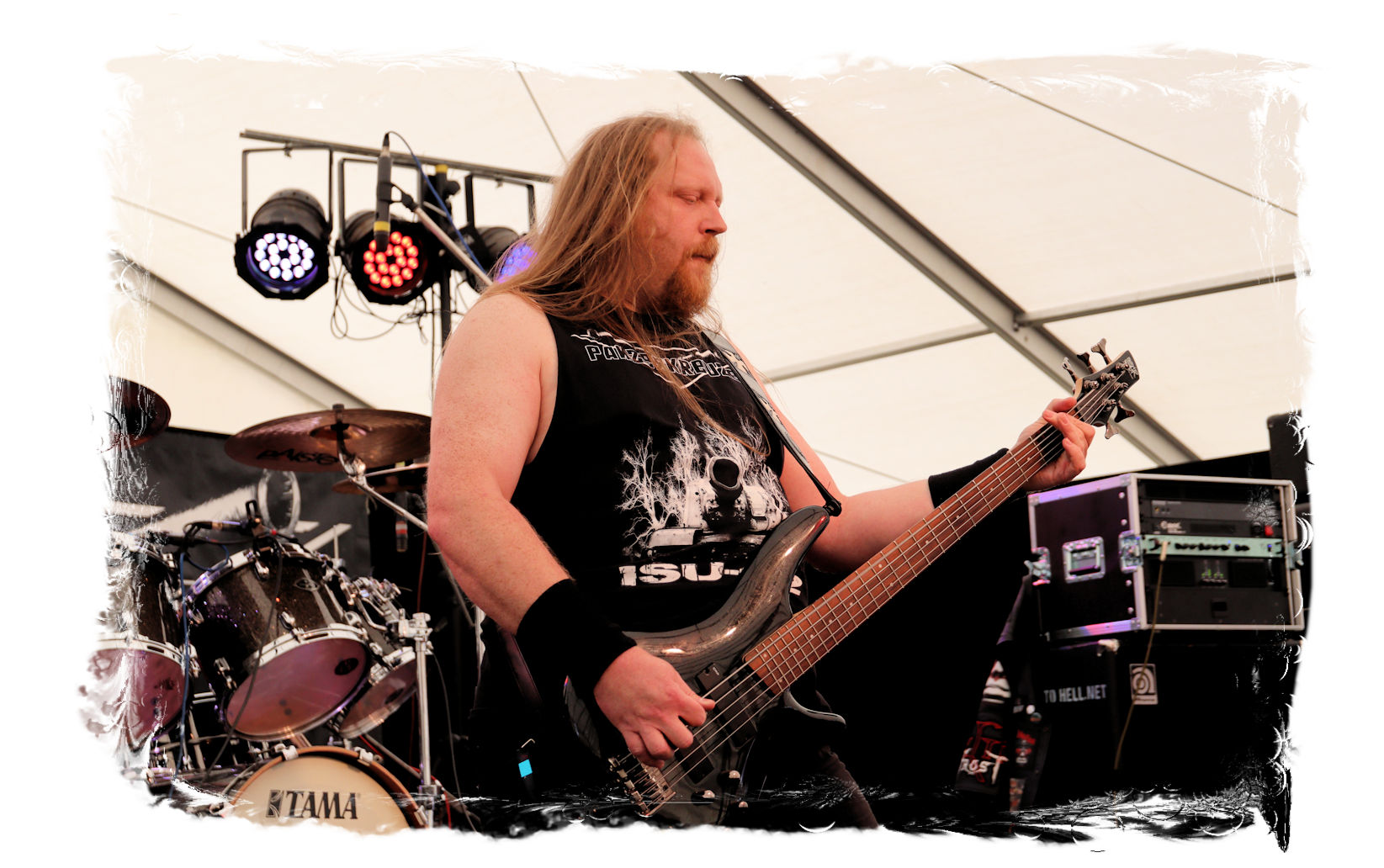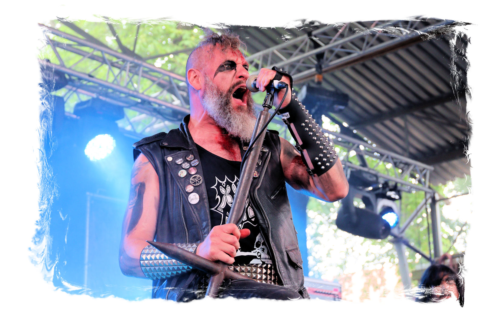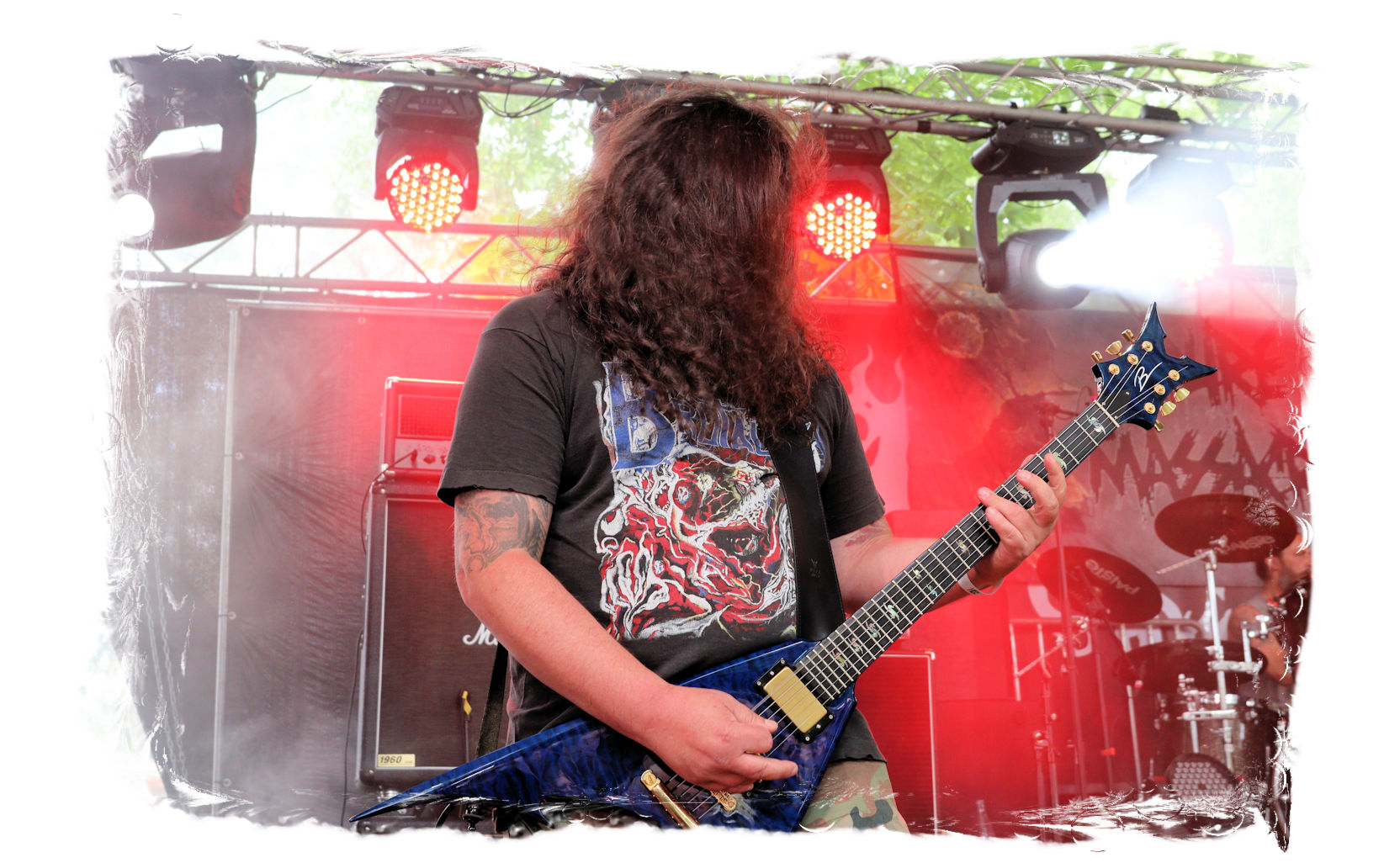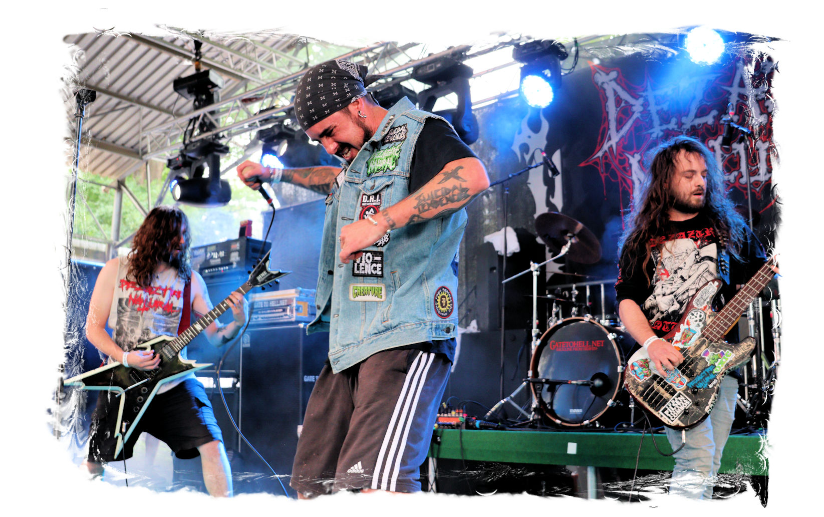 Wie schon bei Panzerkreuzer hatte ich mir von DEHUMAN REIGN im Zelt ebenfalls deutlich mehr versprochen. In Sachen Performance etwas zu steif und musikalisch auf Dauer etwas zu eintönig. Auf ganzer Linie überraschen dagegen die GDR-Urgesteine von M.A.D. Das Trio, das als Band schon zu DDR-Zeiten aktiv war, zündet ein amtliches und fettes Death Metal – Gewitter, das einem die Ohren freibläst und eine perfekte Vorlage für das erste Highlight des Abends ist.