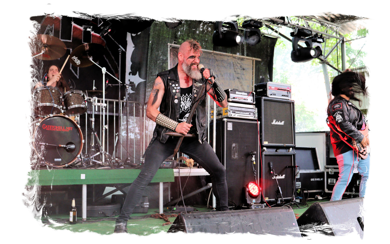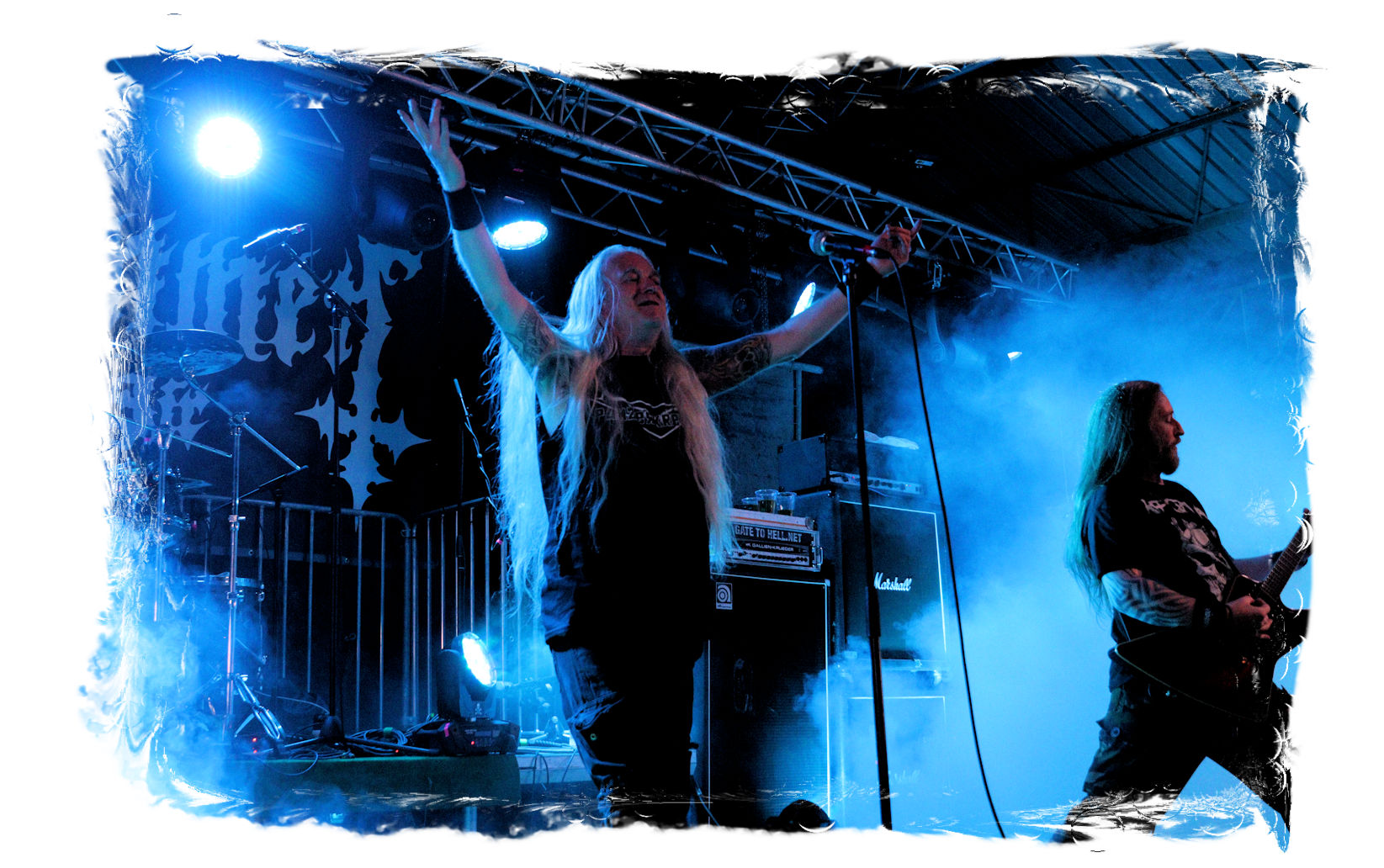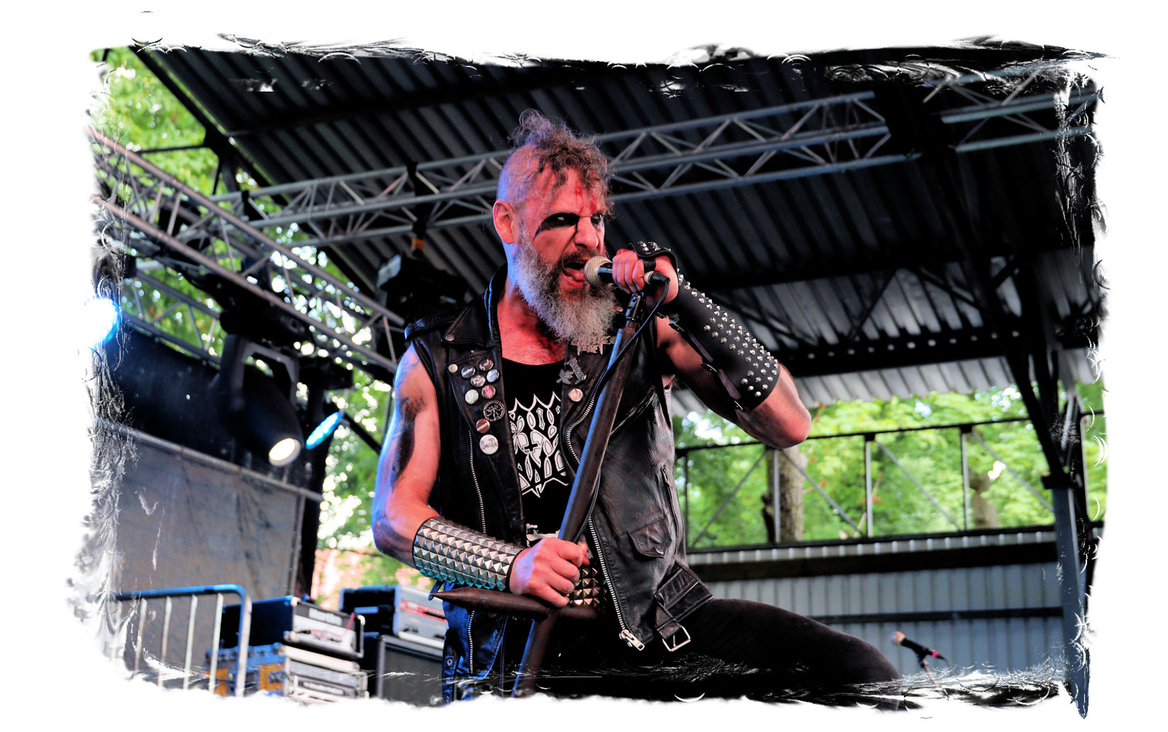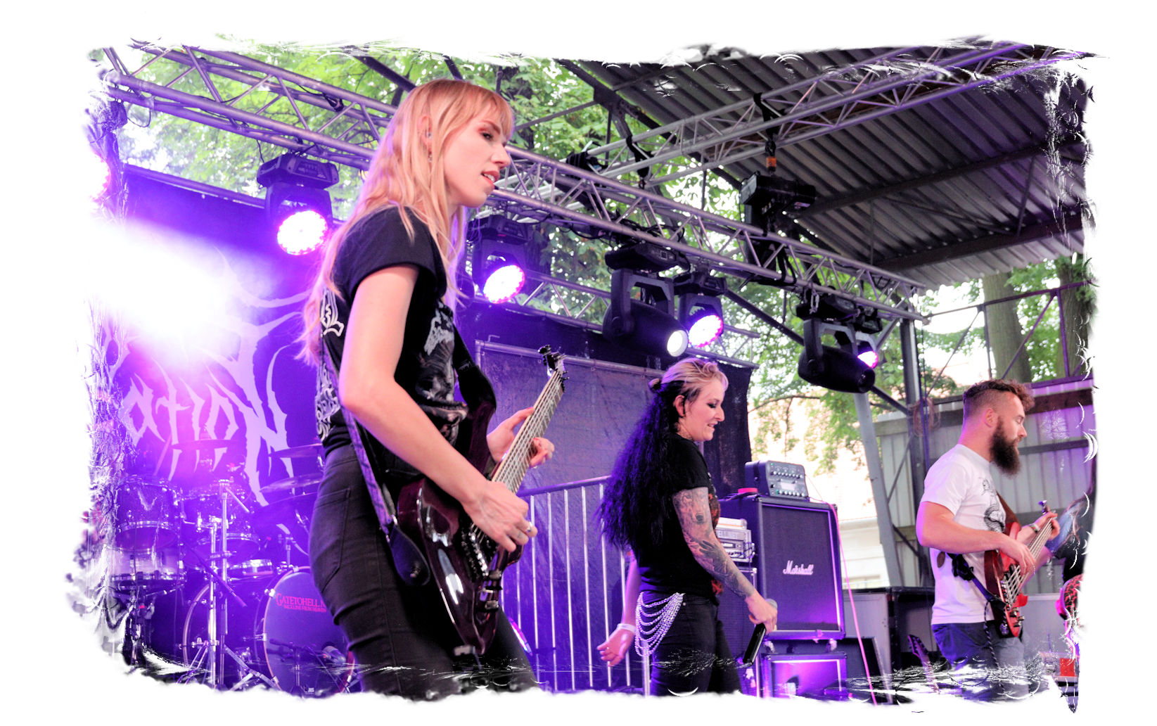 Wie schon bei Panzerkreuzer hatte ich mir von DEHUMAN REIGN im Zelt ebenfalls deutlich mehr versprochen. In Sachen Performance etwas zu steif und musikalisch auf Dauer etwas zu eintönig. Auf ganzer Linie überraschen dagegen die GDR-Urgesteine von M.A.D. Das Trio, das als Band schon zu DDR-Zeiten aktiv war, zündet ein amtliches und fettes Death Metal – Gewitter, das einem die Ohren freibläst und eine perfekte Vorlage für das erste Highlight des Abends ist.