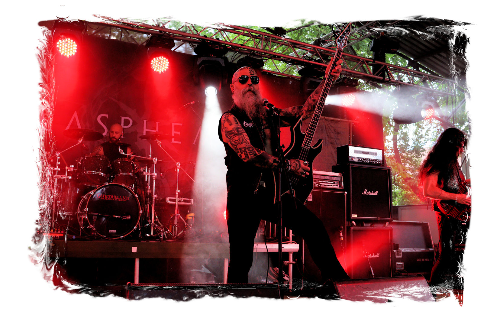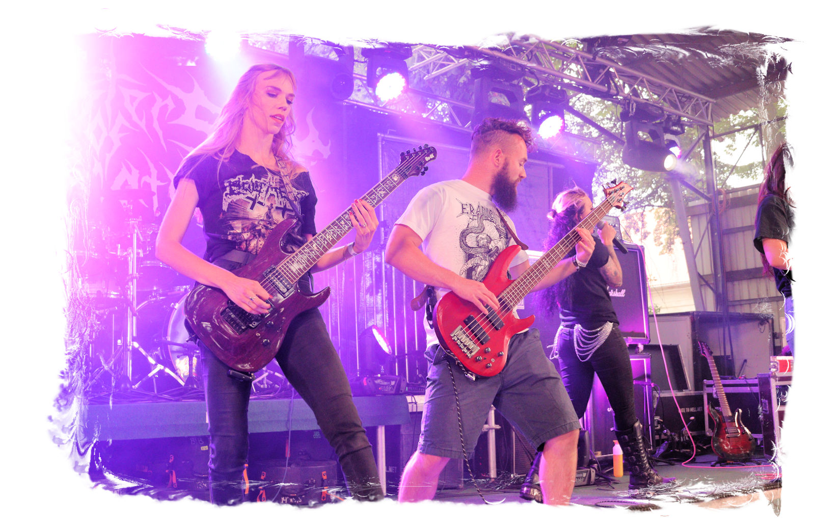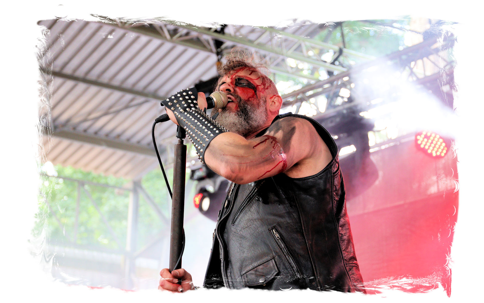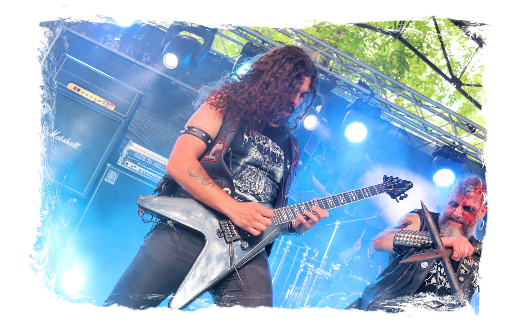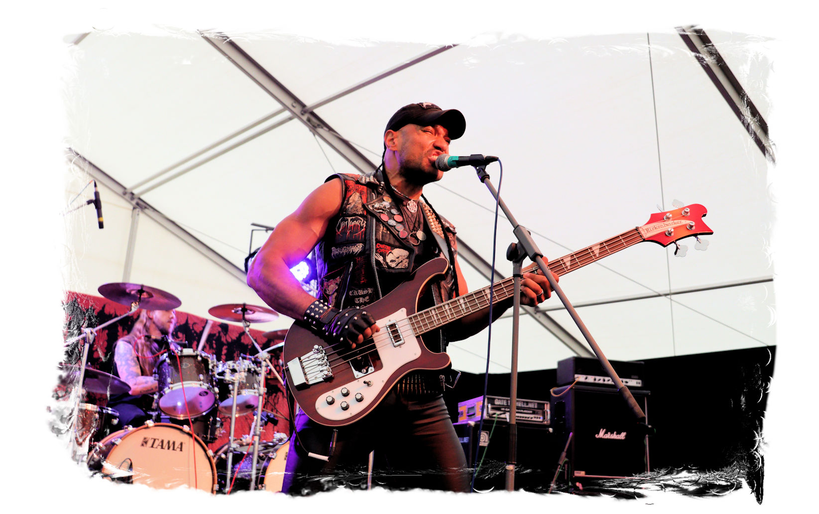 Wie schon bei Panzerkreuzer hatte ich mir von DEHUMAN REIGN im Zelt ebenfalls deutlich mehr versprochen. In Sachen Performance etwas zu steif und musikalisch auf Dauer etwas zu eintönig. Auf ganzer Linie überraschen dagegen die GDR-Urgesteine von M.A.D. Das Trio, das als Band schon zu DDR-Zeiten aktiv war, zündet ein amtliches und fettes Death Metal – Gewitter, das einem die Ohren freibläst und eine perfekte Vorlage für das erste Highlight des Abends ist.