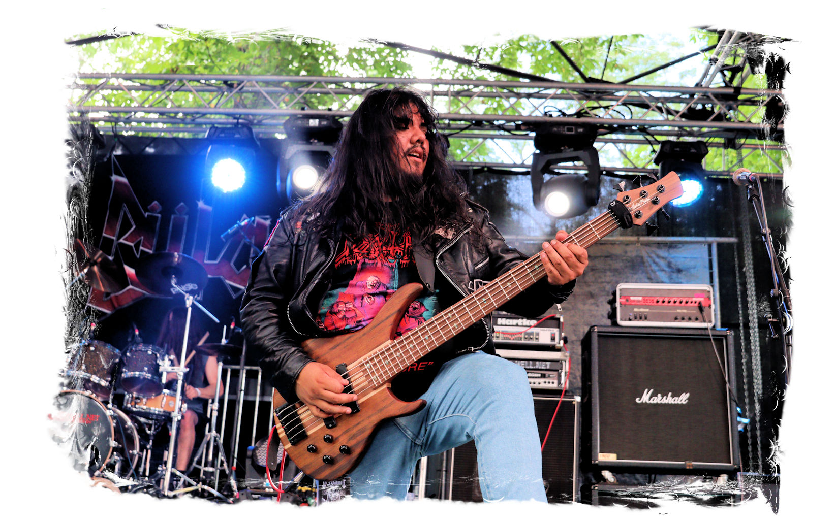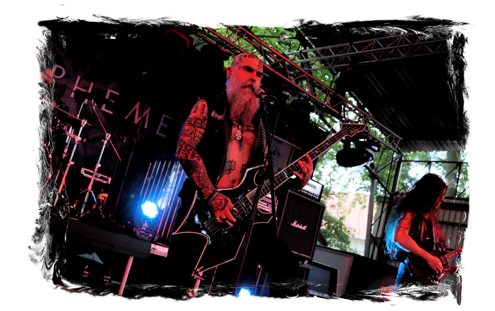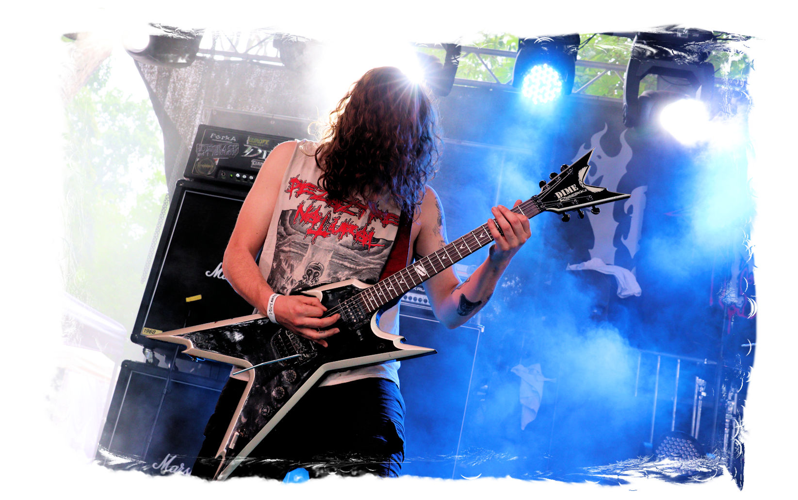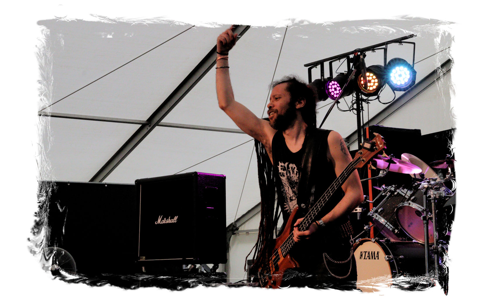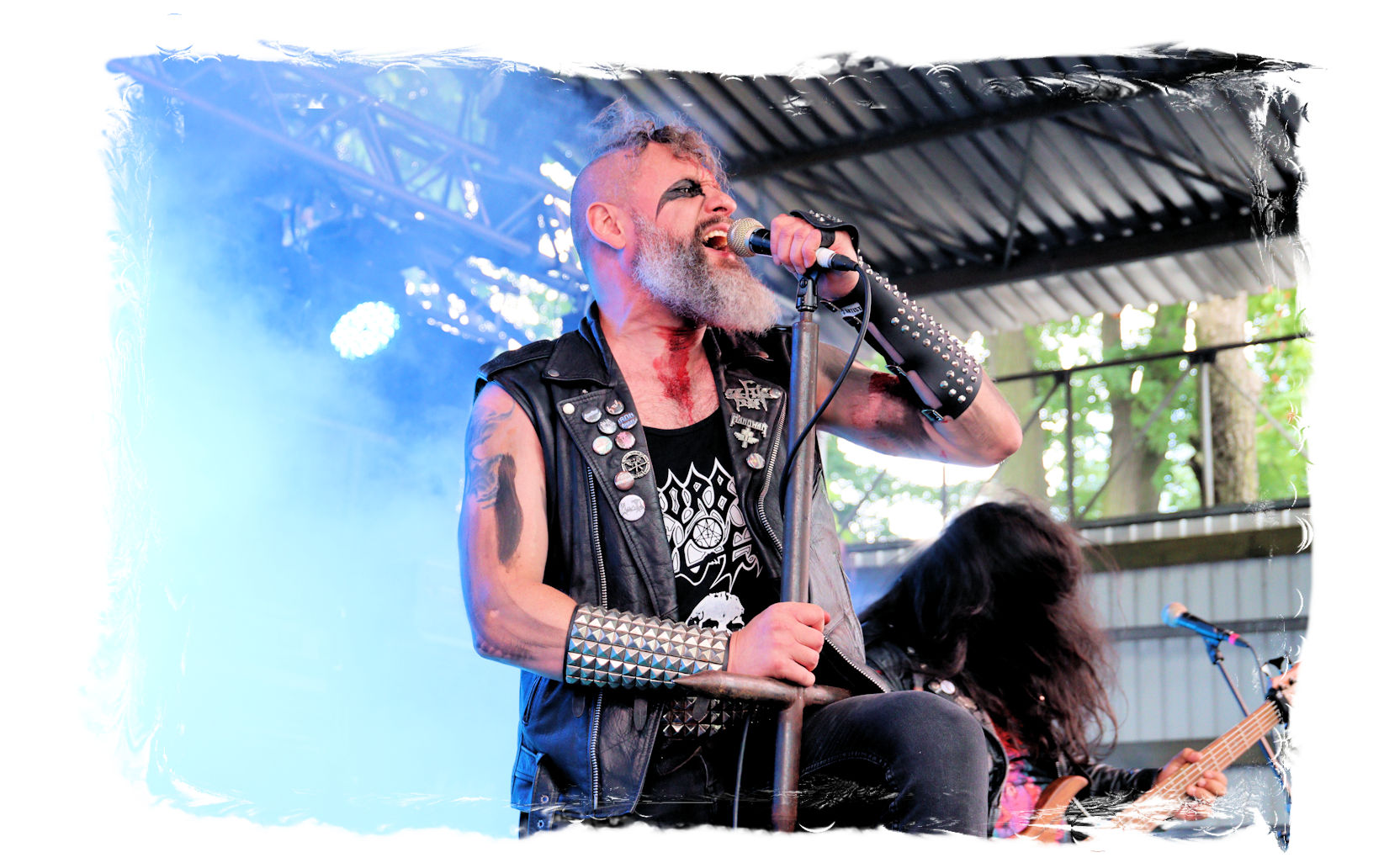 Wie schon bei Panzerkreuzer hatte ich mir von DEHUMAN REIGN im Zelt ebenfalls deutlich mehr versprochen. In Sachen Performance etwas zu steif und musikalisch auf Dauer etwas zu eintönig. Auf ganzer Linie überraschen dagegen die GDR-Urgesteine von M.A.D. Das Trio, das als Band schon zu DDR-Zeiten aktiv war, zündet ein amtliches und fettes Death Metal – Gewitter, das einem die Ohren freibläst und eine perfekte Vorlage für das erste Highlight des Abends ist.