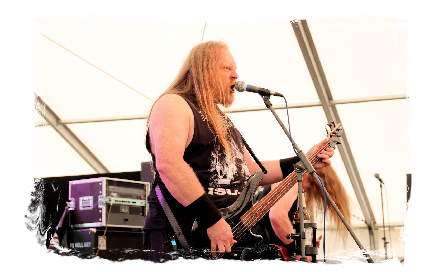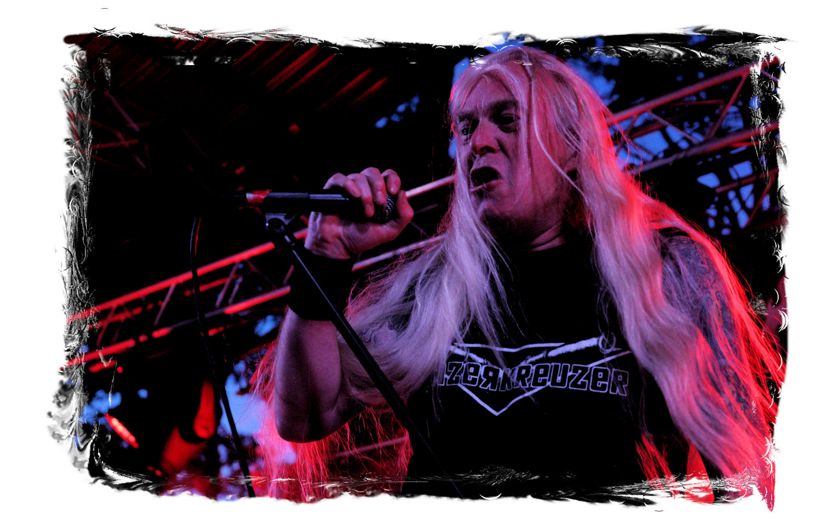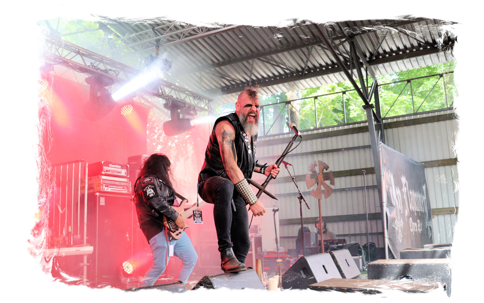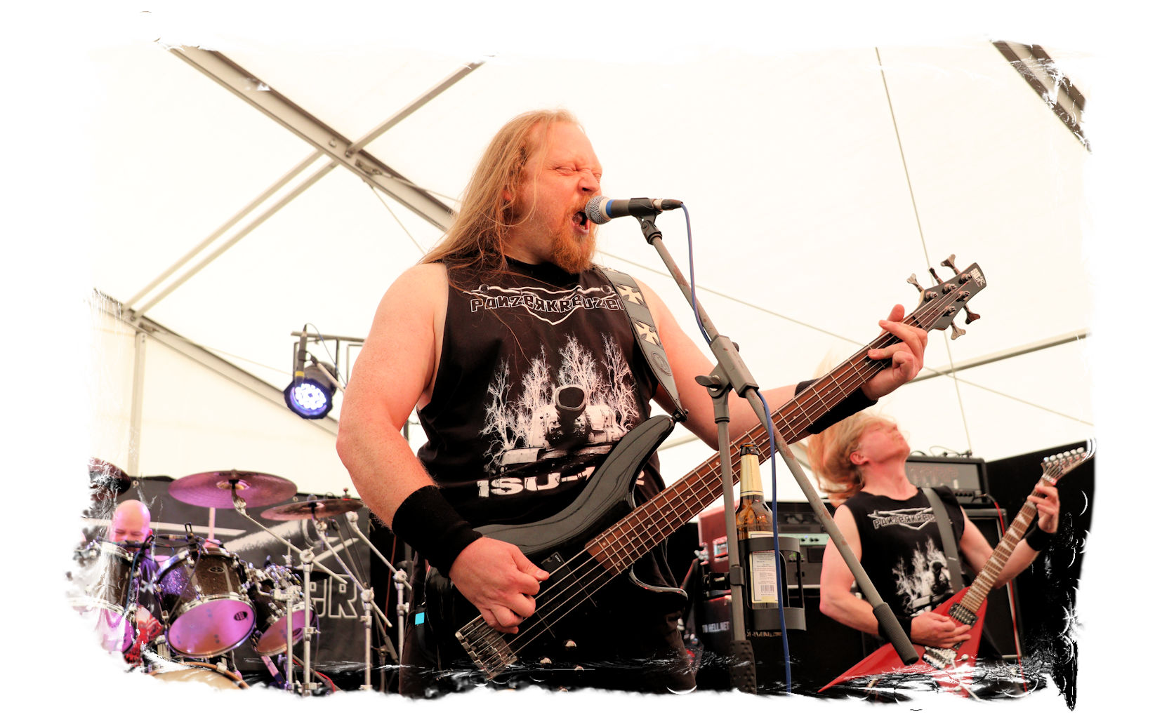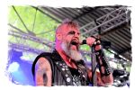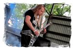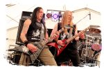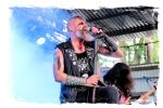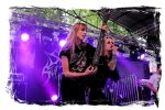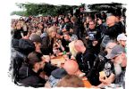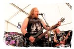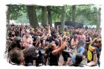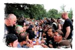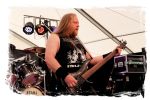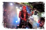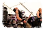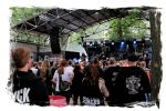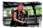 Die Nacht war wahlweise kurz oder lang, auf jeden Fall intensiv, nicht nur musikalisch, sondern auch menschlich, vor allem an der Bar. Es galt unterbewusst so einiges zu kompensieren, angefangen beim guten gezapften Ur-Krostitzer, Botze oder Froschkotze bishin zum gepflegten Cuba Libre. Ein Auftakt-Festival-Abend nach drei Jahren Abstinenz halt... Und der soll noch nachwirken. Diesen Nachwirkungen fallen zunächst ganz konkret der Opener WILT und BLIZZEN zum Opfer. PANZERKREUZER möchte ich mir im Zelt dann aber doch nicht entgehen lassen. Alte Schule, knochentrockener Todesstahl ohne Firlefanz, nicht selten in behäbigem Tempo. Das killt zwar, könnte jedoch mitunter mehr Abwechslung vertragen, weshalb es die Truppe nur bedingt schafft, den Zündfunken überspringen zu lassen. Da besitzen PURE MASSACRE auf der Hauptbühne weitaus mitreißendere Entertainment-Qualitäten. Als ich eintreffe hat sich Fronter Michael scheinbar schon mit seinem Publikum verbrüdert und die sehr agile Truppe aus Zerbst hat die Meute mit ihrem abwechslungsreichen Death Metal gut im Griff.